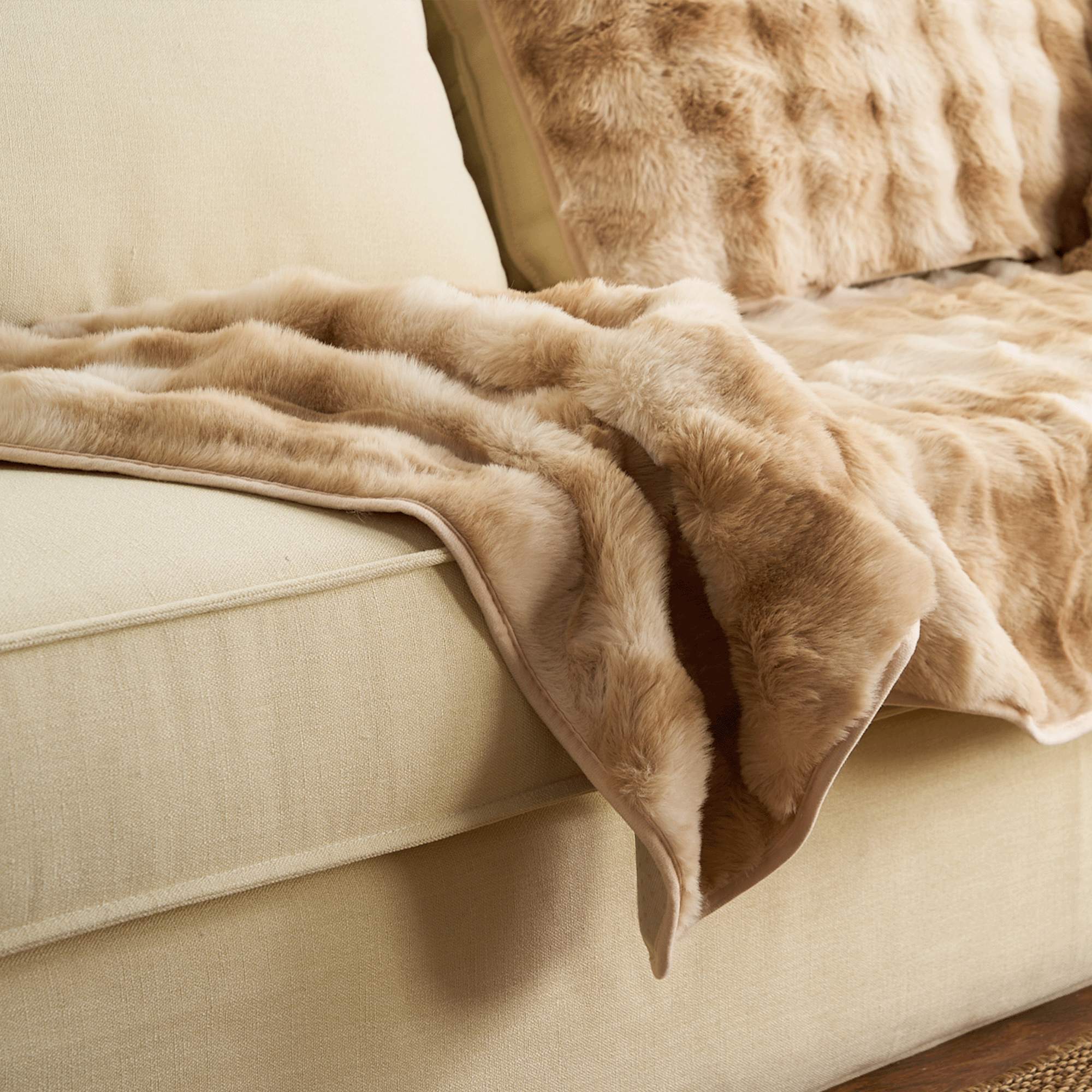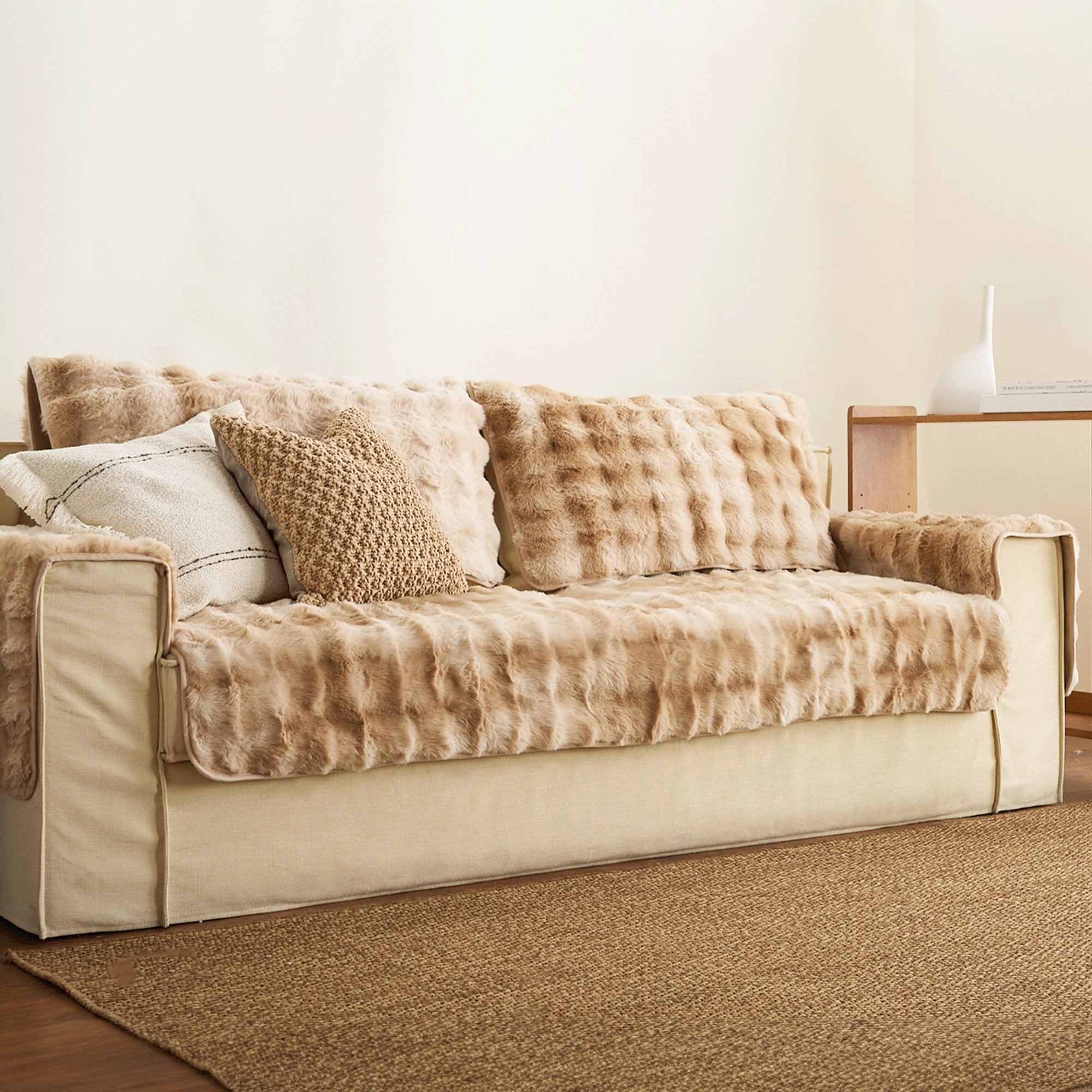 Kuscheliger, rutschfester Sofabezug aus Sherpa-Fleece