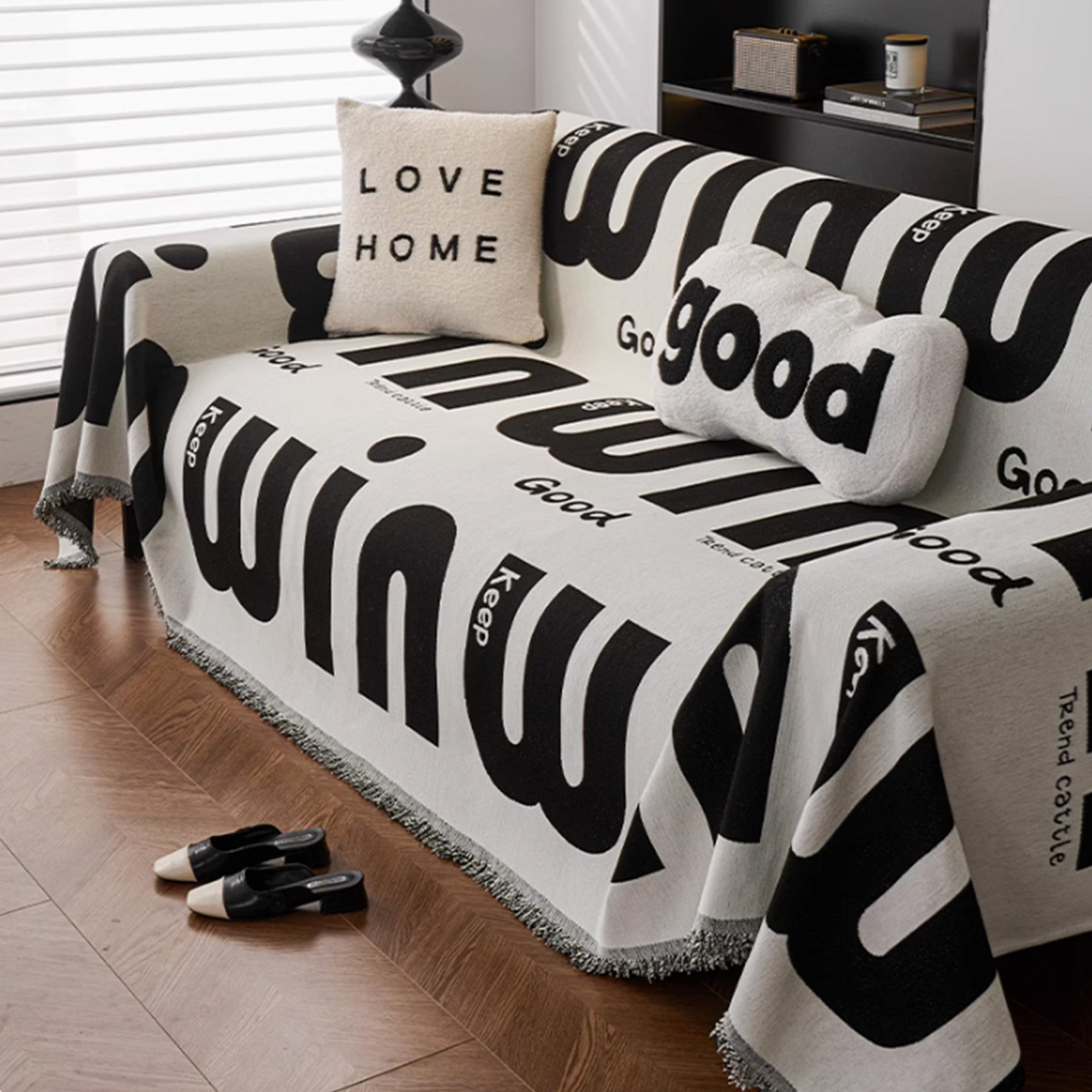 Werten Sie Ihr Wohnzimmer mit diesem Sofabezug mit auffälligem Typografie-Muster auf. Sein attraktives Design vereint modernes Flair mit praktischer Funktionalität und ist somit die ideale Wahl für stilvolle und tierfreundliche Haushalte.