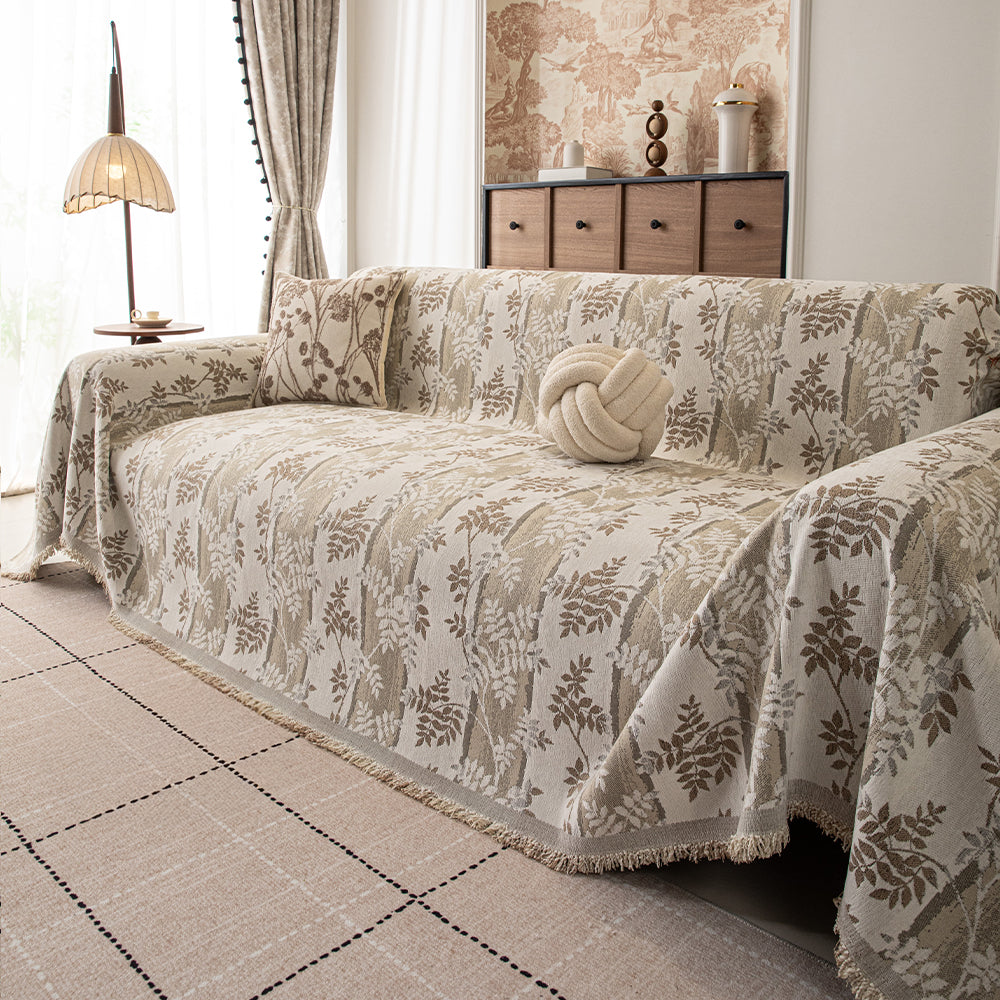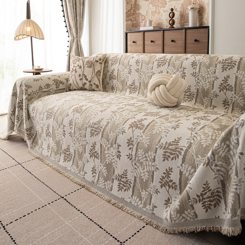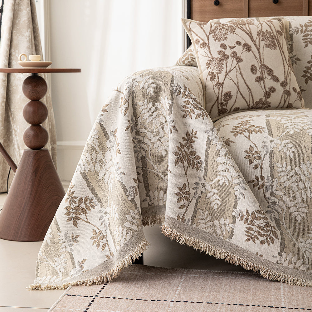Kratzfester Sofabezug aus Chenille mit botanischem Webmuster