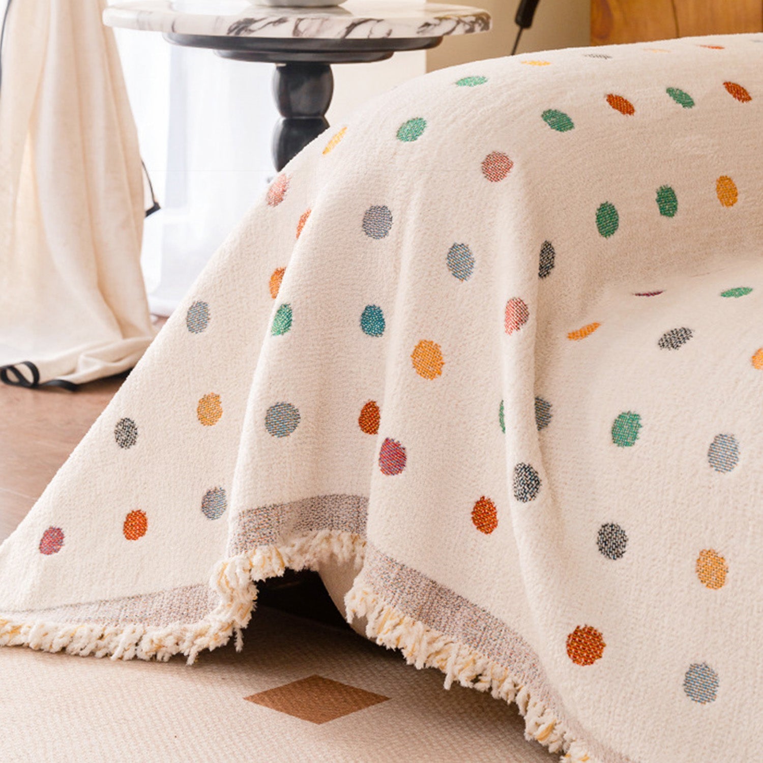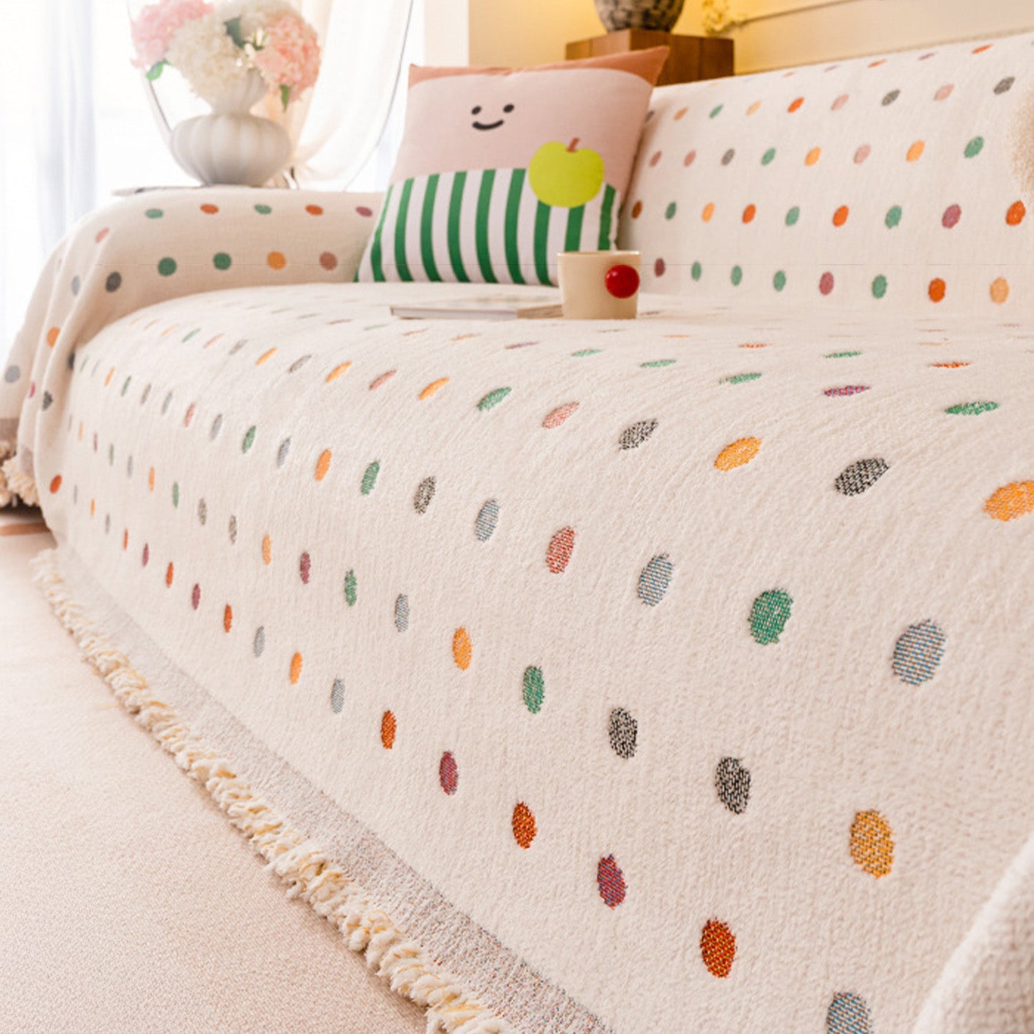 •Das fröhliche, mehrfarbige Punktmuster verleiht Ihrer Einrichtung Wärme und Persönlichkeit.