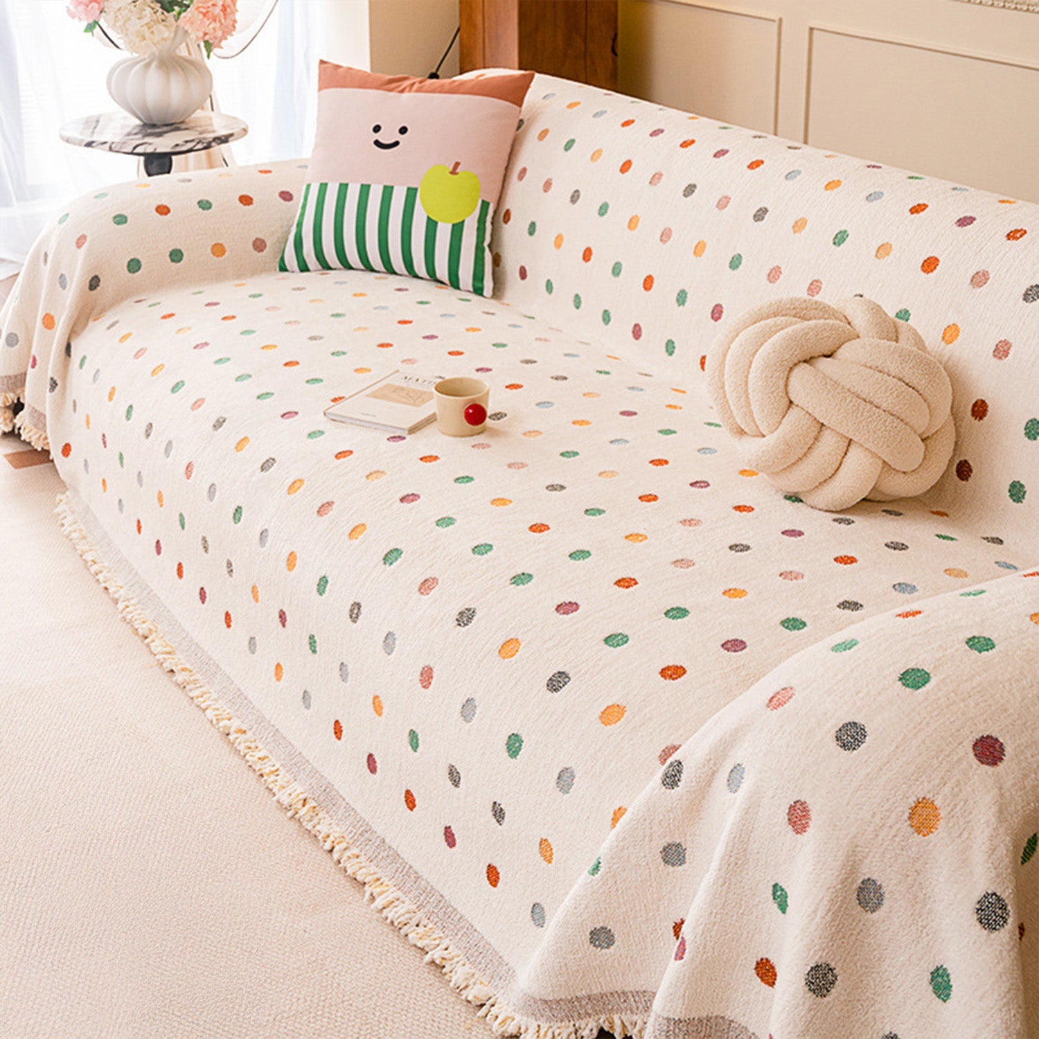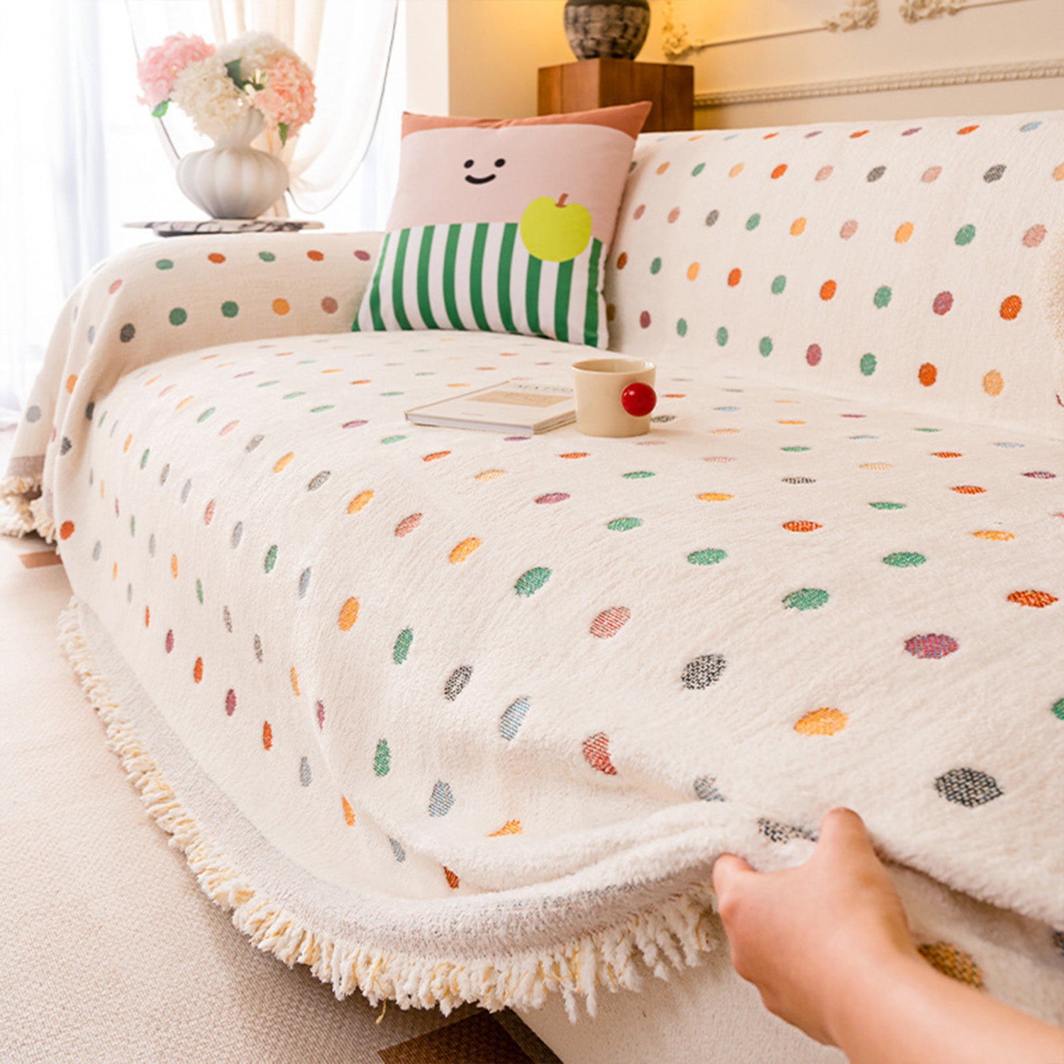 Verleihen Sie Ihrem Zuhause mit unserem kratzfesten Sofabezug aus Chenille mit Farbpunktmuster verspielten Charme und ganzjährigen Komfort. Das hübsche, mehrfarbige Punktmuster sorgt für eine lebendige und gemütliche Atmosphäre in Ihrem Wohnraum. Gefertigt aus hochwertigem, waschbarem Chenille-Gewebe, bietet der Bezug ein weiches, angenehmes Gefühl und schützt Ihre Haustiere zuverlässig vor Abnutzung, Kratzern und Flecken.