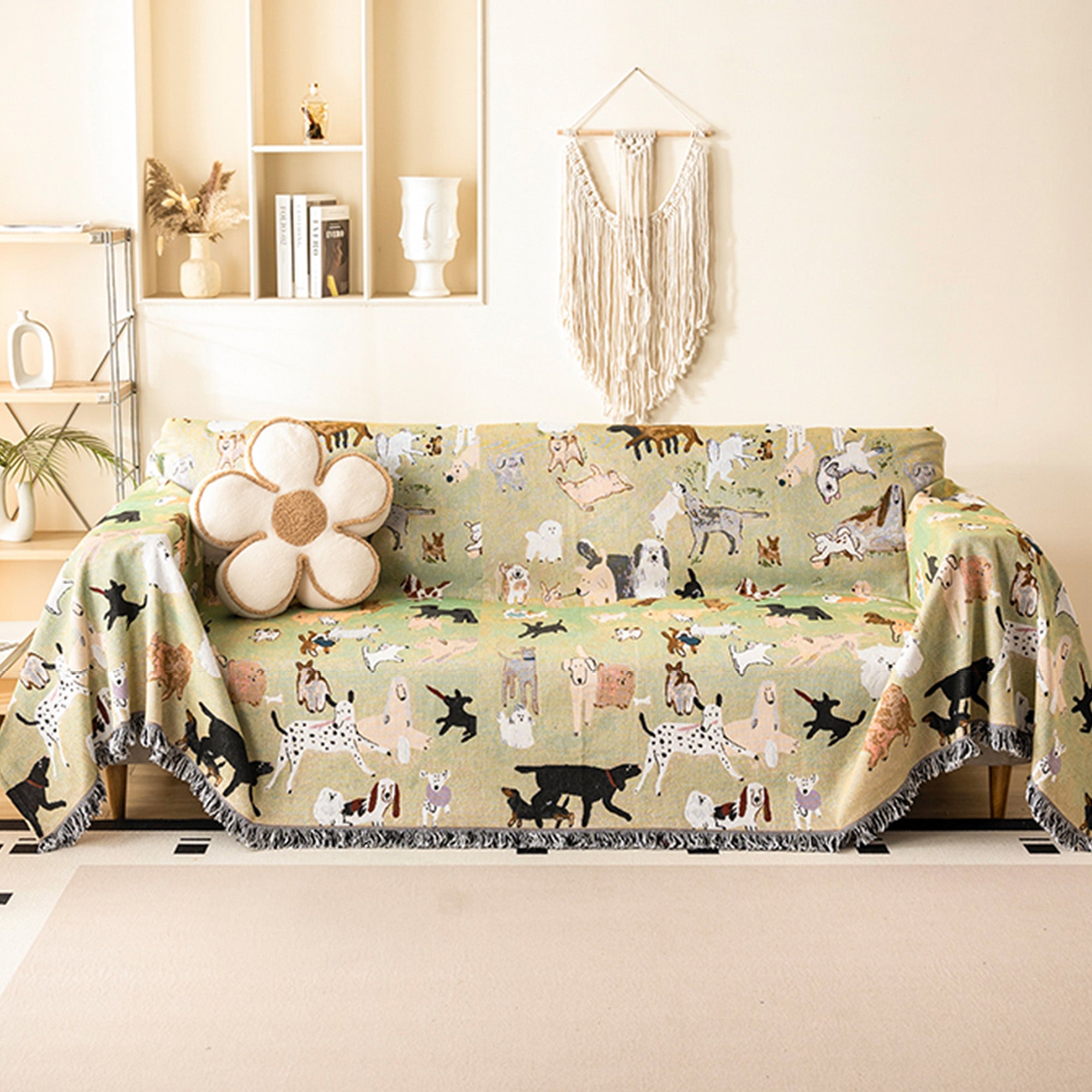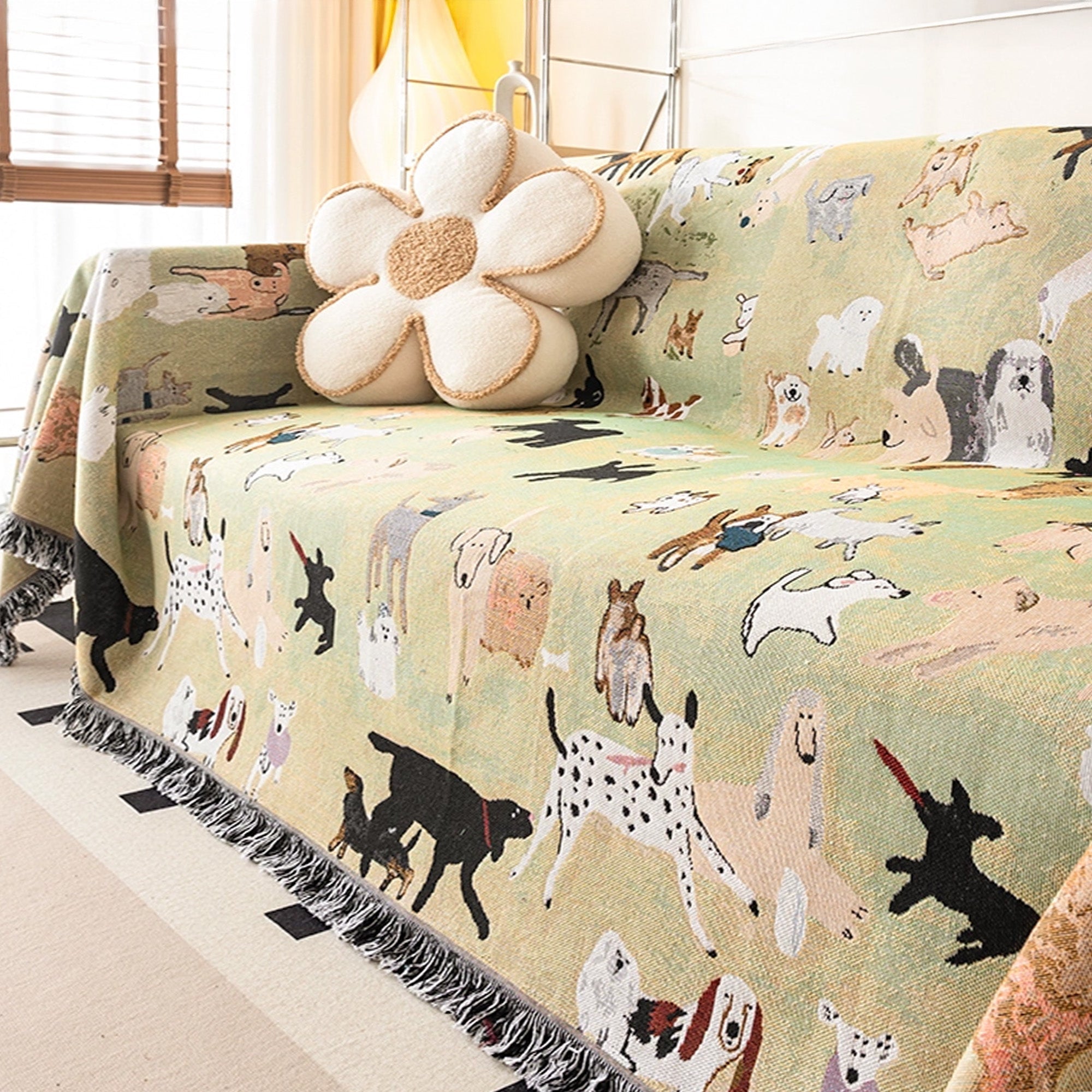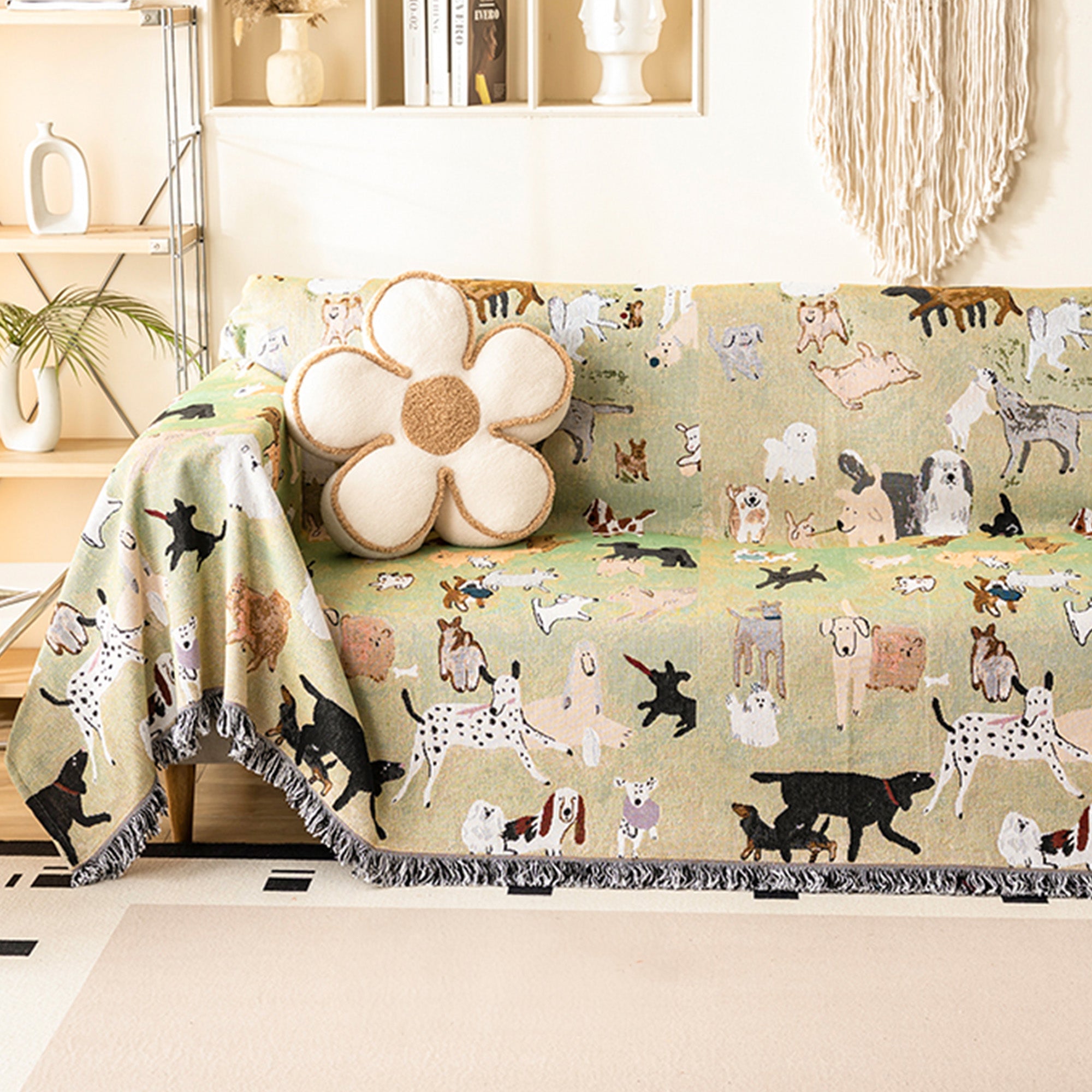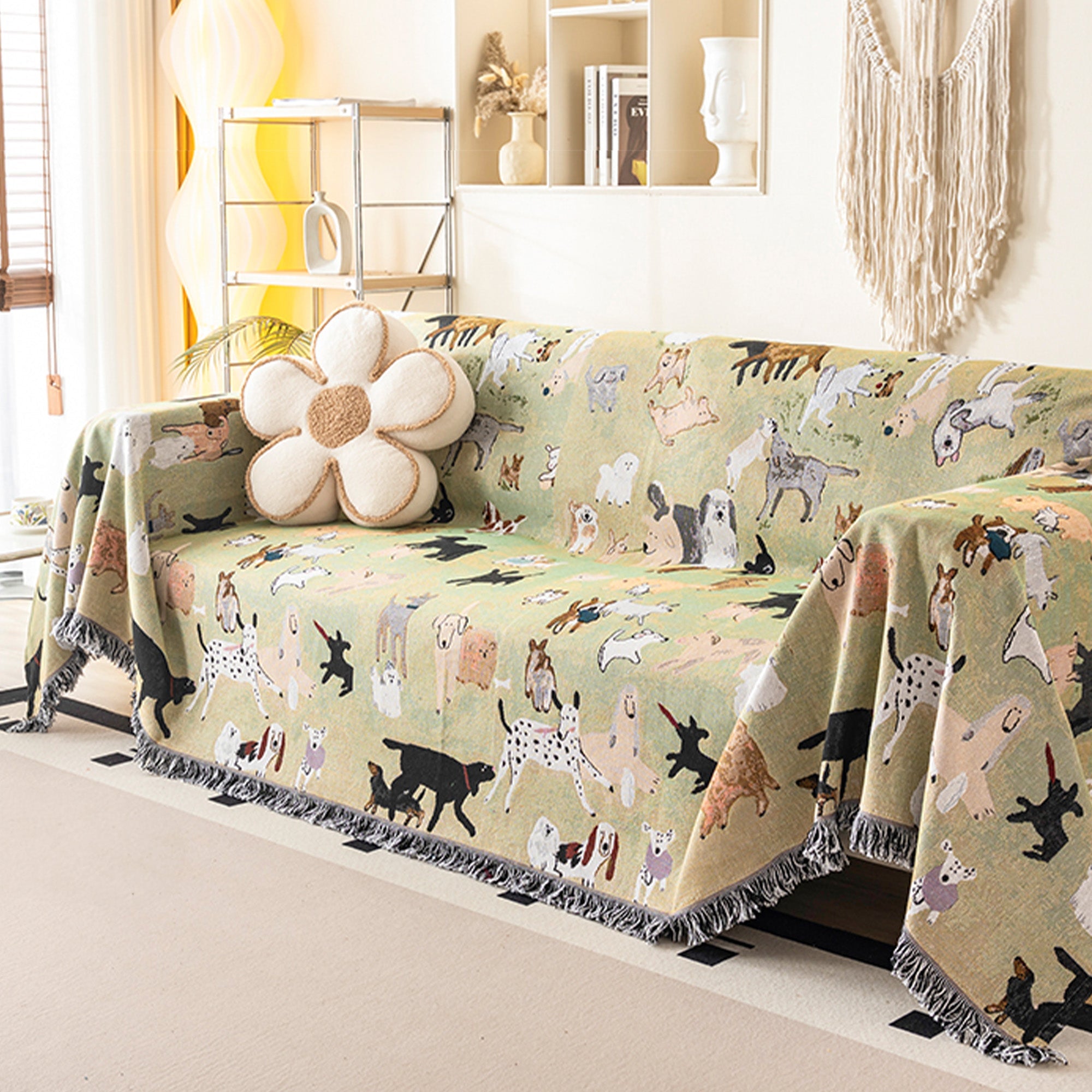 Verleihen Sie Ihrem Zuhause mit dem Sofabezug „Puppy Parade“ einen Hauch von Fröhlichkeit. Der Bezug aus atmungsaktivem Leinenimitat ist mit einem Allover-Muster aus charmanten, illustrierten Hunden verziert – jeder einzelne mit ganz eigenem Charakter. Der leichte, aber dennoch strukturierte Stoff fällt lässig und schützt Ihre Möbel auf verspielte und stilvolle Weise.