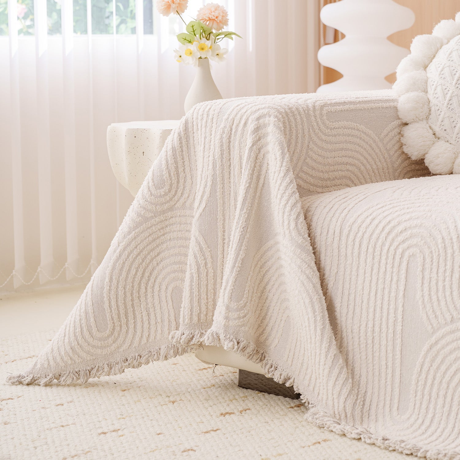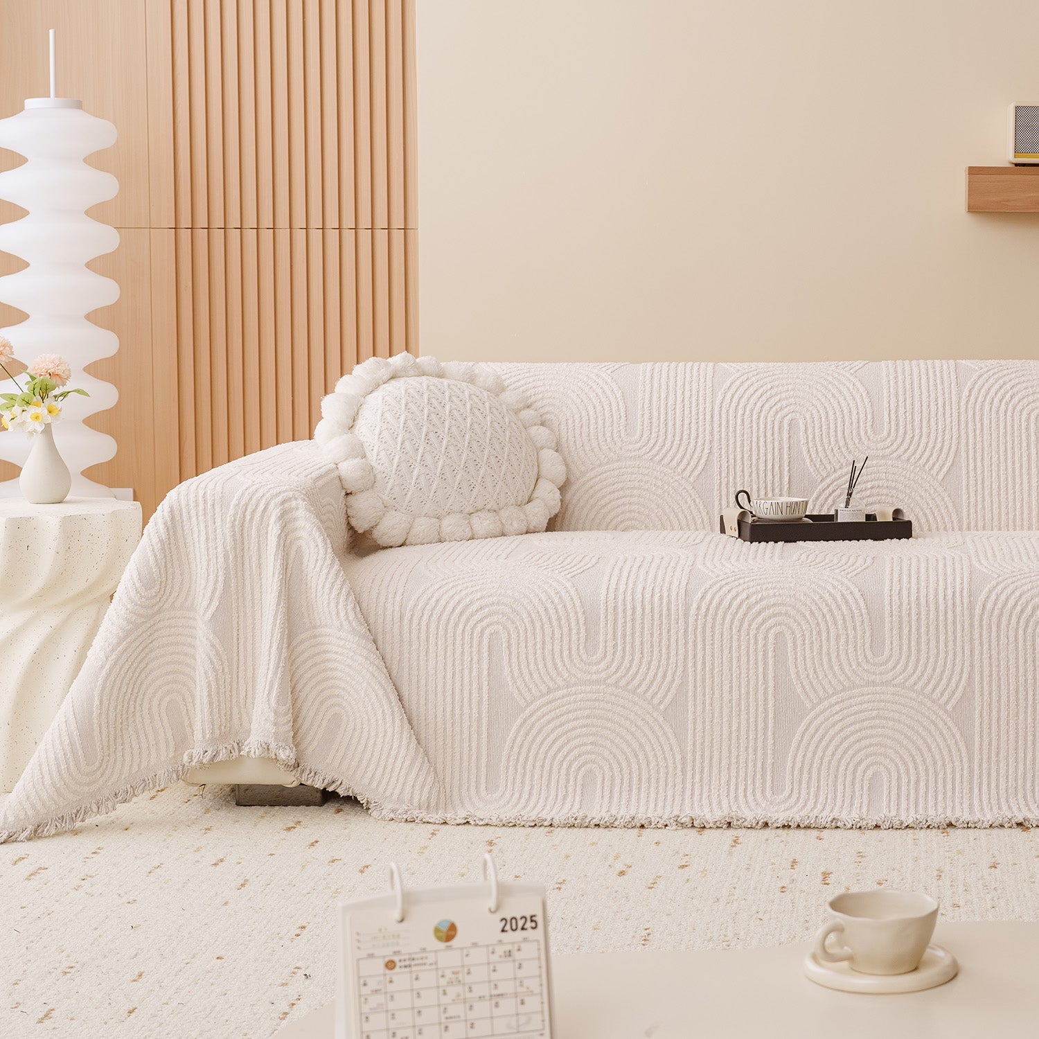 Verleihen Sie Ihrem Wohnraum mit unserem kratzfesten Sofabezug „Soft Arc Plush“ raffinierte Eleganz und behagliche Wärme. Die kunstvoll gesteppte Oberfläche mit Bogenmuster wertet Ihre Einrichtung mühelos auf und verleiht ihr eine moderne und zugleich beruhigende Ästhetik. Der Bezug ist ideal für Herbst und Winter und bietet die perfekte Balance aus Weichheit, Strapazierfähigkeit und Alltagstauglichkeit. Hergestellt aus hochwertigem, chenilleartigem Plüschstoff, fühlt er sich unglaublich weich an und ist gleichzeitig kratz-, flecken- und abriebfest – perfekt für Haushalte mit Haustieren oder Kindern. Die strukturierte Oberfläche sorgt für Tiefe und Raffinesse, während die Fransen einen Hauch von handwerklichem Charme verleihen. Der Bezug ist vollständig maschinenwaschbar und garantiert so langanhaltenden Komfort und mühelose Pflege.