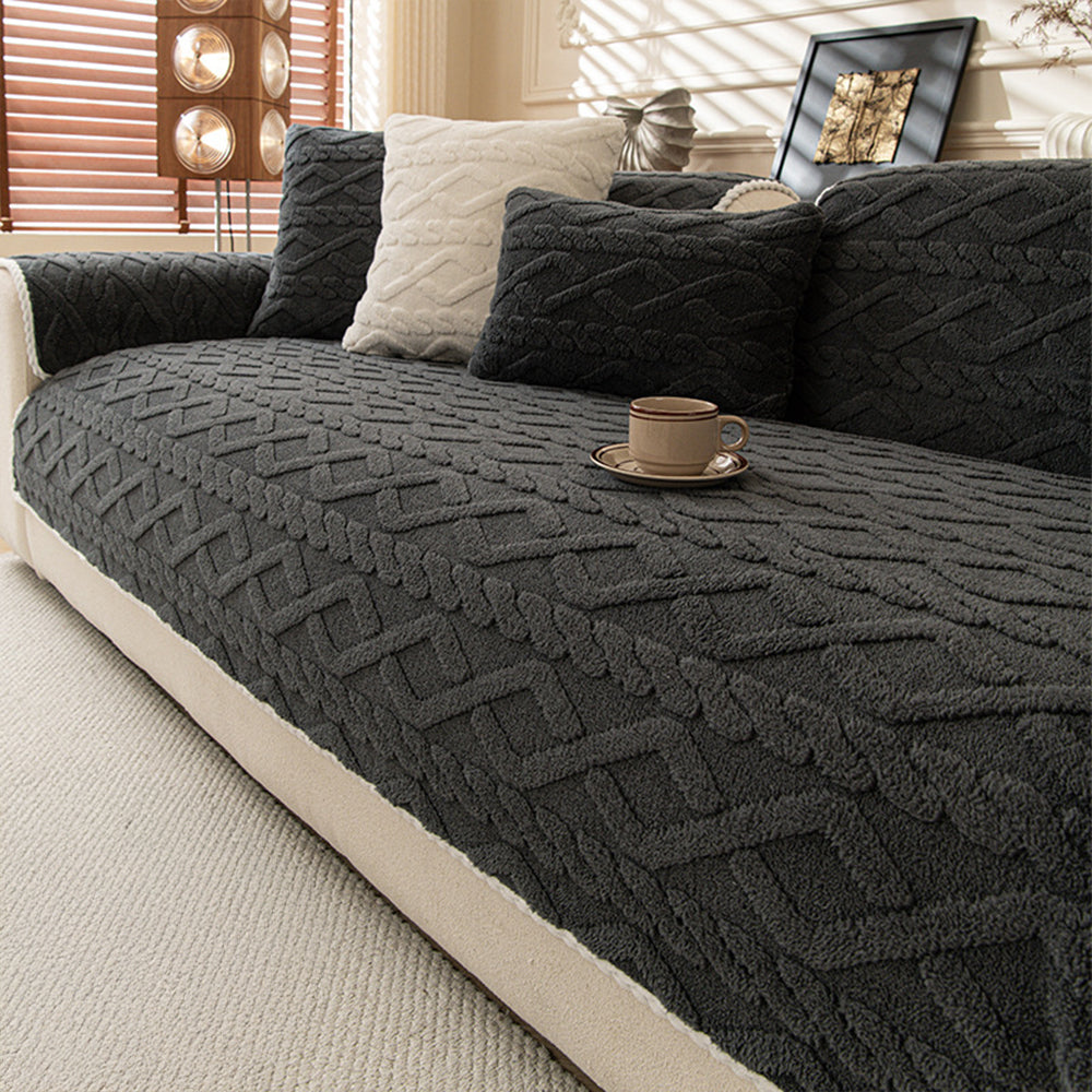 Verleihen Sie Ihrem Zuhause mit unserem rutschfesten Sofabezug „Vintage Weave“ aus Plüsch eine gemütliche Vintage-Eleganz. Das wunderschön strukturierte Design mit seinem von Retro inspirierten Webmuster verleiht Ihrem Raum Tiefe und Raffinesse. Gefertigt aus hochdichtem Kurzplüsch, bietet er luxuriöse Weichheit und Wärme – perfekt für gemütliche Herbst- und Wintertage. Dank der rutschfesten Unterseite bleibt er auch bei täglicher Nutzung fest an seinem Platz. Das dicke Plüschmaterial schützt vor Flecken, Tierhaaren und Kratzern und verleiht Ihrer Einrichtung zeitlosen Charme.