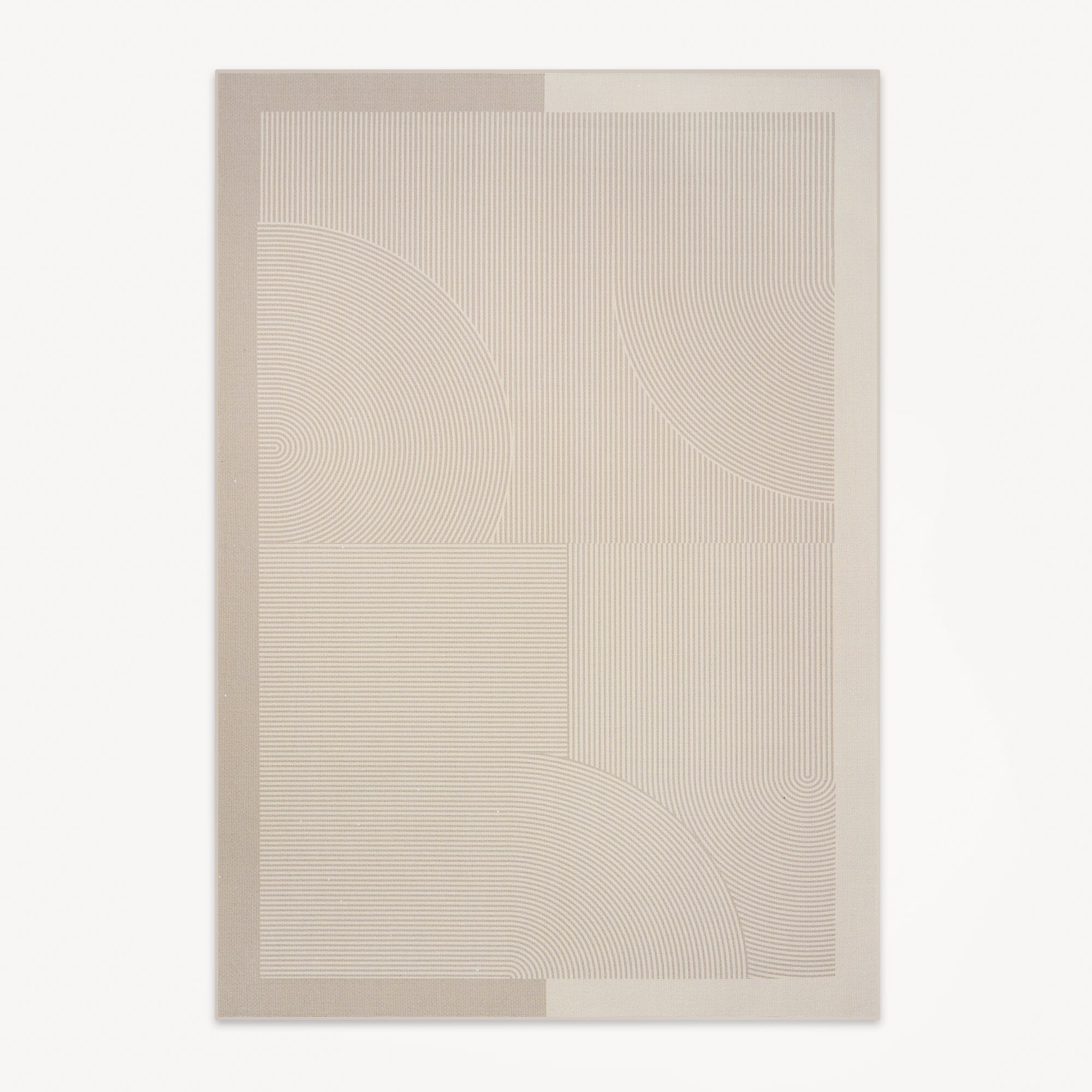 Verleihen Sie Ihrem Zuhause mit unserem Teppich „Sand Ripple Border“ eine Oase der Ruhe. Sanfte, wellenförmige Muster, die an Sanddünen erinnern, werden von einer breiten, neutralen Bordüre elegant umrahmt. Die beruhigenden Beigetöne und die dezente Textur schaffen eine friedliche Atmosphäre – perfekt für minimalistische und moderne Einrichtungen. Gefertigt aus strapazierfähigen, pflegeleichten Fasern, eignet sich dieser Teppich ideal für stark frequentierte Bereiche und bietet gleichzeitig eine angenehme, einladende Oberfläche.