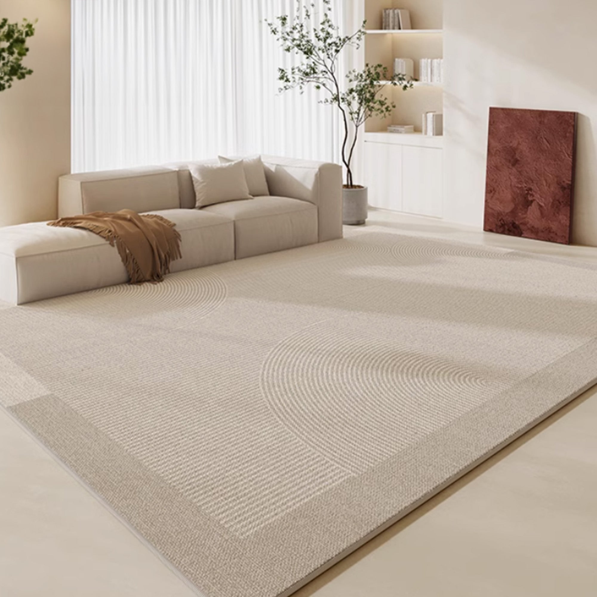 Leicht zu reinigender Teppich mit sandfarbenem Wellenrand, fleckenabweisend, haustierfreundlich, minimalistischer Wohnzimmerteppich