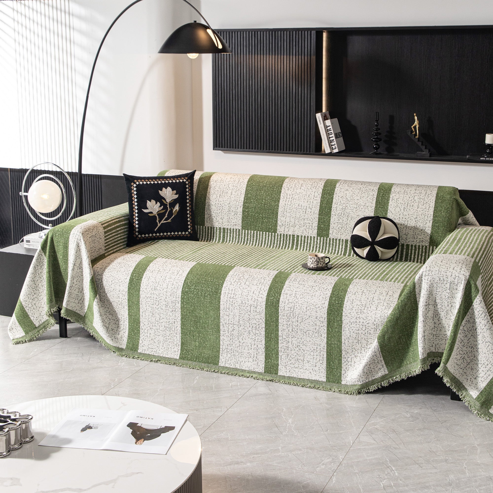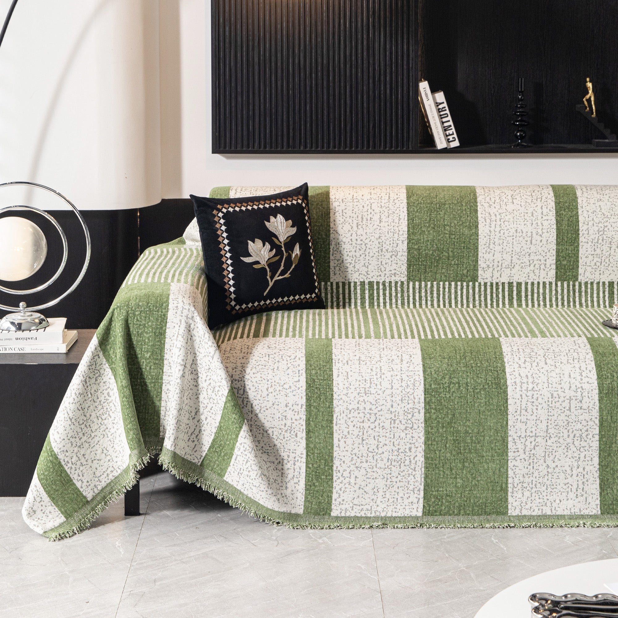Verleihen Sie Ihrem Wohnraum mit unserem modernen, kratzfesten Sofabezug aus Chenille mit Streifenmuster raffinierte Eleganz und modernen Charme. Das stilvolle Streifenmuster in natürlichen Grüntönen und sanften Neutraltönen sorgt für eine frische, harmonische Optik und wertet jede Einrichtung auf. Gefertigt aus hochwertigem, tierfreundlichem Chenille-Gewebe, bietet der Bezug ein weiches, angenehmes Gefühl und schützt Ihr Sofa zuverlässig vor Abnutzung, Flecken, Schmutz, Tierhaaren und Kratzern. Dank seines atmungsaktiven Designs ist er das ganze Jahr über komfortabel und stilvoll. Das markante, aber harmonische Streifenmuster verleiht dem Bezug Struktur und einen zeitgemäßen Look und passt perfekt zu minimalistischen, modernen oder naturnahen Interieurs. Der Bezug ist pflegeleicht, langlebig und eine praktische wie ästhetische Aufwertung für jedes Sofa.
