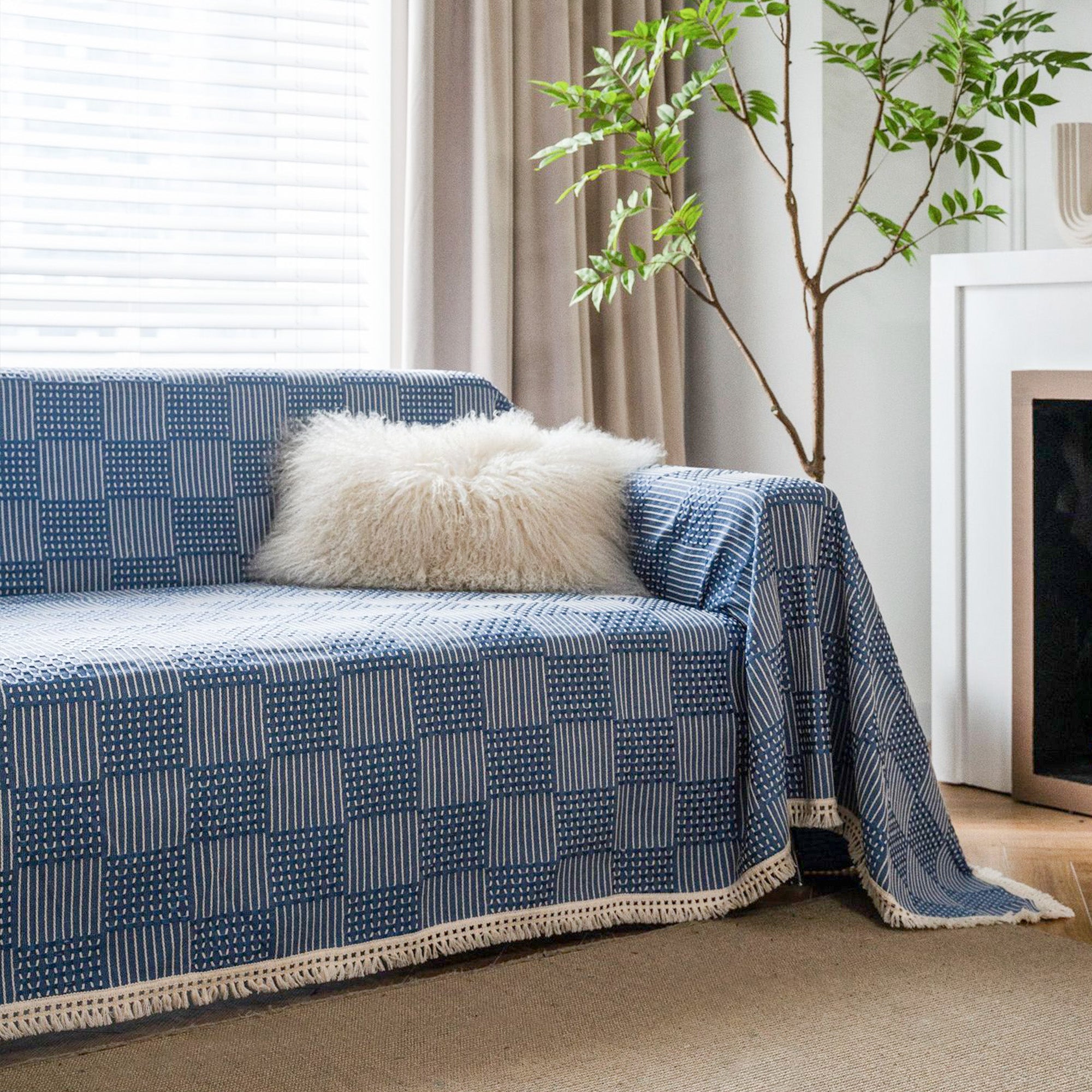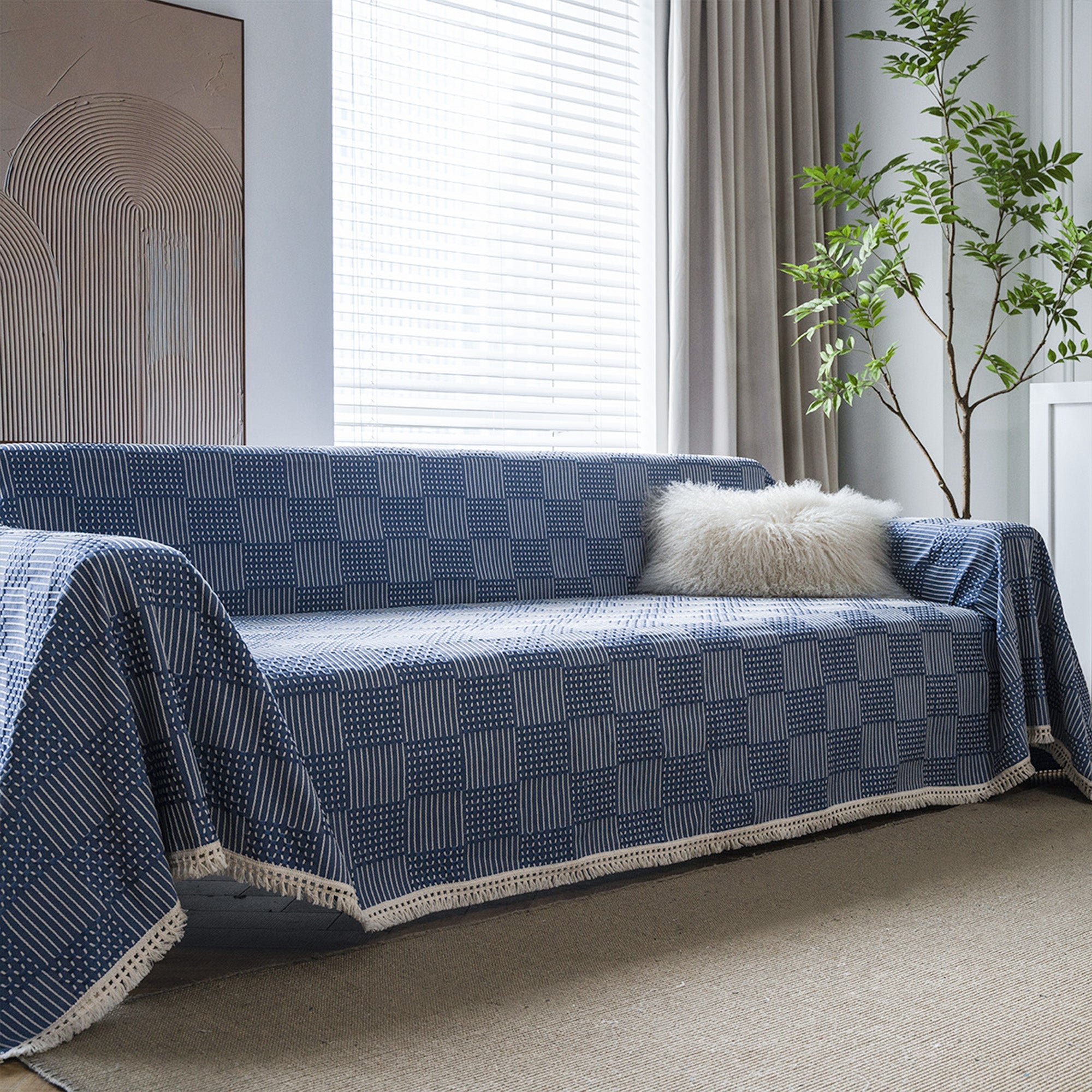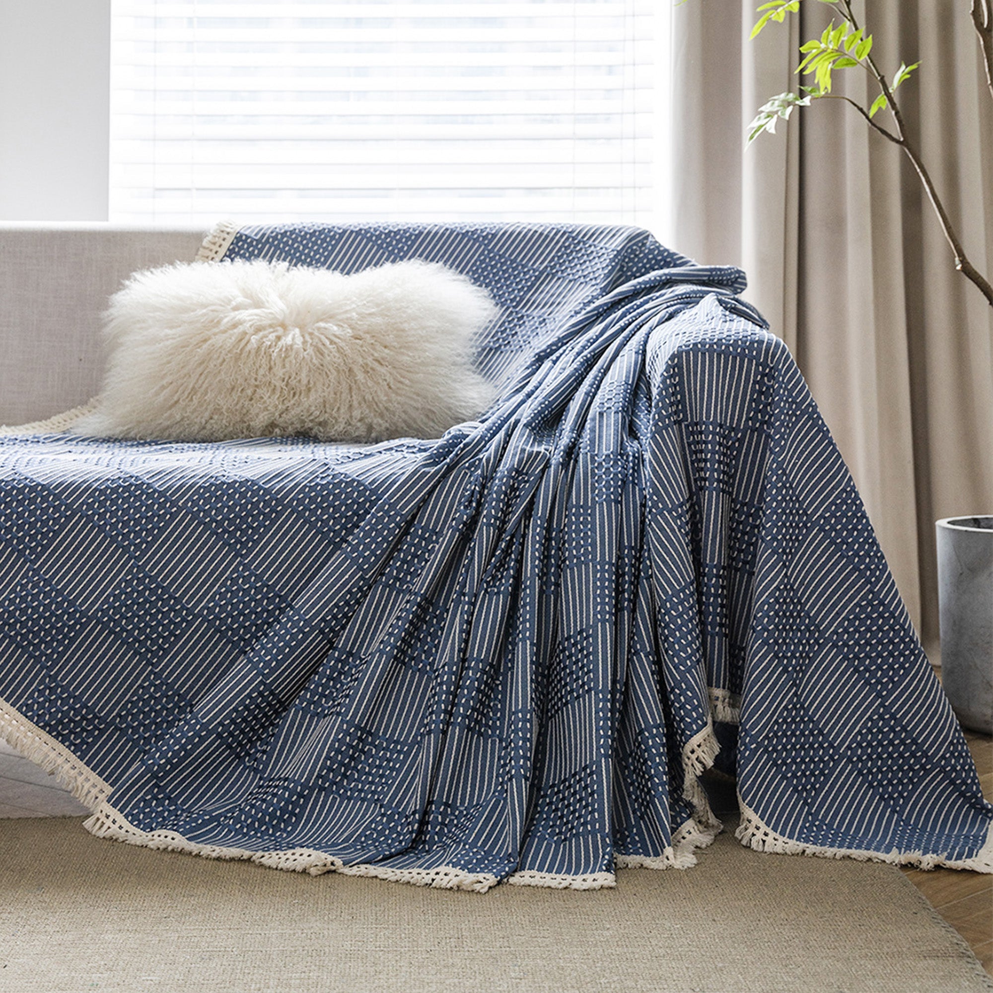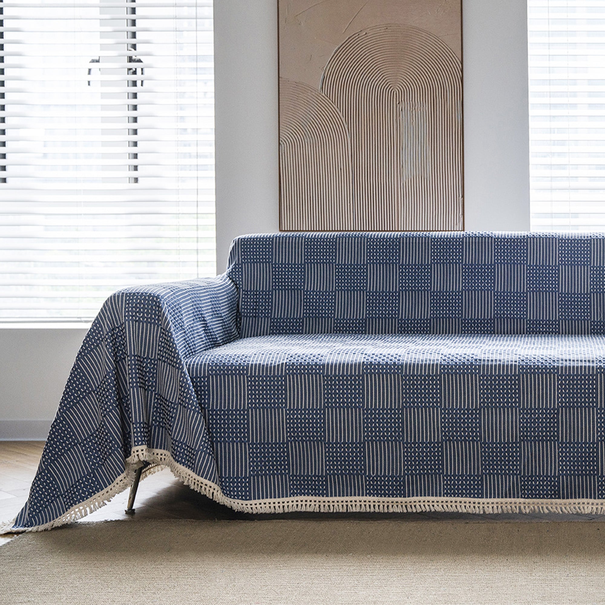 Sofabezug mit strukturiertem Indigo-Patchworkmuster