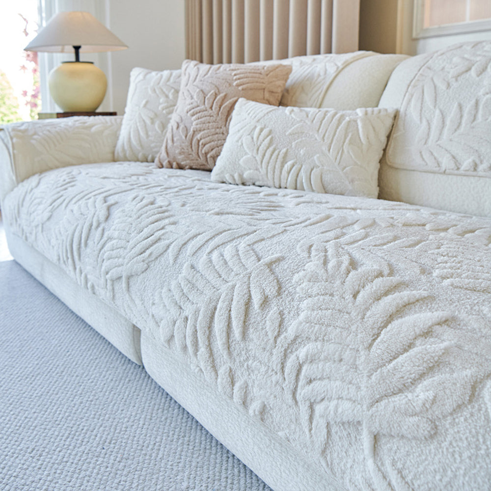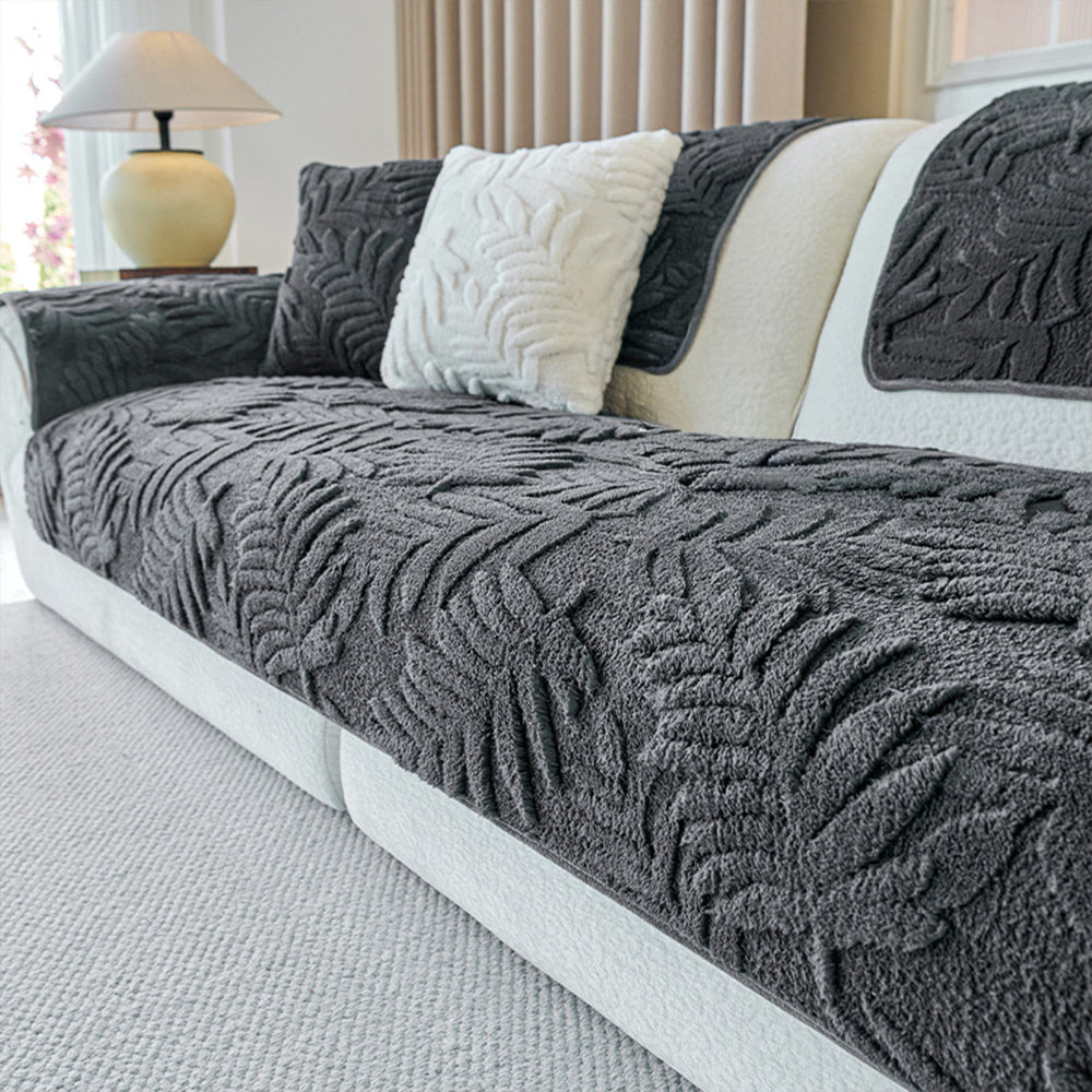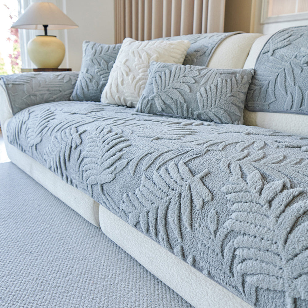 Plüschiger, rutschfester Sofabezug aus Chenille mit Blattmuster