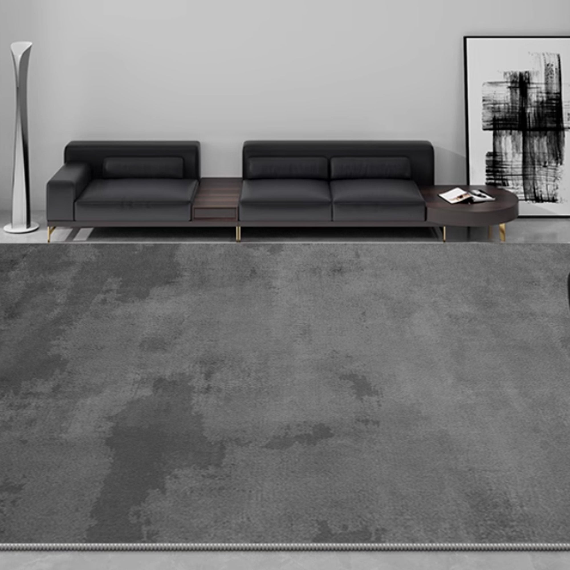 Pflegeleichter, anthrazitfarbener, abgenutzter, fleckenabweisender und haustierfreundlicher minimalistischer Wohnzimmerteppich