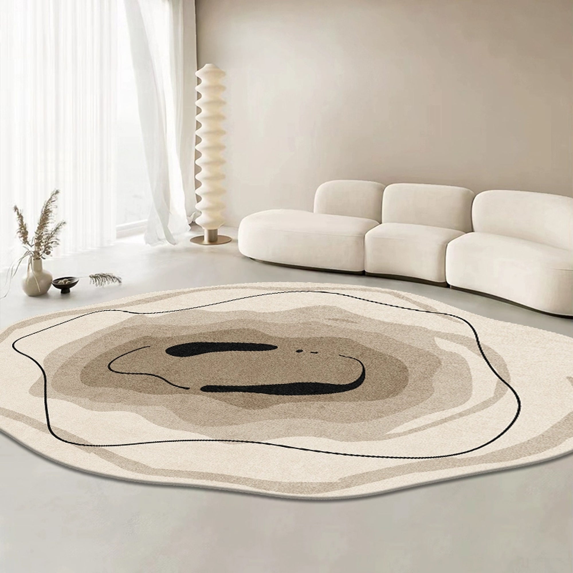 Verleihen Sie Ihrem Zuhause mit dem abstrakten Teppich in Erdtönen einen Hauch moderner Kunst! Mit seiner organischen Form und dem vielschichtigen, an die Topografie der Natur erinnernden Design ist dieser Teppich gleichermaßen stilvoll und beruhigend. Sanfte Erdtöne in Beige, Braun und Creme schaffen eine friedvolle, erdende Atmosphäre in jedem Raum. Ob als gemütlicher Blickfang im Wohnzimmer oder als besonderes Highlight im Schlafzimmer – dieser Teppich vereint Schönheit und Komfort.