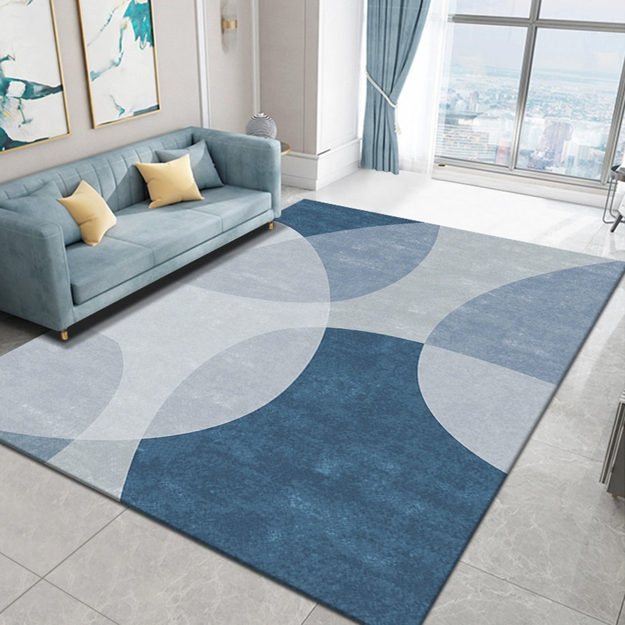 Leicht zu reinigender, moderner blauer Teppich mit überlappender Struktur, fleckenabweisend, haustierfreundlich, ideal für den Wohnzimmerbereich