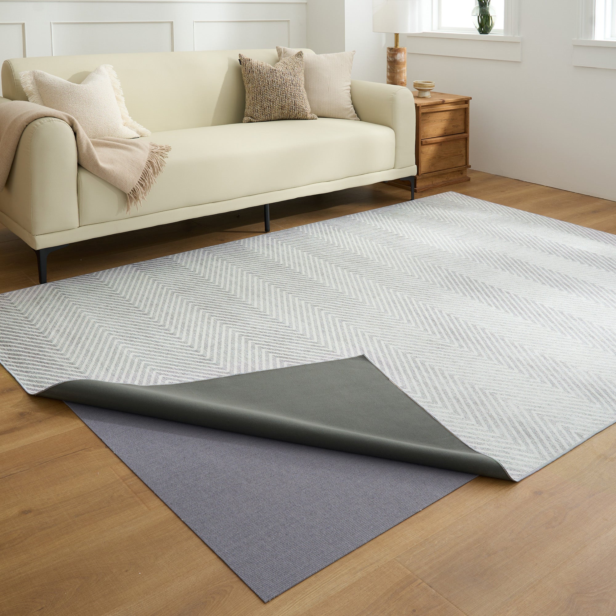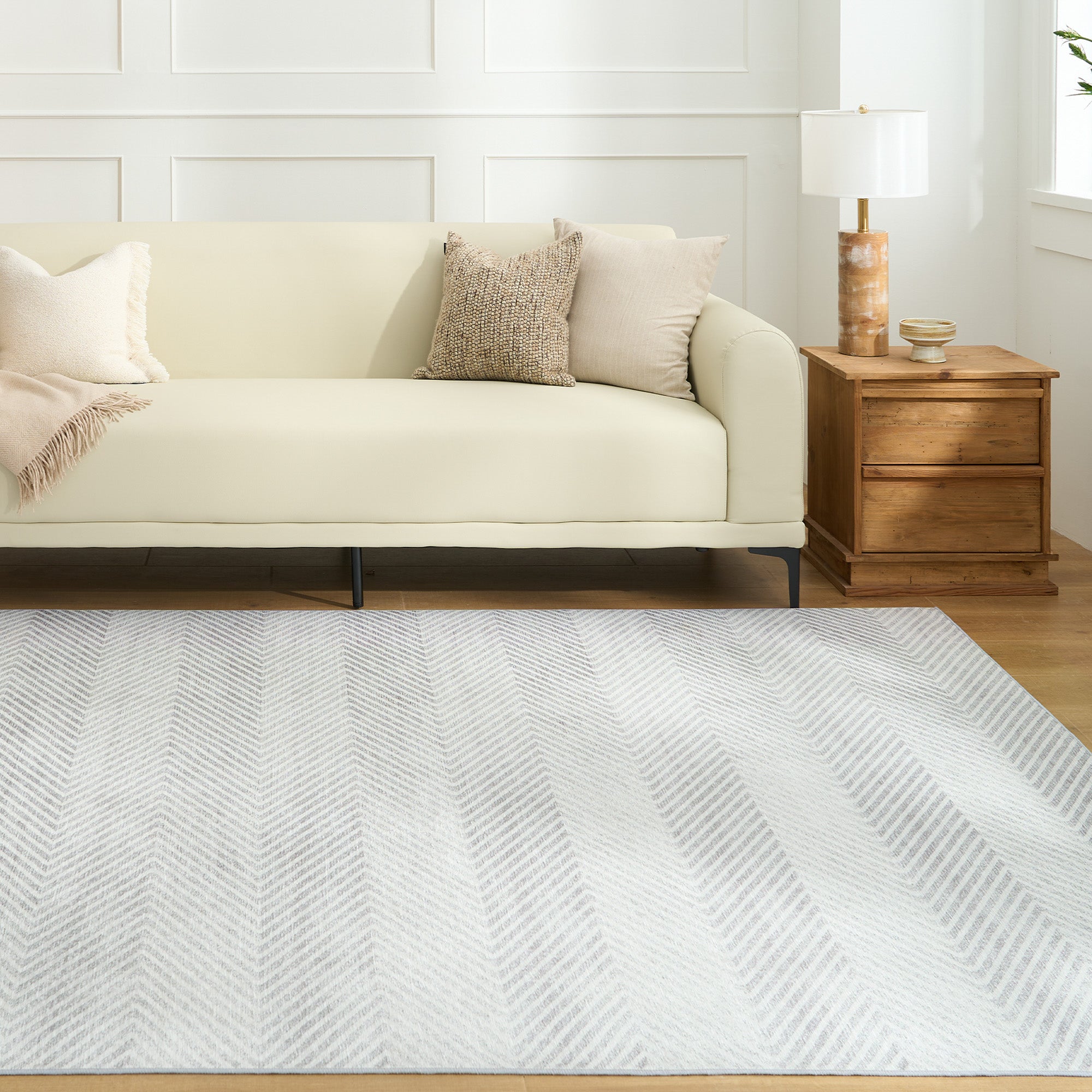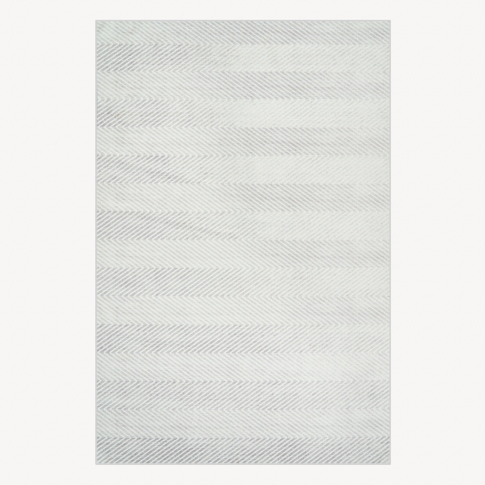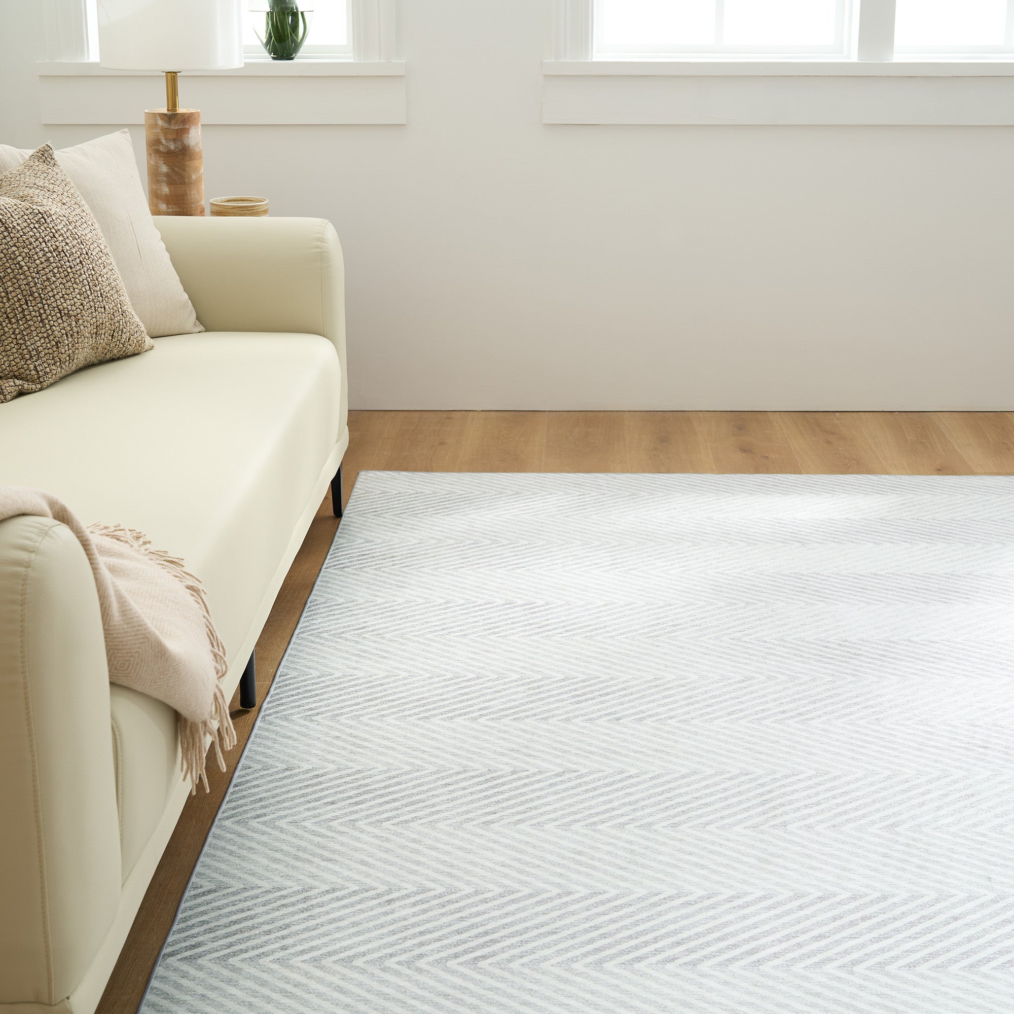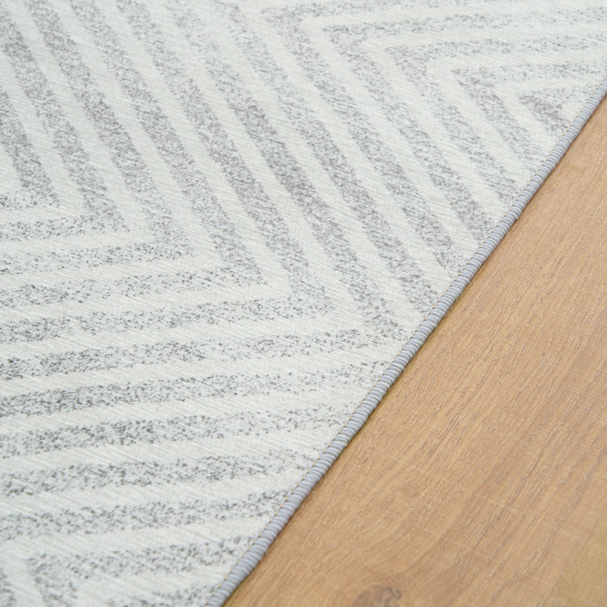 Leicht zu reinigender, waschbarer Teppich im minimalistischen, einfarbigen Chevron-Design. Strapazierfähig, fleckenabweisend, haustierfreundlich und mit rutschfester Unterlage. Ideal für den Wohnbereich.