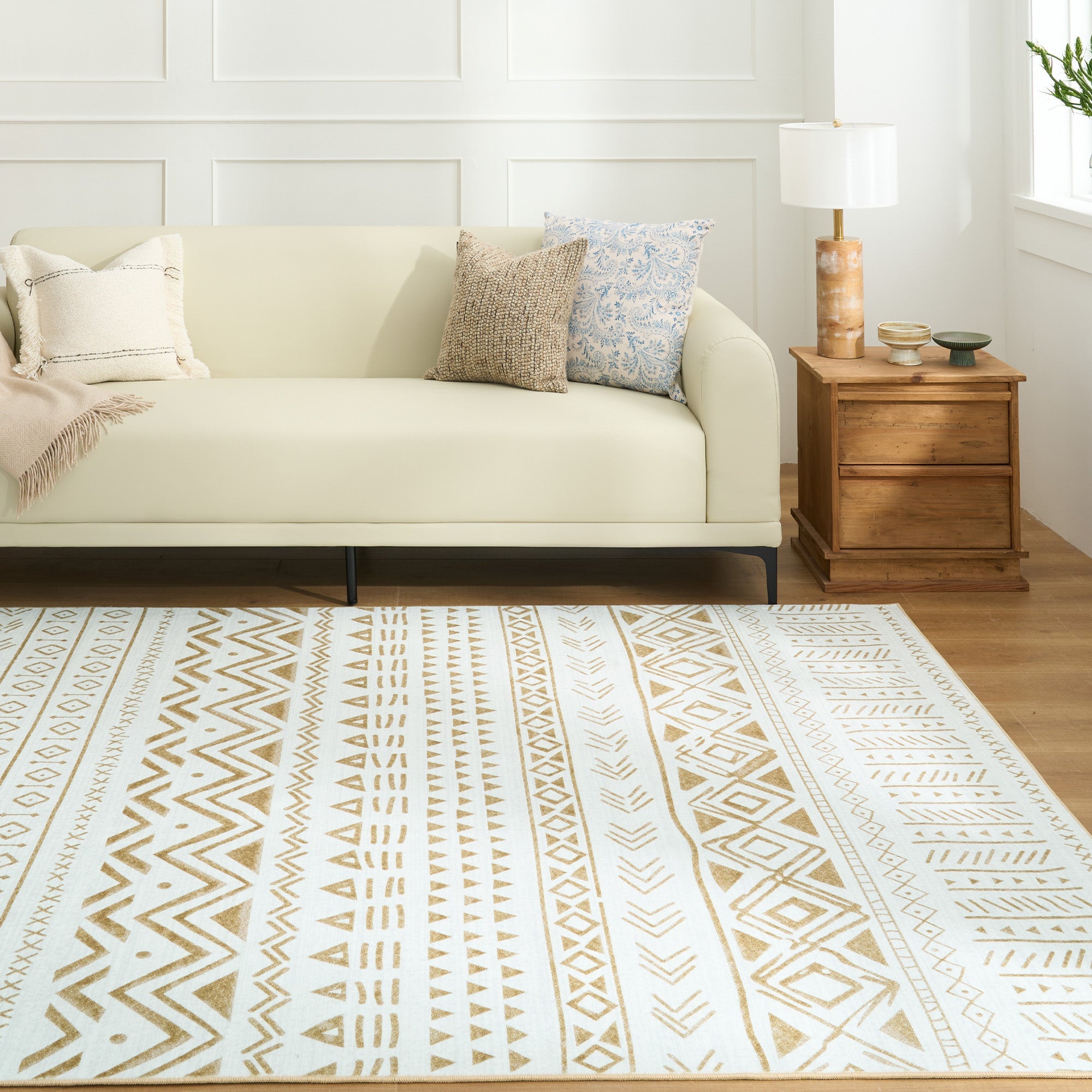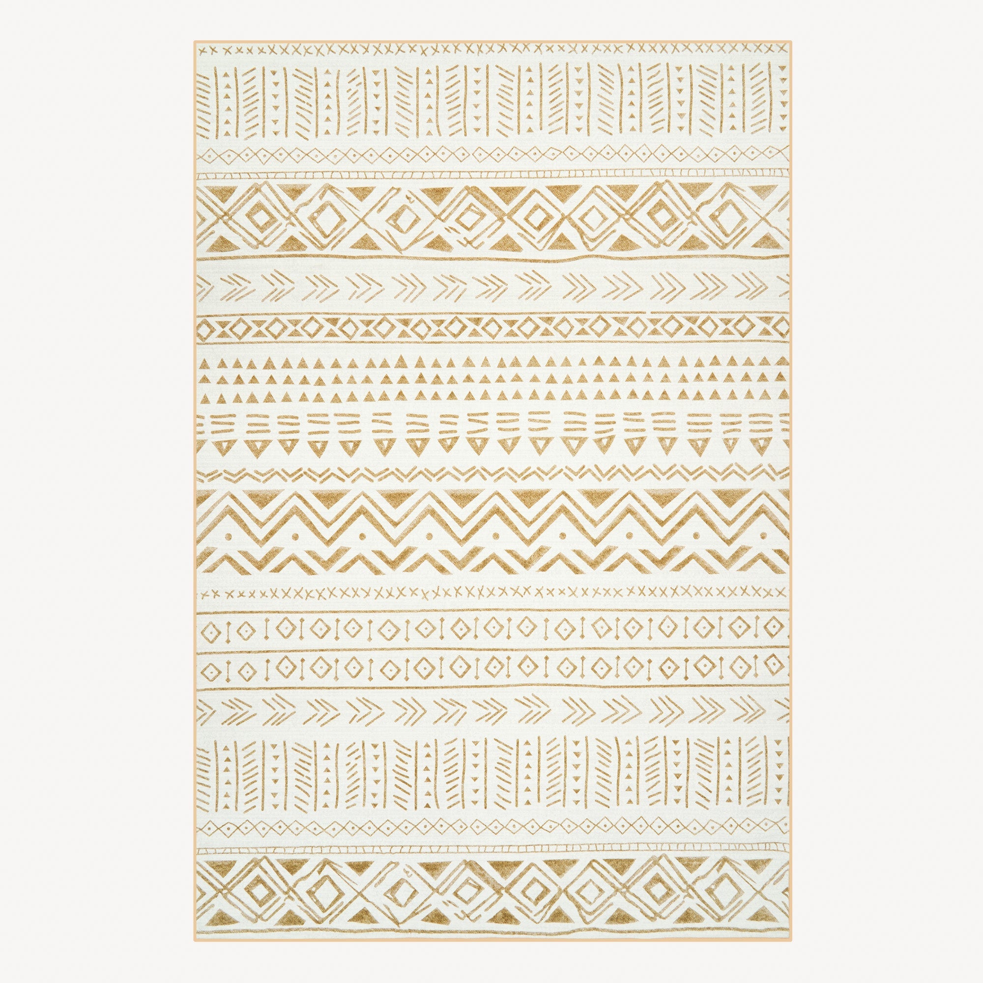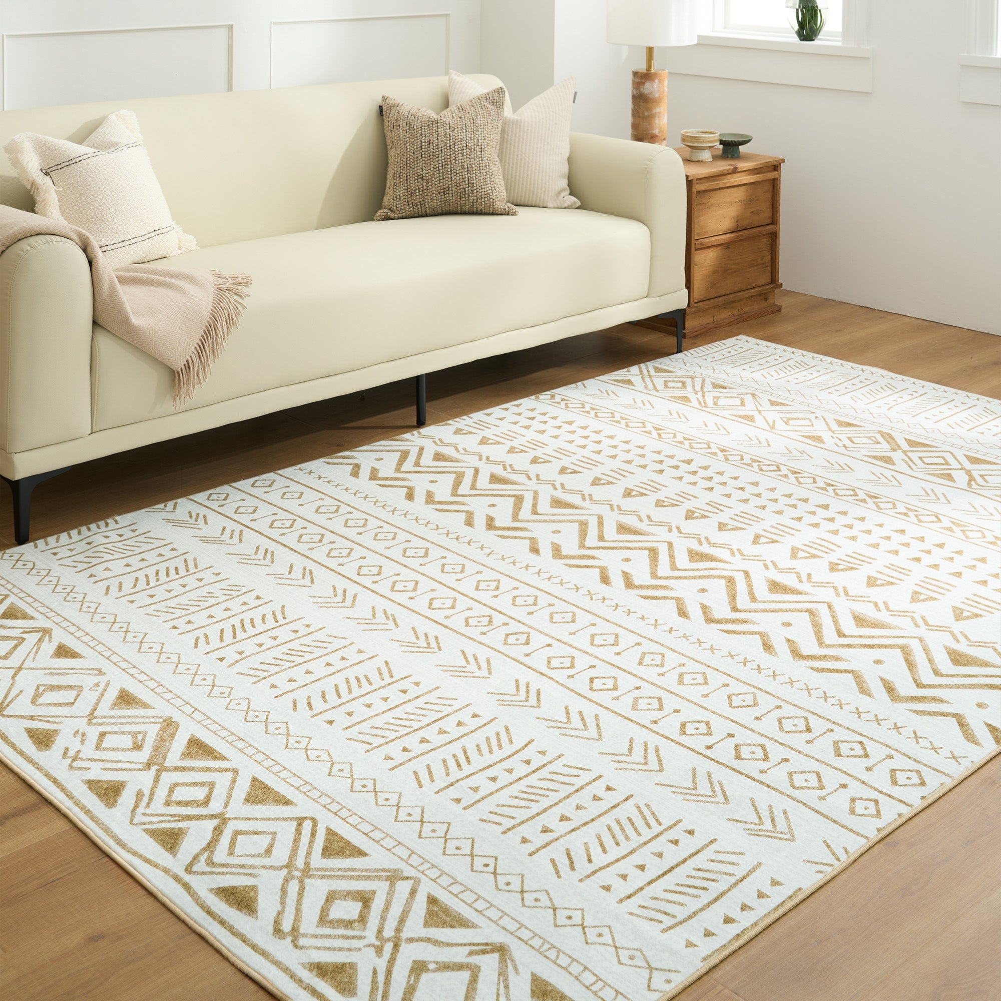 Leicht zu reinigender, waschbarer Teppich im modernen Tribal-Wüstenstil mit strapazierfähiger, fleckenabweisender und haustierfreundlicher rutschfester Unterlage für den Wohnbereich
