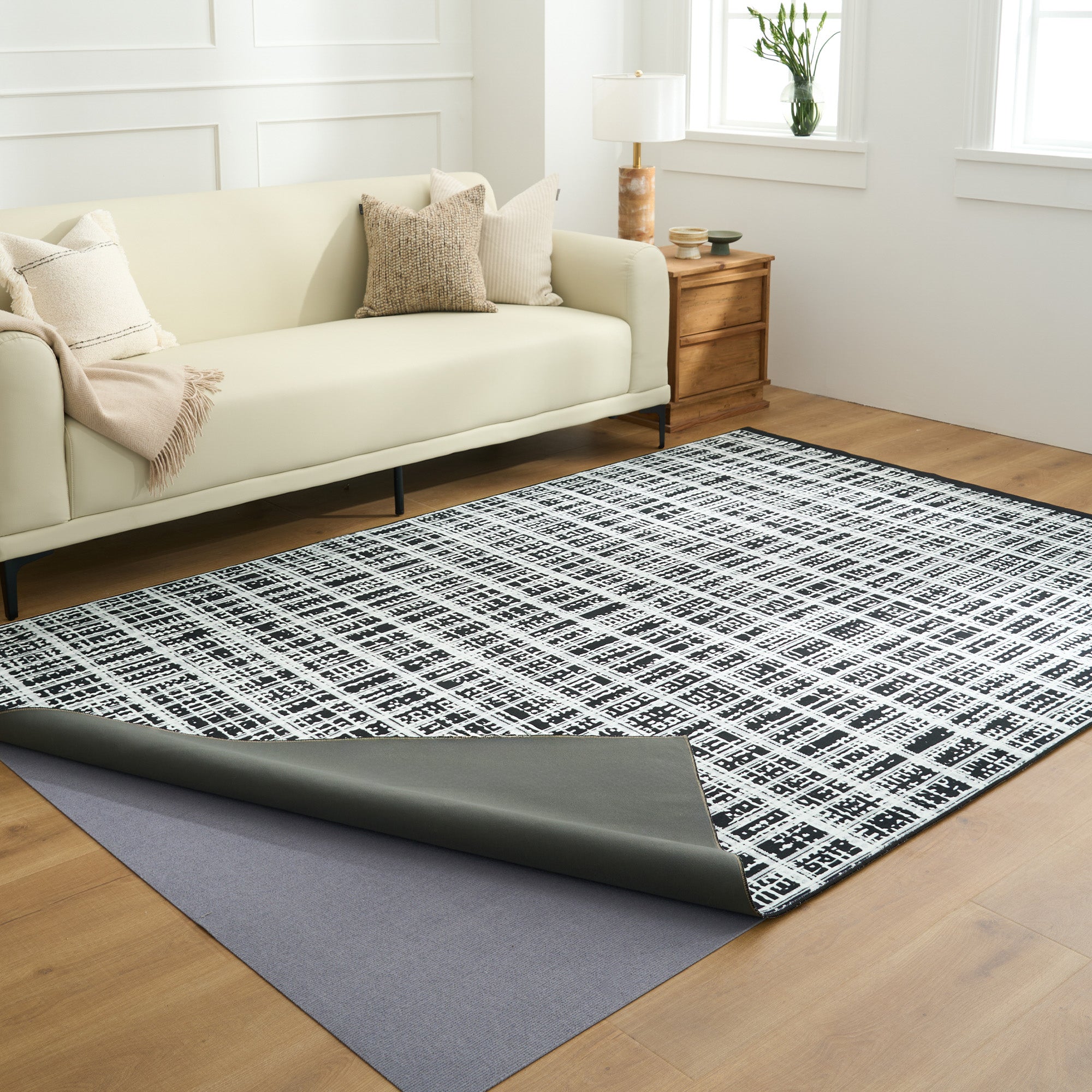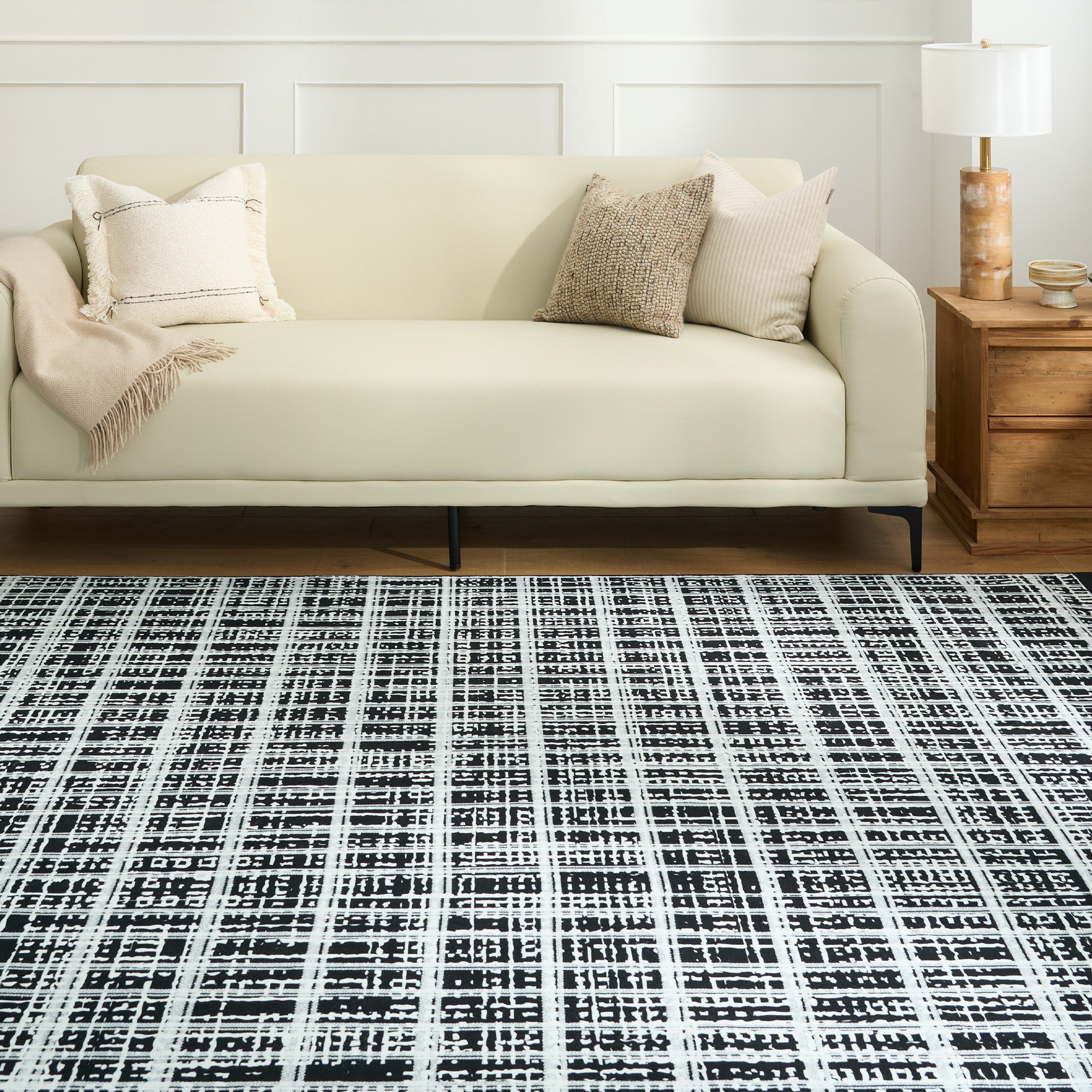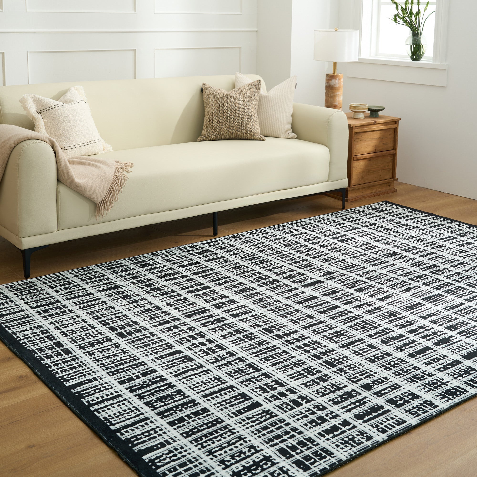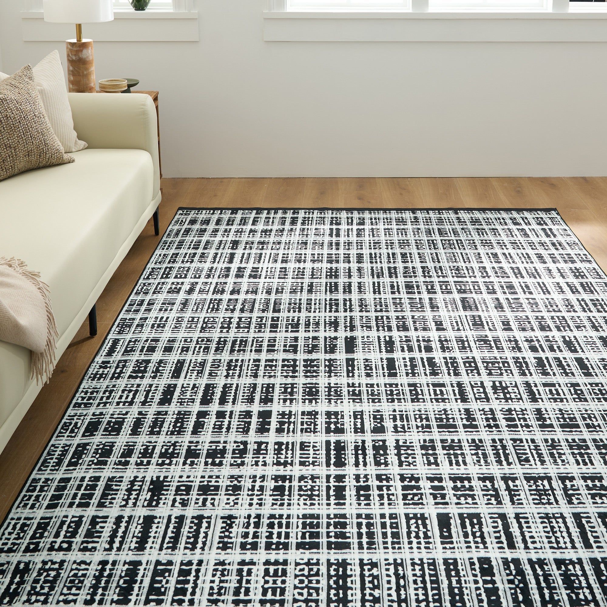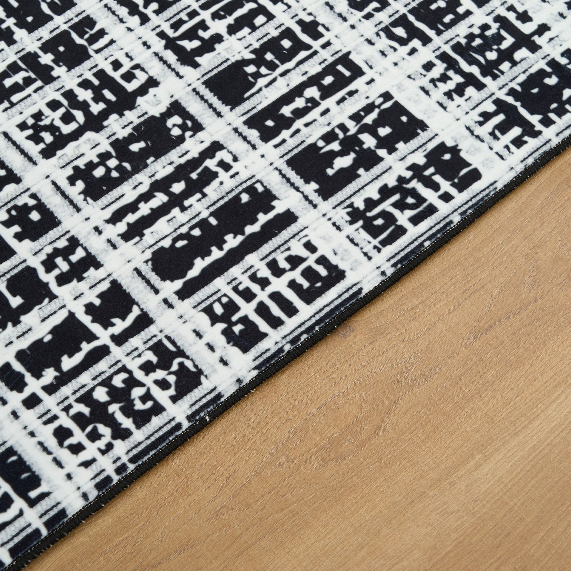 Pflegeleichter, waschbarer Teppich im urbanen Webmuster mit einfarbigem Karomuster, strapazierfähig, fleckenabweisend, haustierfreundlich, rutschfeste Unterlage, ideal für den Wohnbereich.