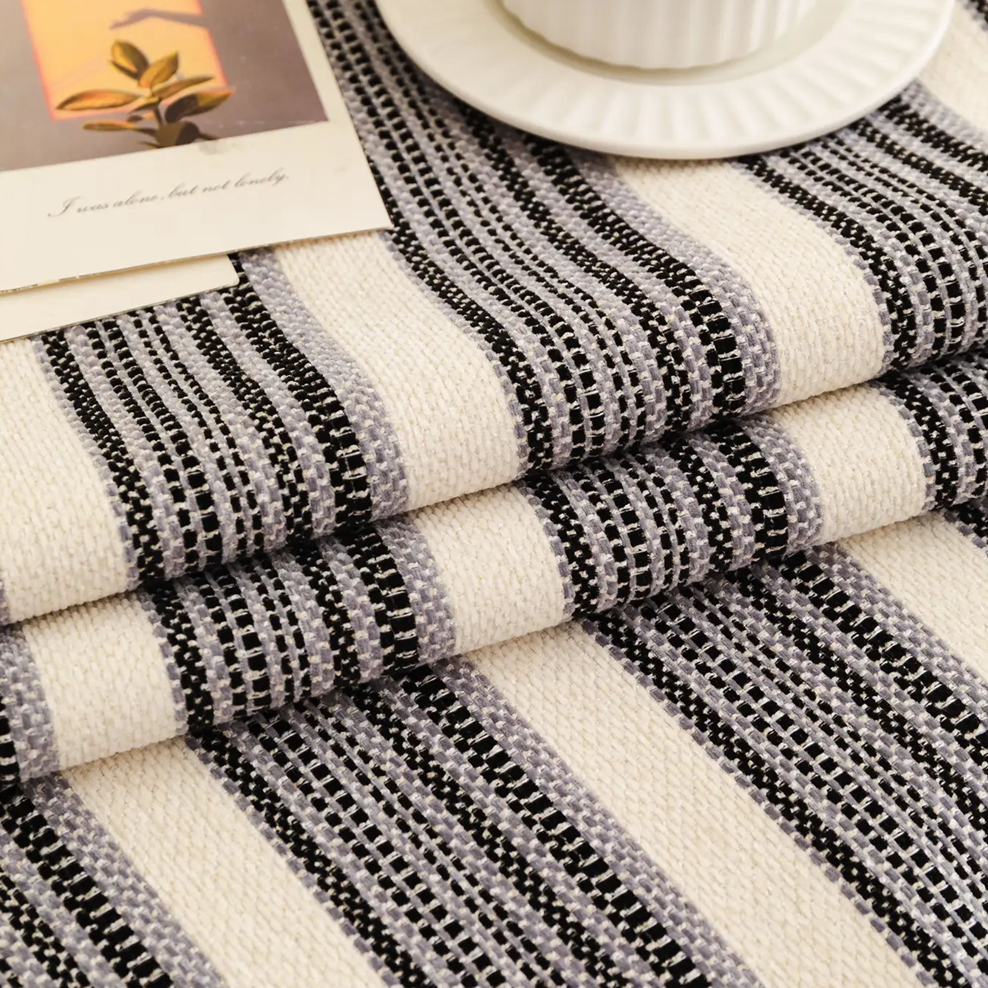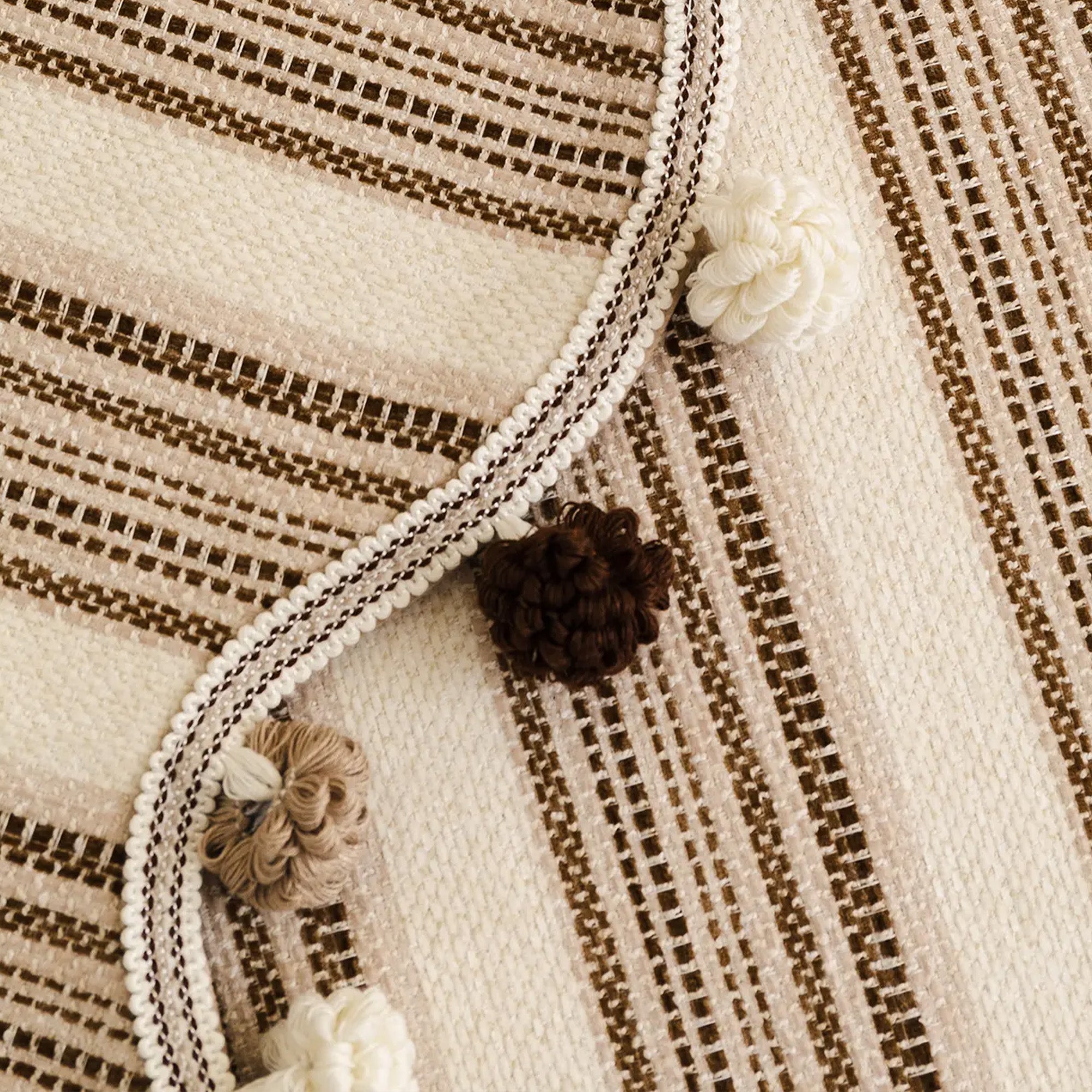 •Klassisches Streifenmuster mit dekorativer Pomponborte für einen gemütlichen, stilvollen Look.