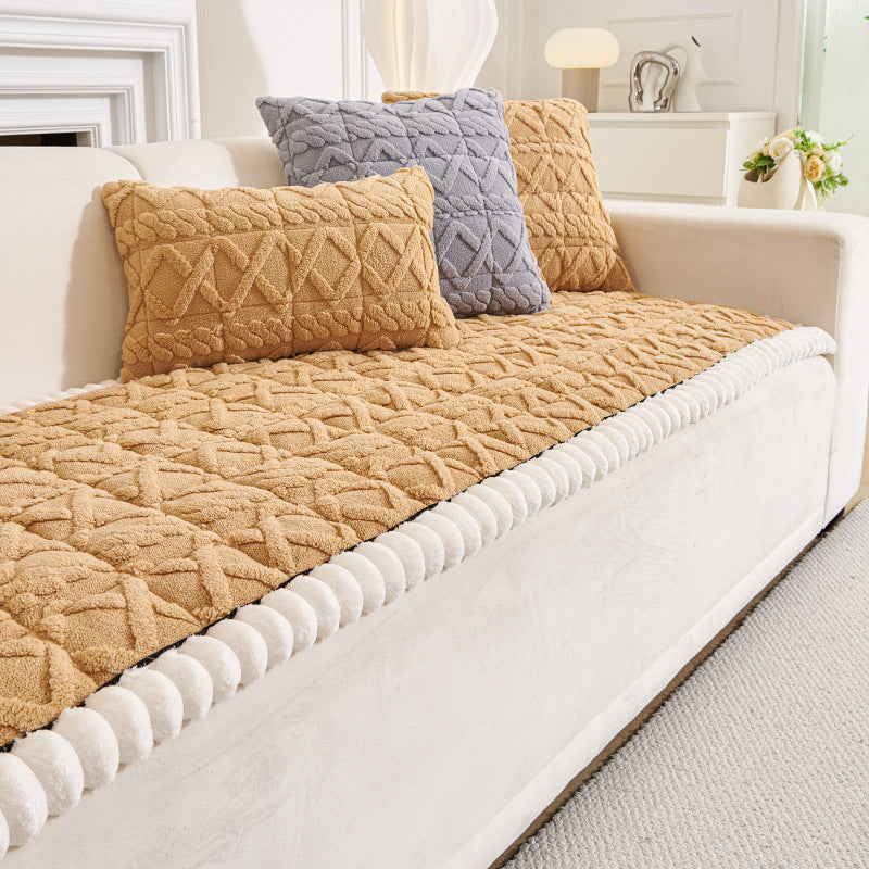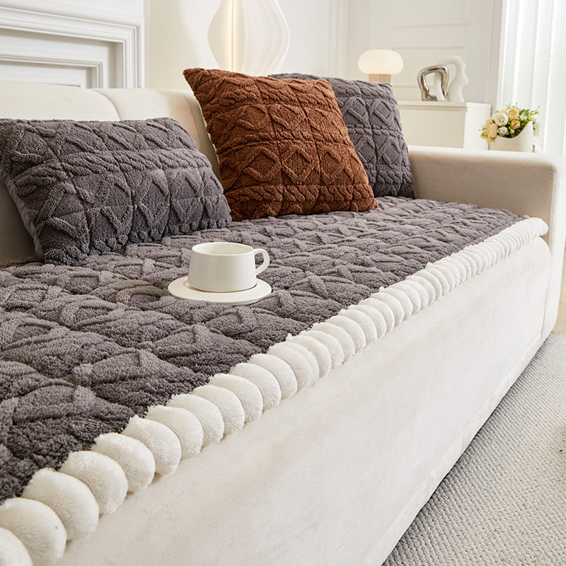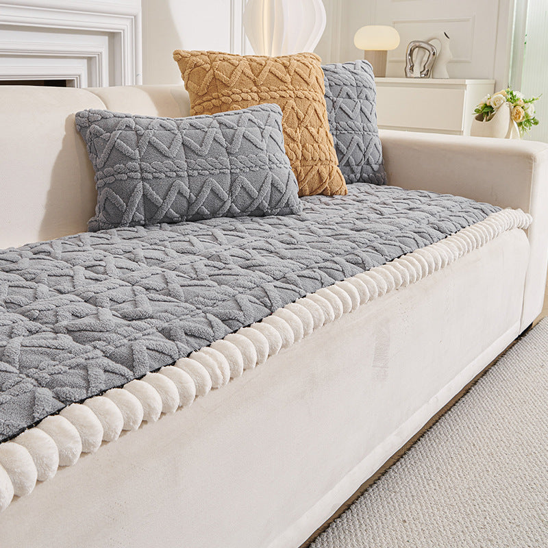 Samtiger, rutschfester Sofabezug aus Geo-Plüsch