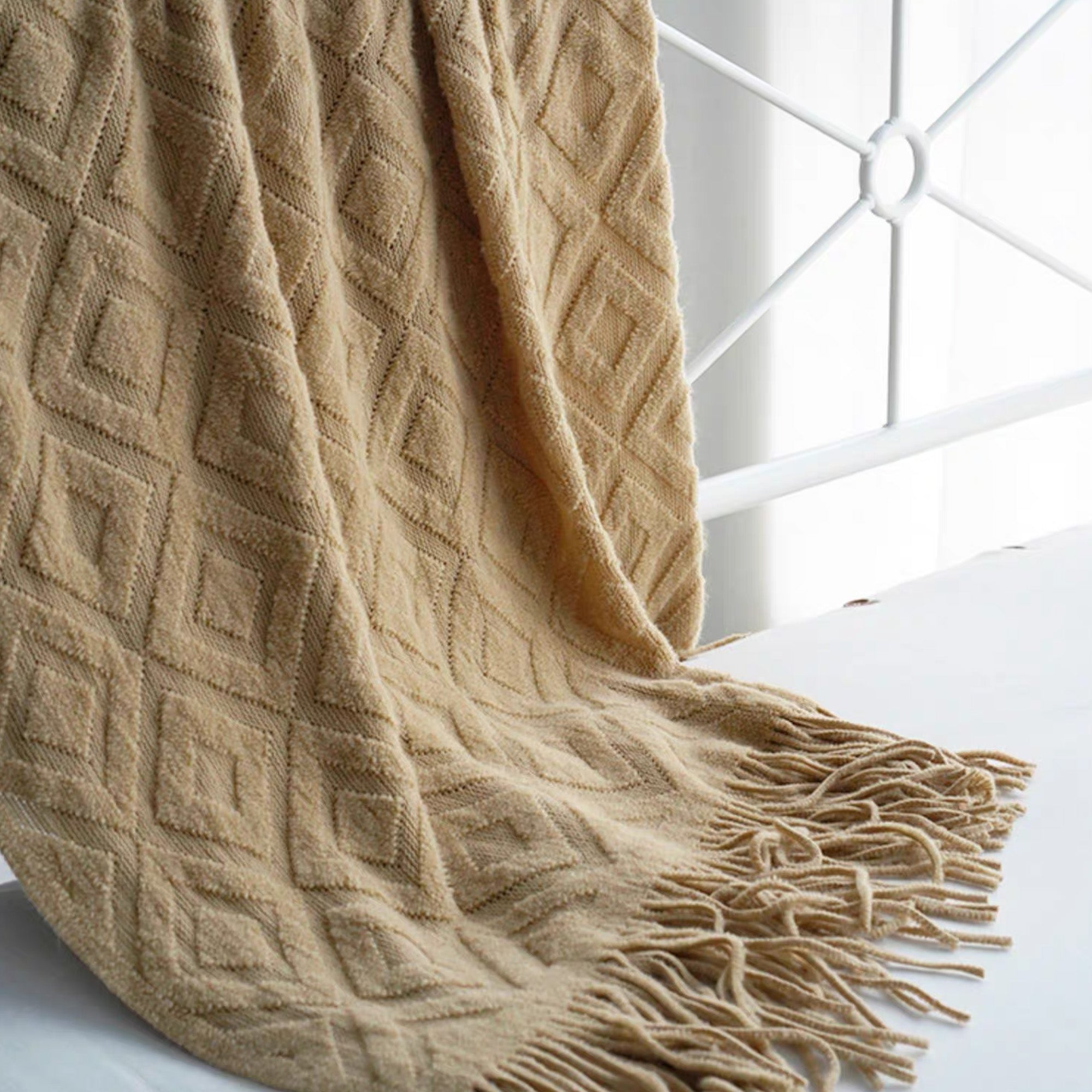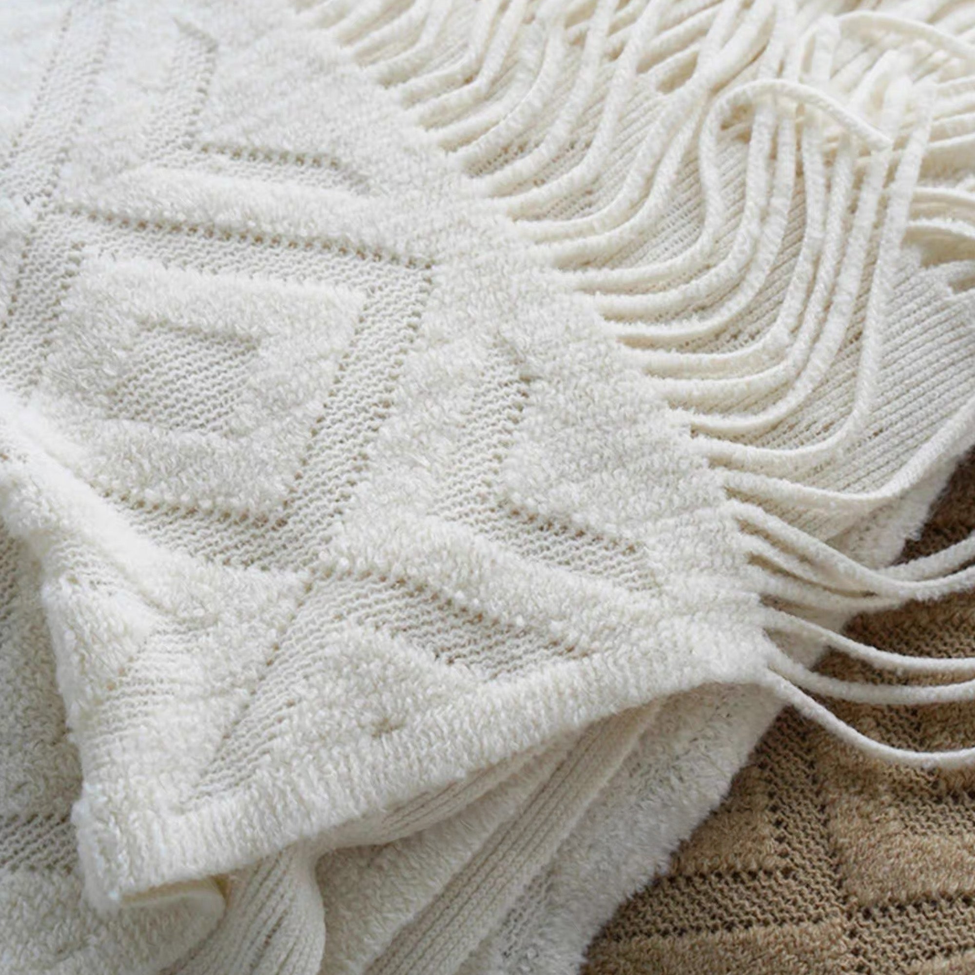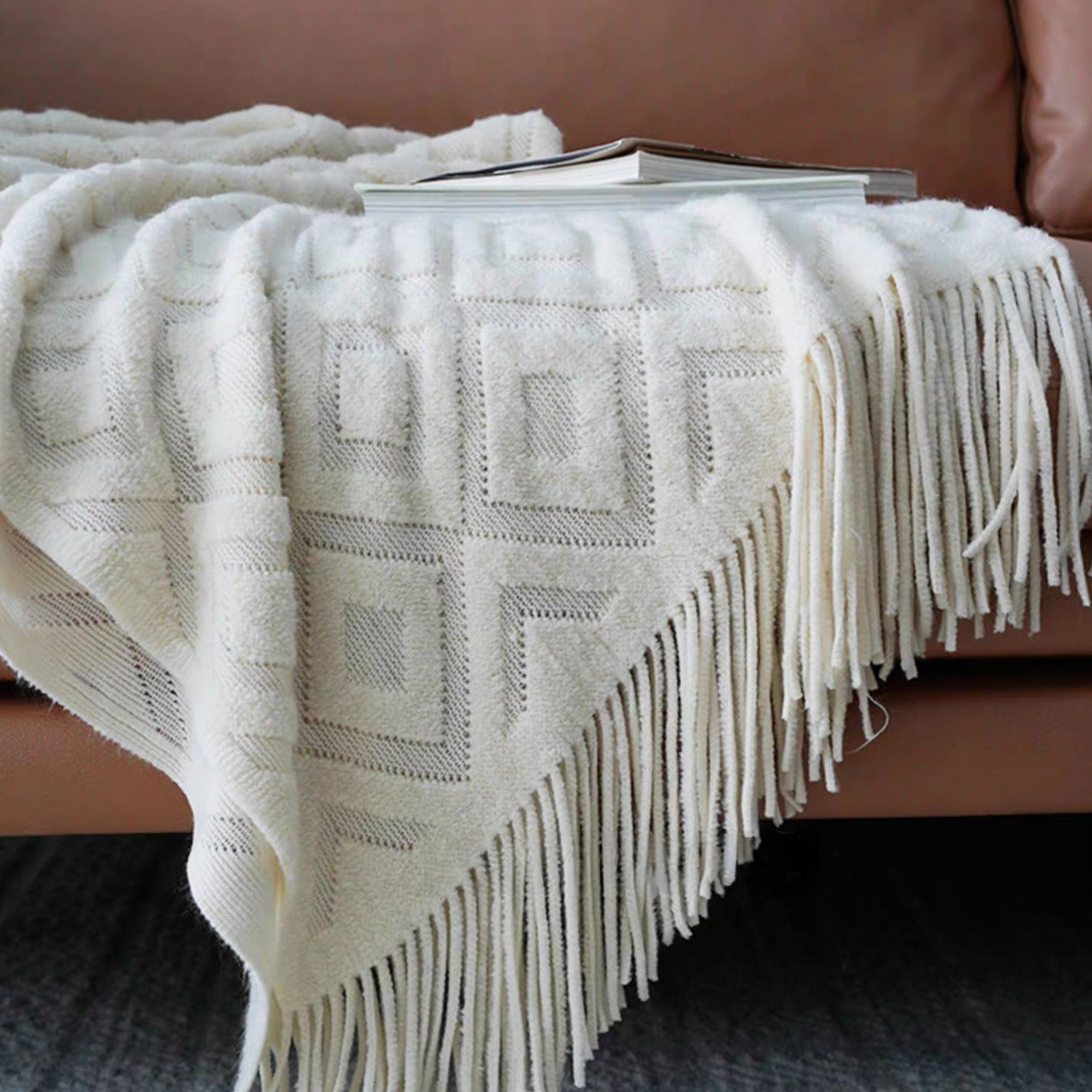 Verleihen Sie Ihrem Zuhause mit unserer Boho-Decke mit Rautenmuster und Fransen einen Hauch von Bohème-Eleganz. Die Decke mit ihrem sanften Rautenmuster und den langen Fransen sorgt für eine gemütliche und einladende Atmosphäre. Hergestellt aus hochwertigem, atmungsaktivem Material, ist sie ebenso funktional wie stilvoll und spendet Wärme und Struktur in jedem Raum. Ob über Sofa, Bett oder Lesesessel – diese Decke passt perfekt zu modernen und rustikalen Einrichtungsstilen.