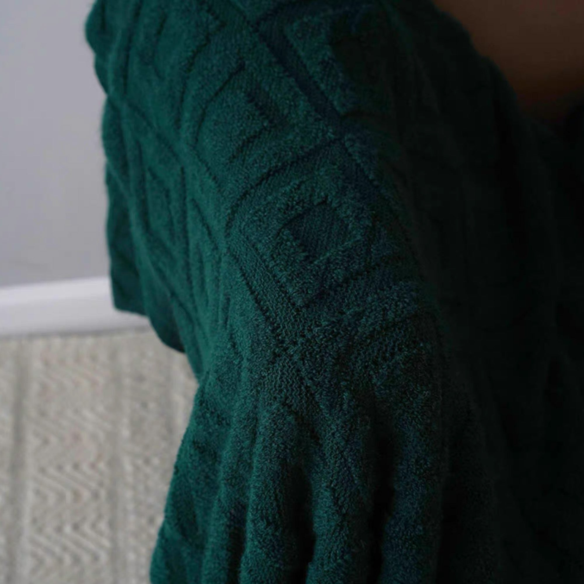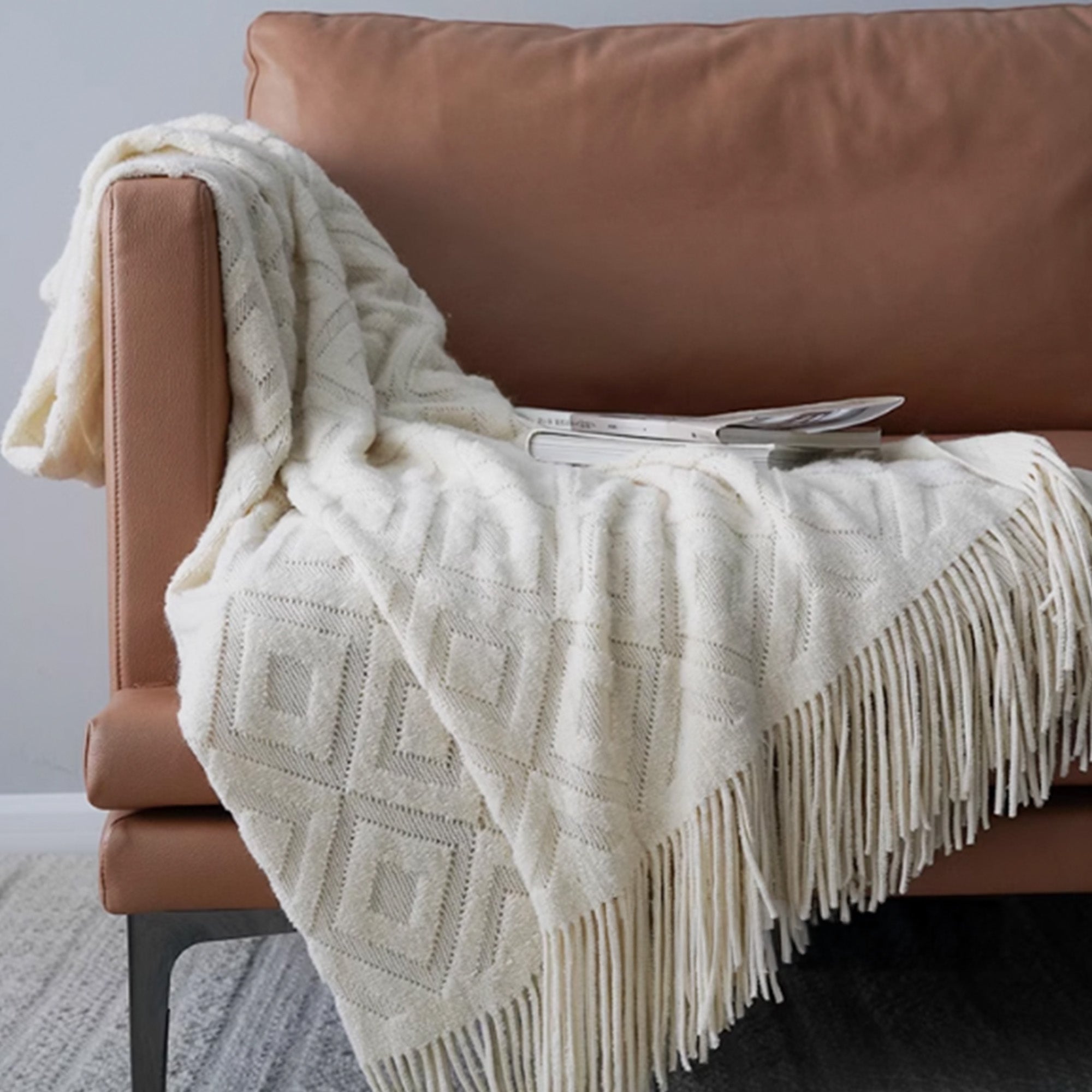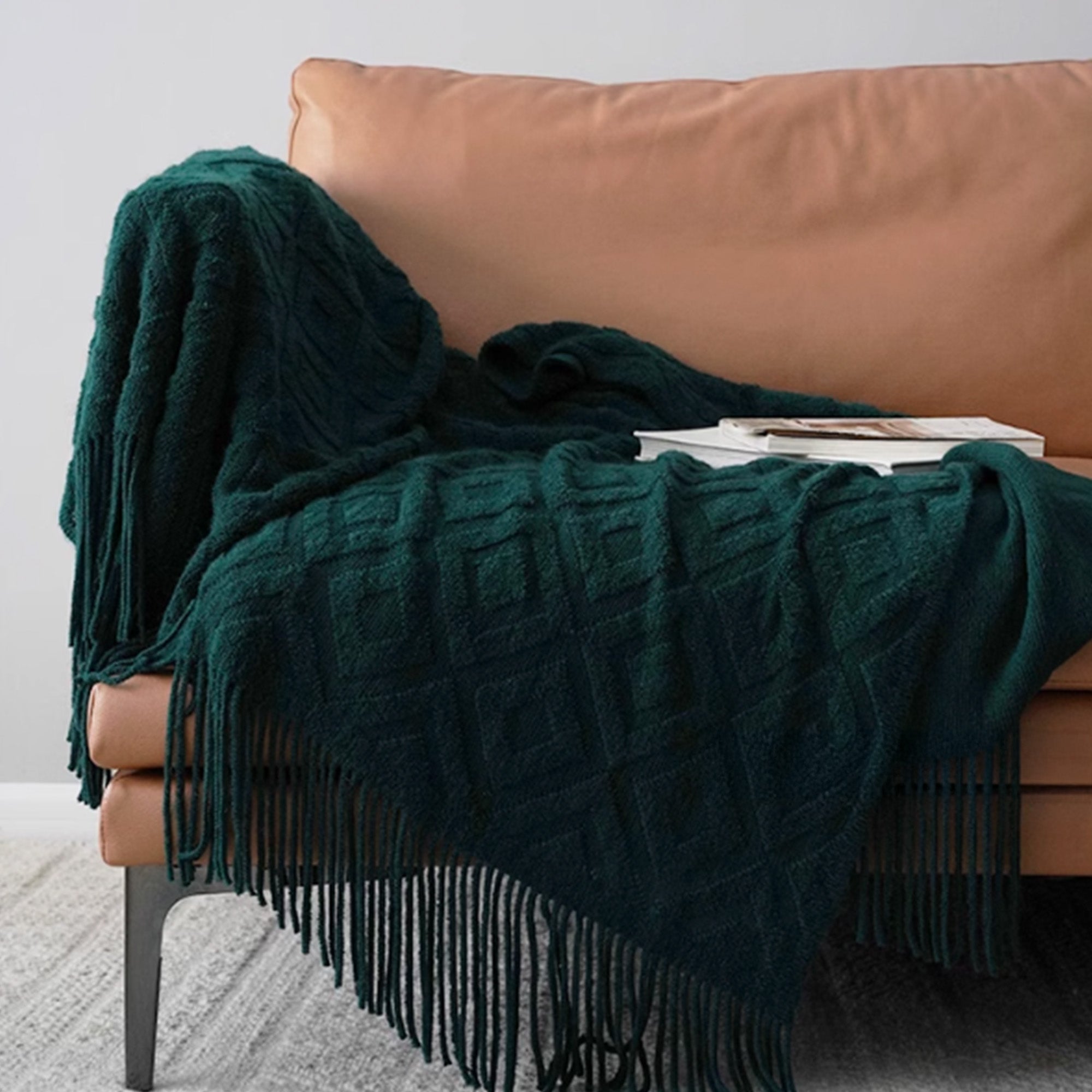 Verleihen Sie Ihrem Zuhause mit unserer Boho-Decke mit Rautenmuster und Fransen einen Hauch von Bohème-Eleganz. Die Decke mit ihrem sanften Rautenmuster und den langen Fransen sorgt für eine gemütliche und einladende Atmosphäre. Hergestellt aus hochwertigem, atmungsaktivem Material, ist sie ebenso funktional wie stilvoll und spendet Wärme und Struktur in jedem Raum. Ob über Sofa, Bett oder Lesesessel – diese Decke passt perfekt zu modernen und rustikalen Einrichtungsstilen.
