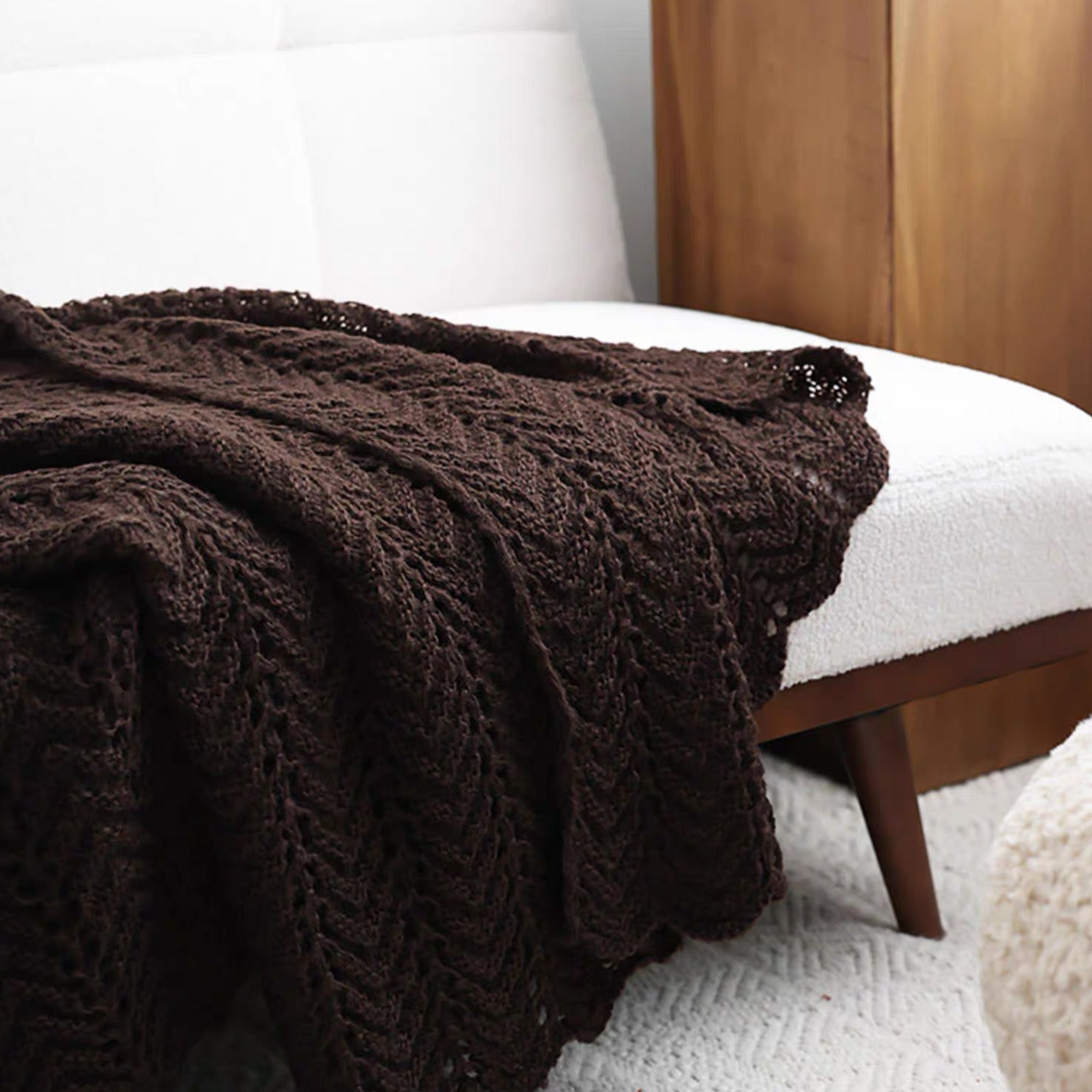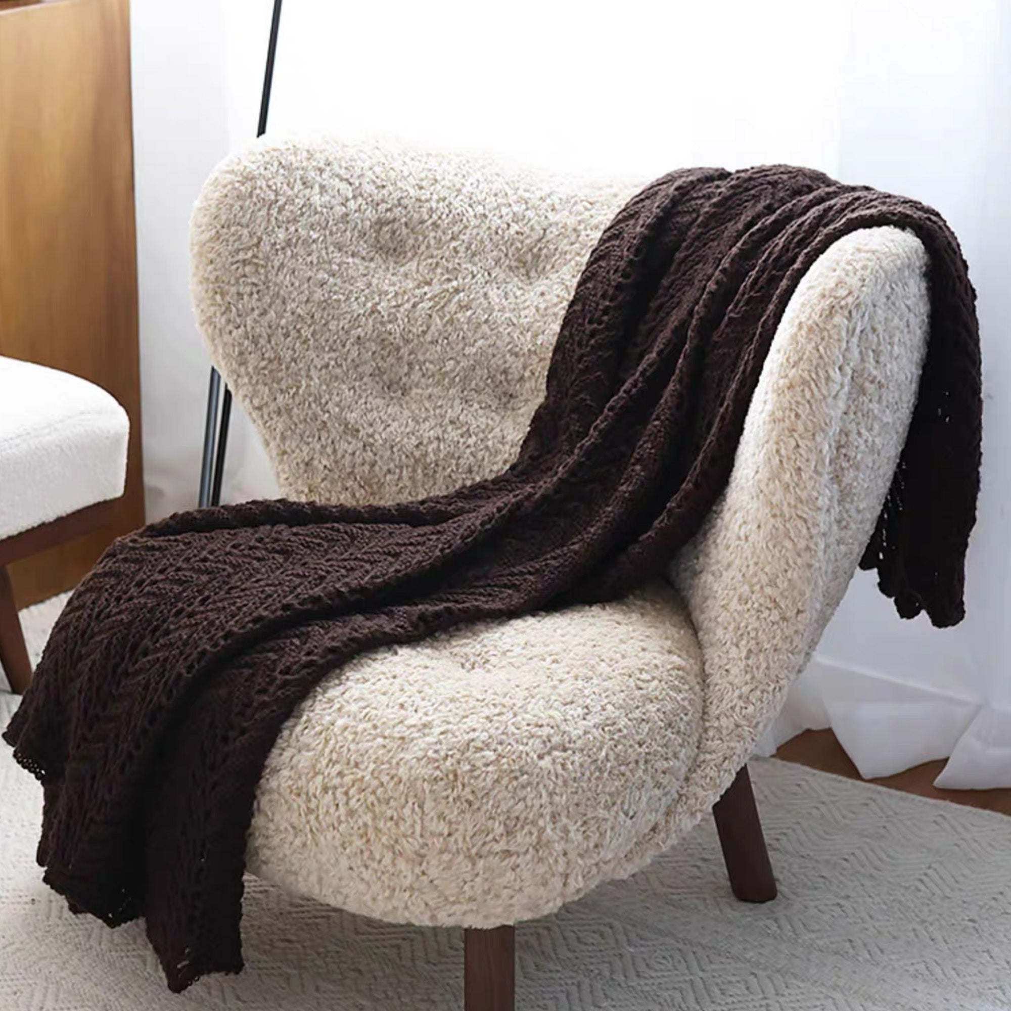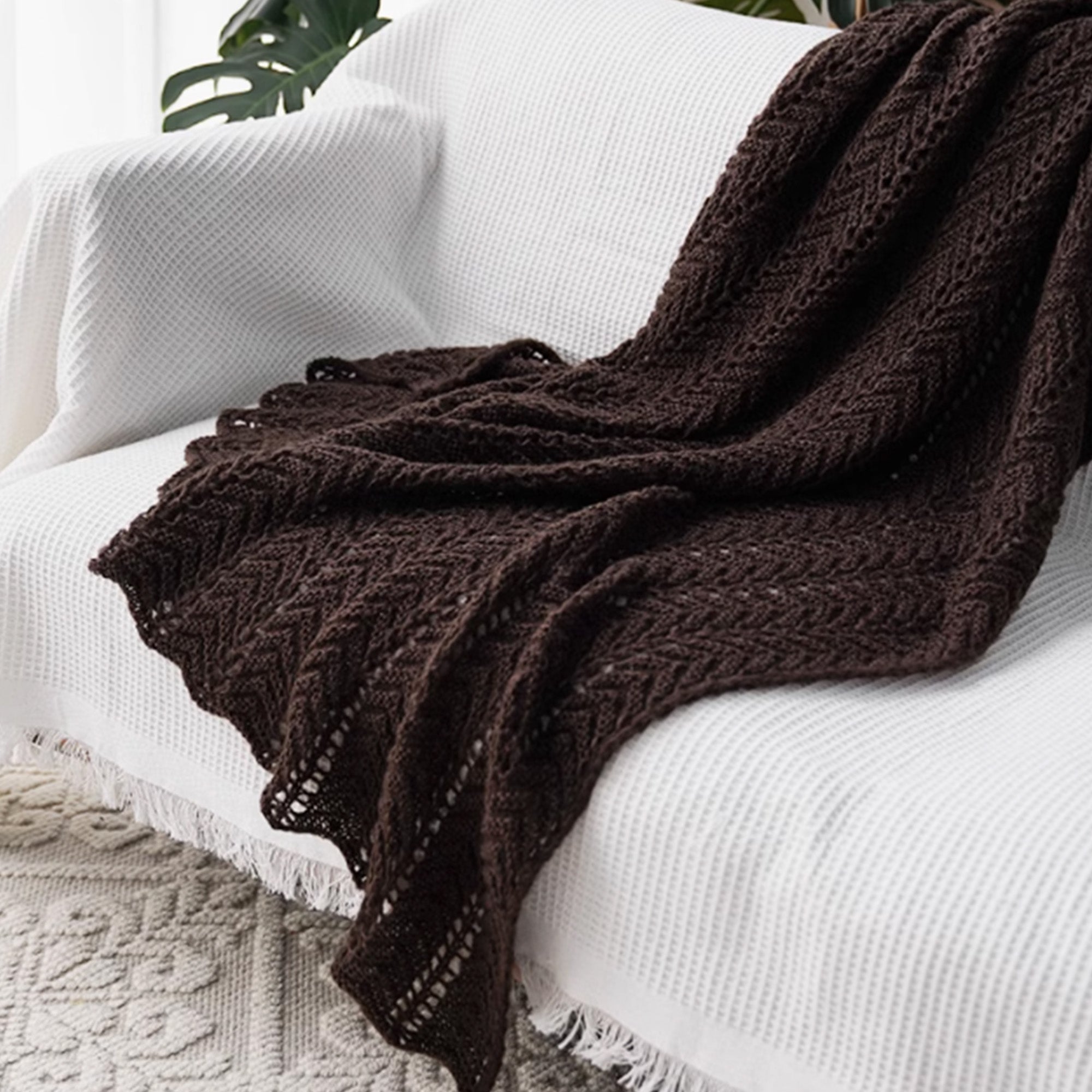 •Weiches Chevron-Strickmuster für einen strukturierten, einladenden Look.
