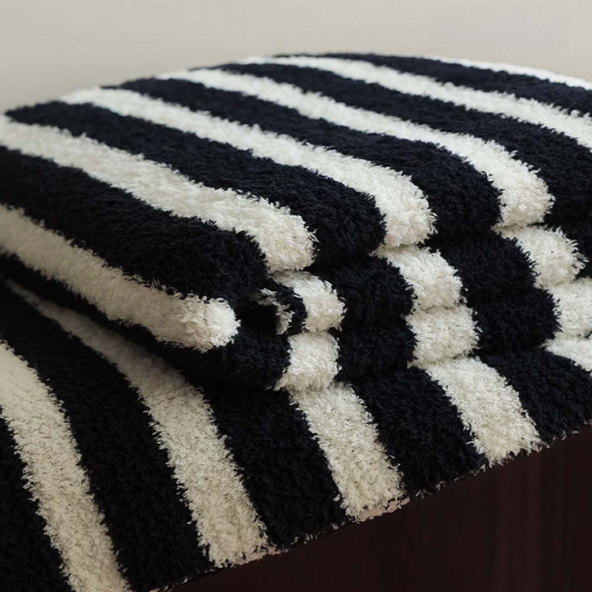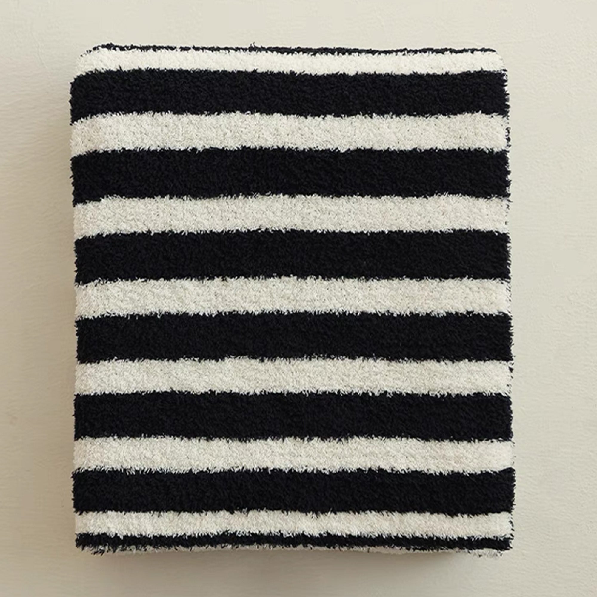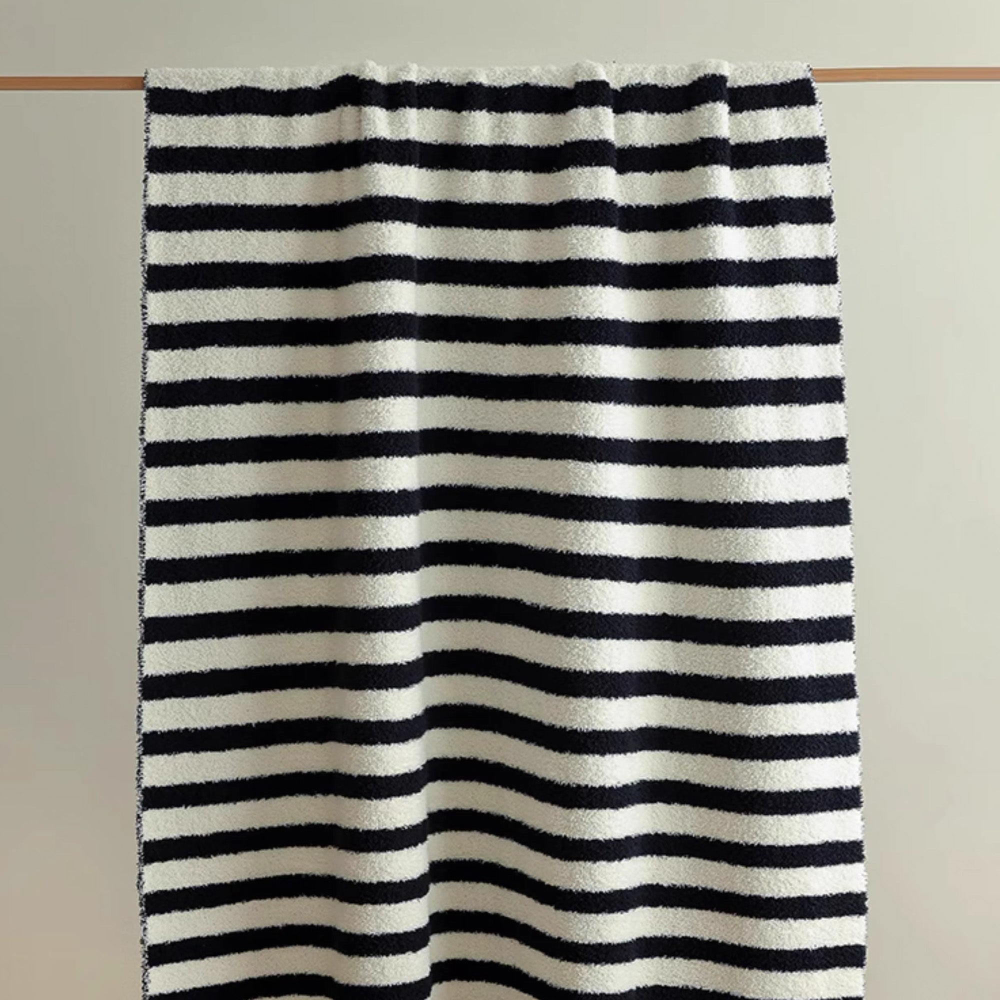 Für alle, die ein ausdrucksstarkes Design lieben, ohne auf Komfort zu verzichten, ist diese schwarz-weiß gestreifte Kuscheldecke genau das Richtige. Sie ist weich, ein echter Hingucker und verleiht jedem Raum eine persönliche Note. Ob über Sofa, Sessel oder Bett drapiert – diese Decke ist perfekt für gemütliche Momente.