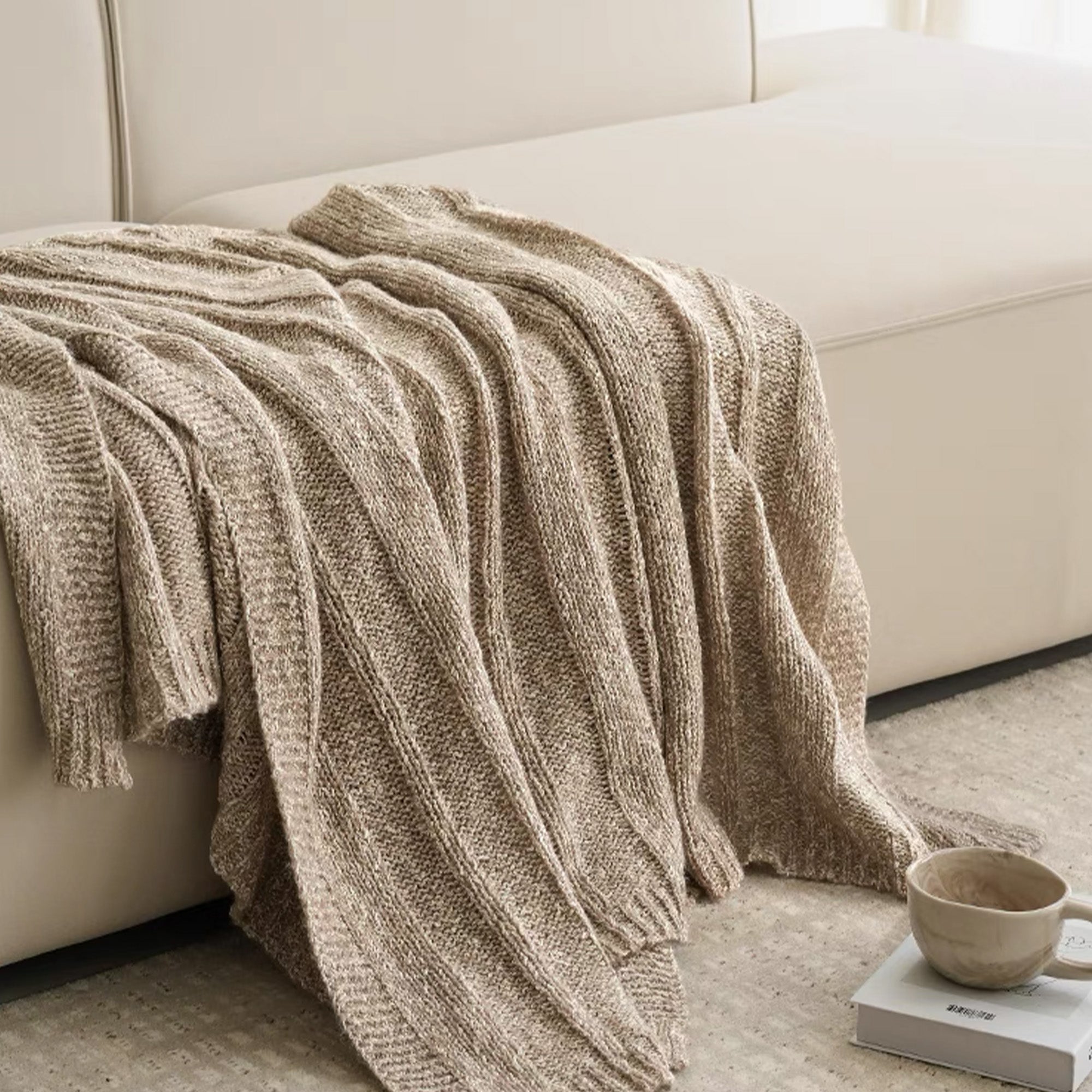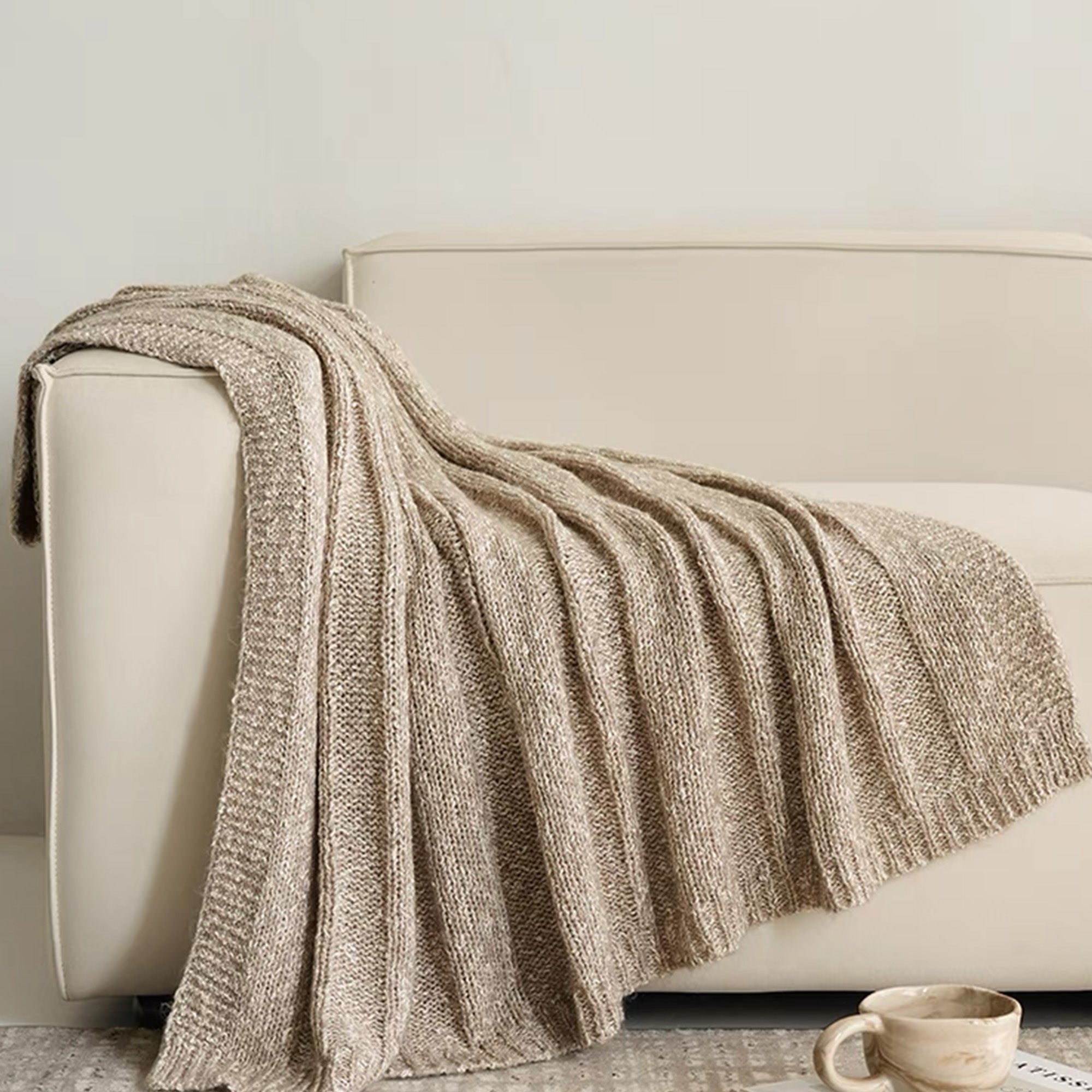 Kuschelige gerippte Bouclé-Überwurfdecke