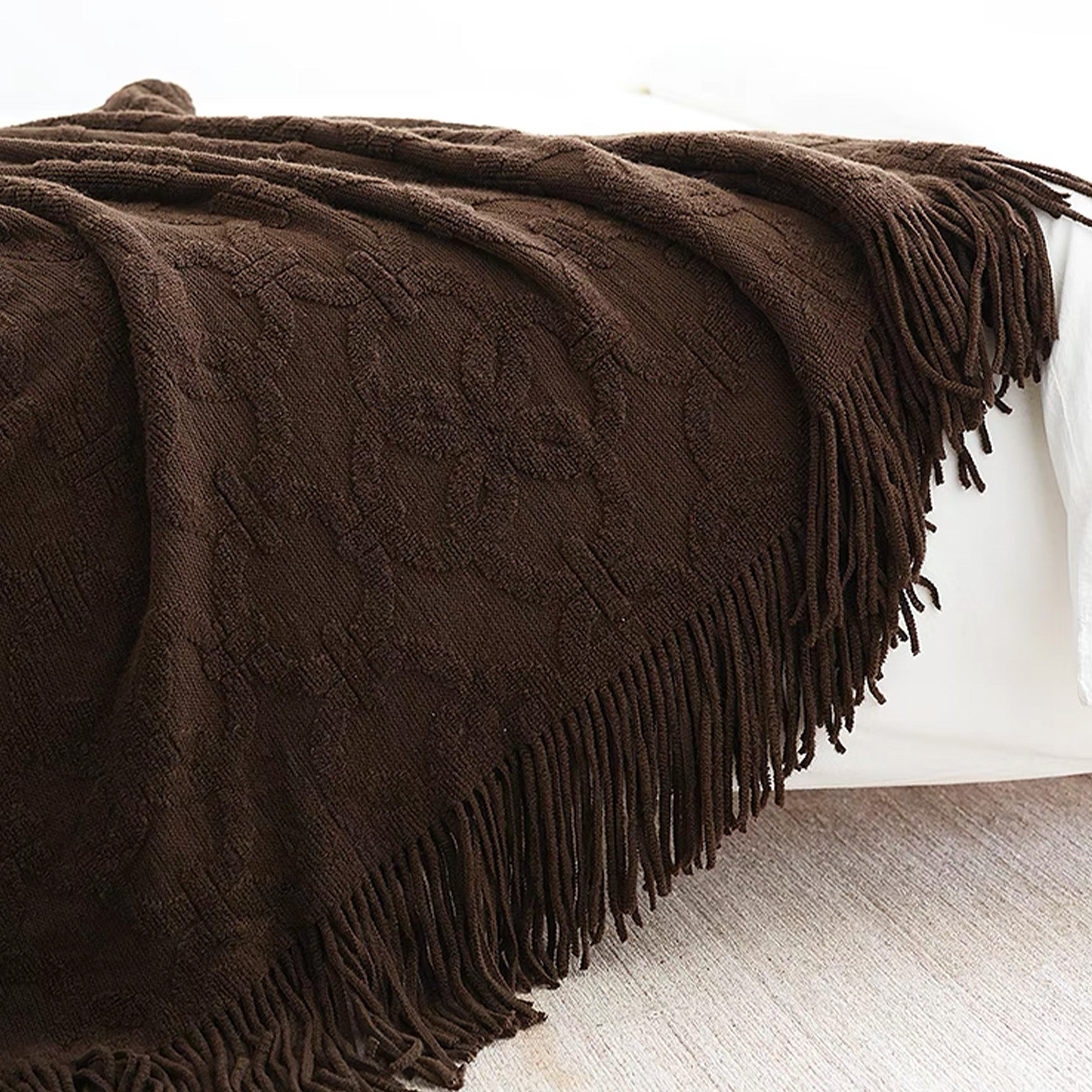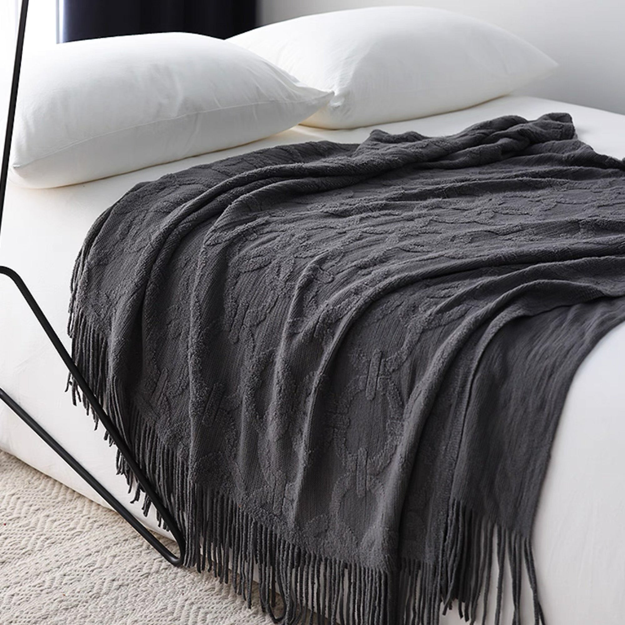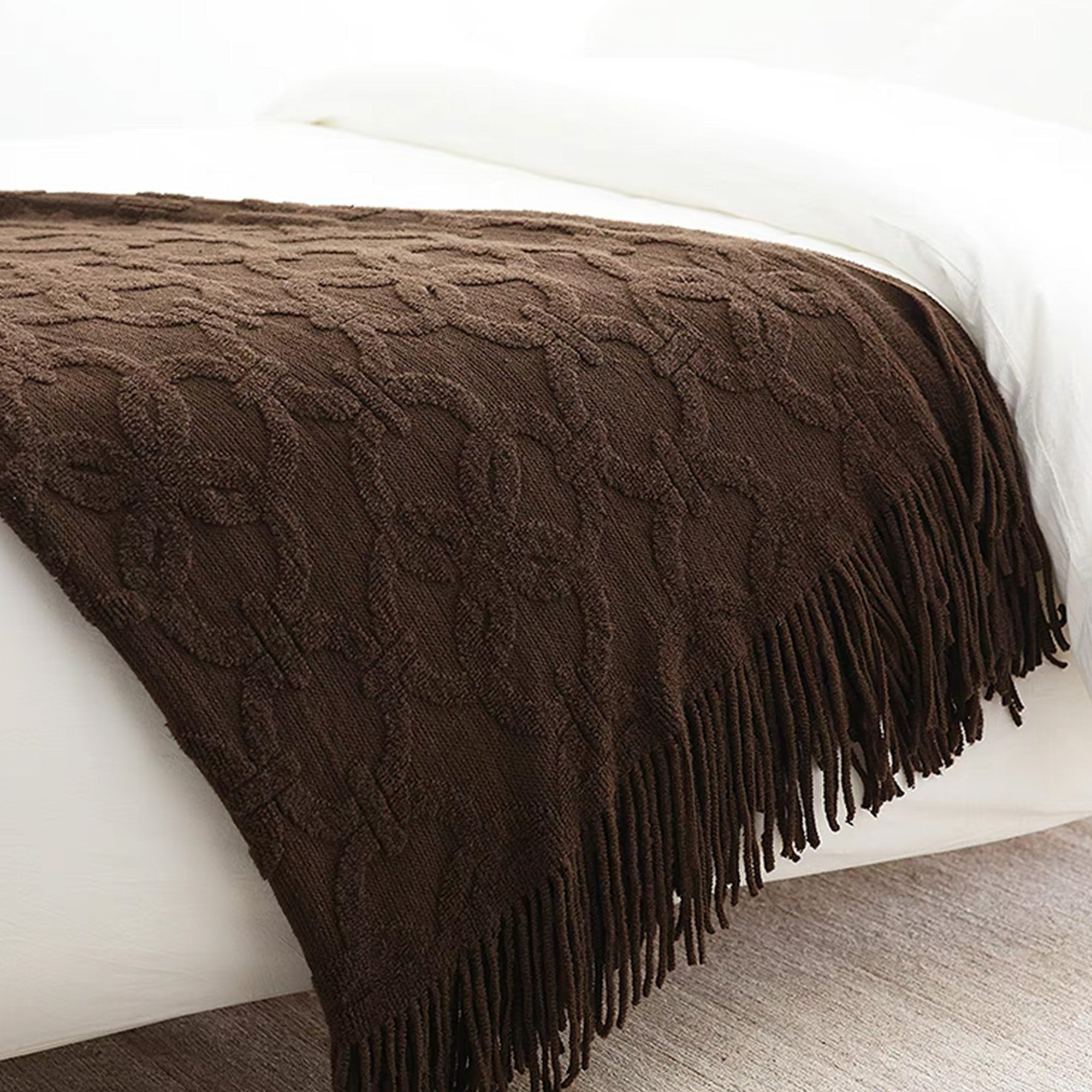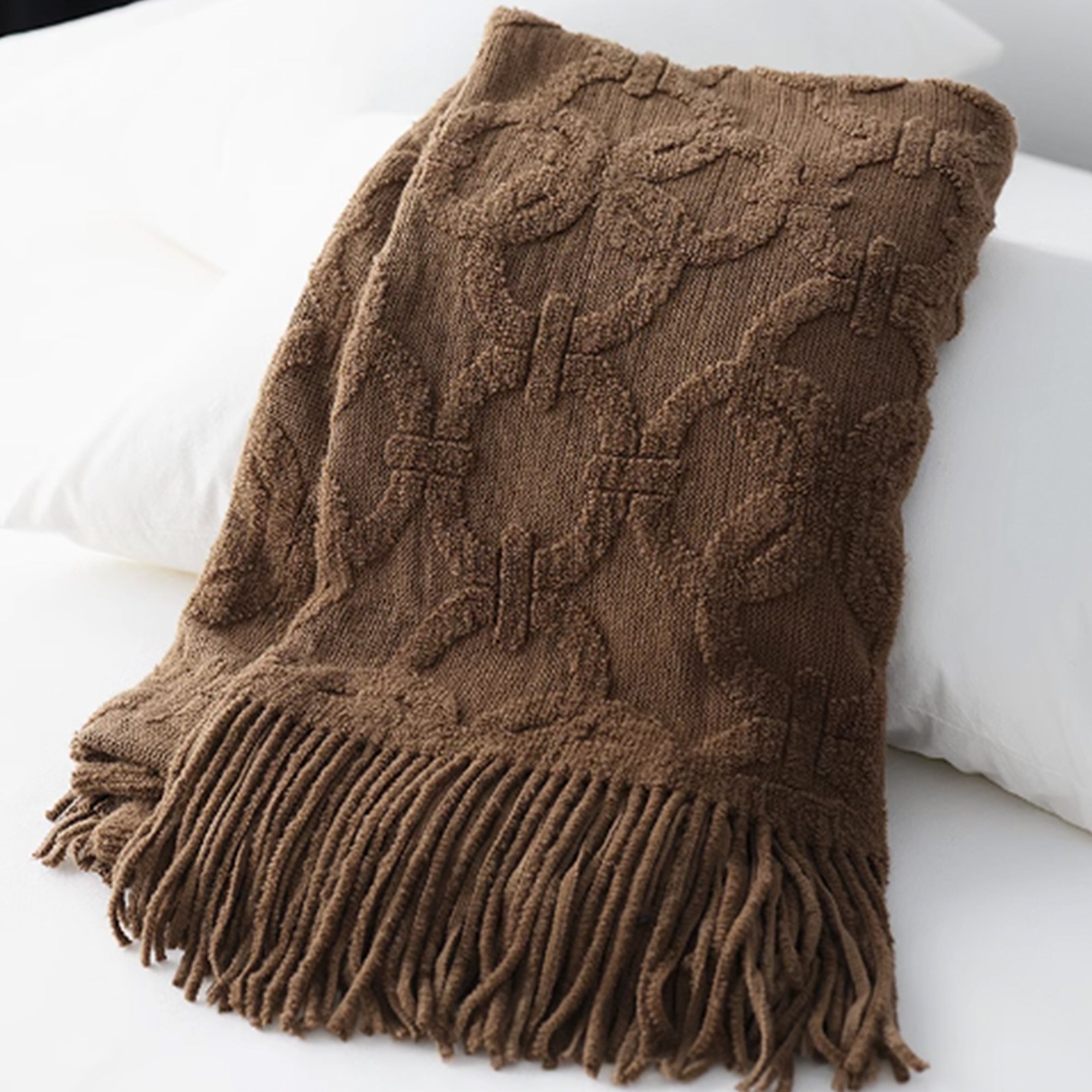 Hüllen Sie sich in raffinierten Luxus mit unserer eleganten Fransen-Wohndecke. Diese wunderschön gearbeitete Decke besticht durch ein dezentes, raffiniertes Muster aus ineinandergreifenden Kreisen und verleiht jedem Raum Tiefe und Eleganz. Hergestellt aus hochwertigen, weichen Materialien, spendet sie Wärme und Komfort und ist gleichzeitig ein geschmackvolles Dekorationselement. Die zarten Fransen setzen einen zusätzlichen stilvollen Akzent und machen sie perfekt zum Drapieren über Sofa, Bett oder Lieblingssessel.