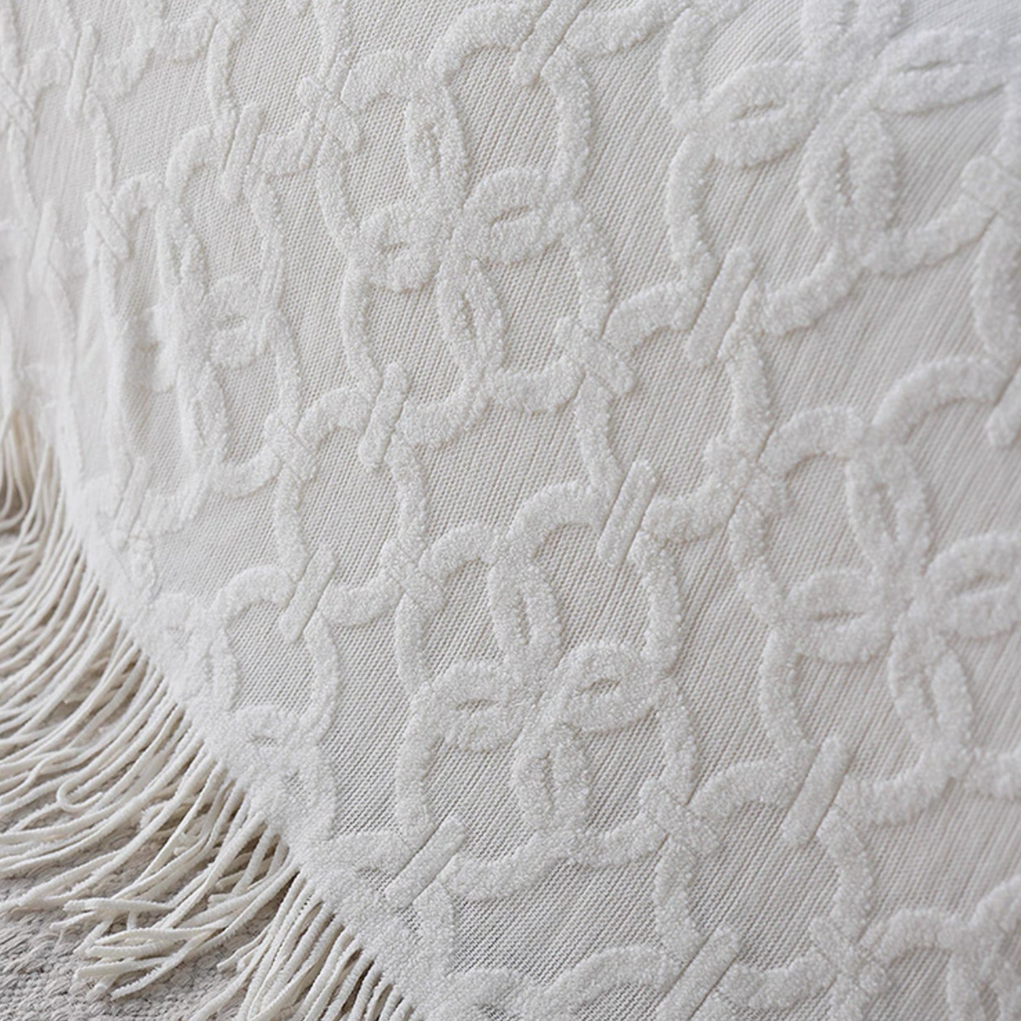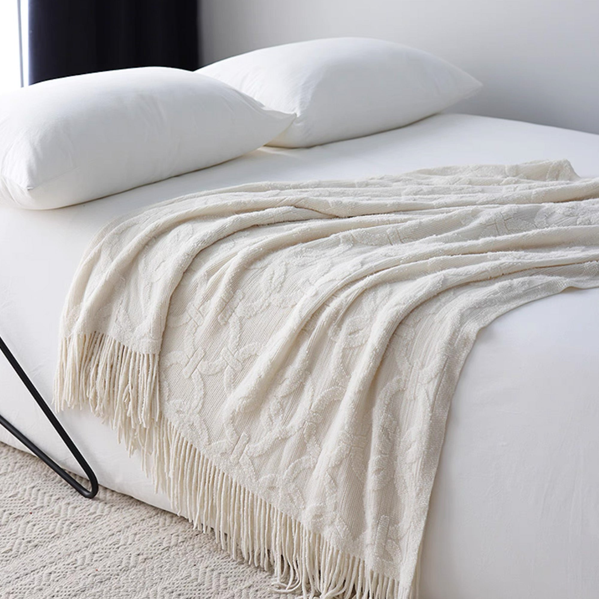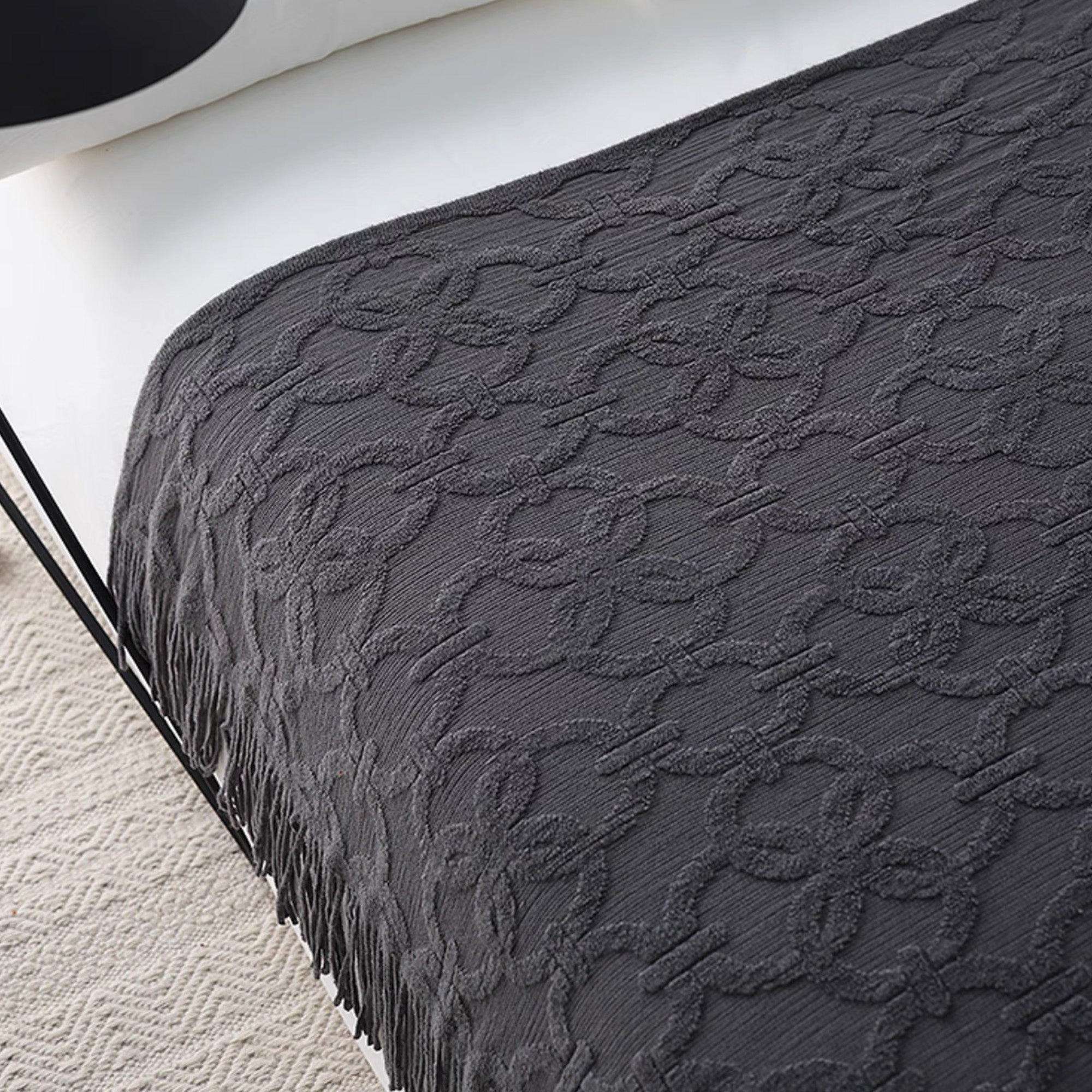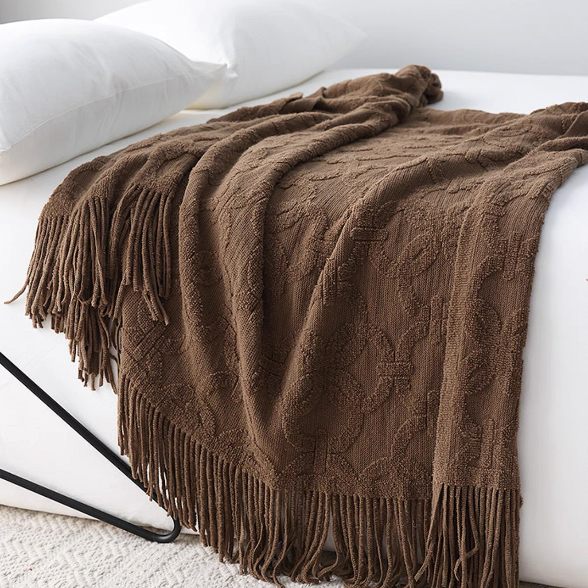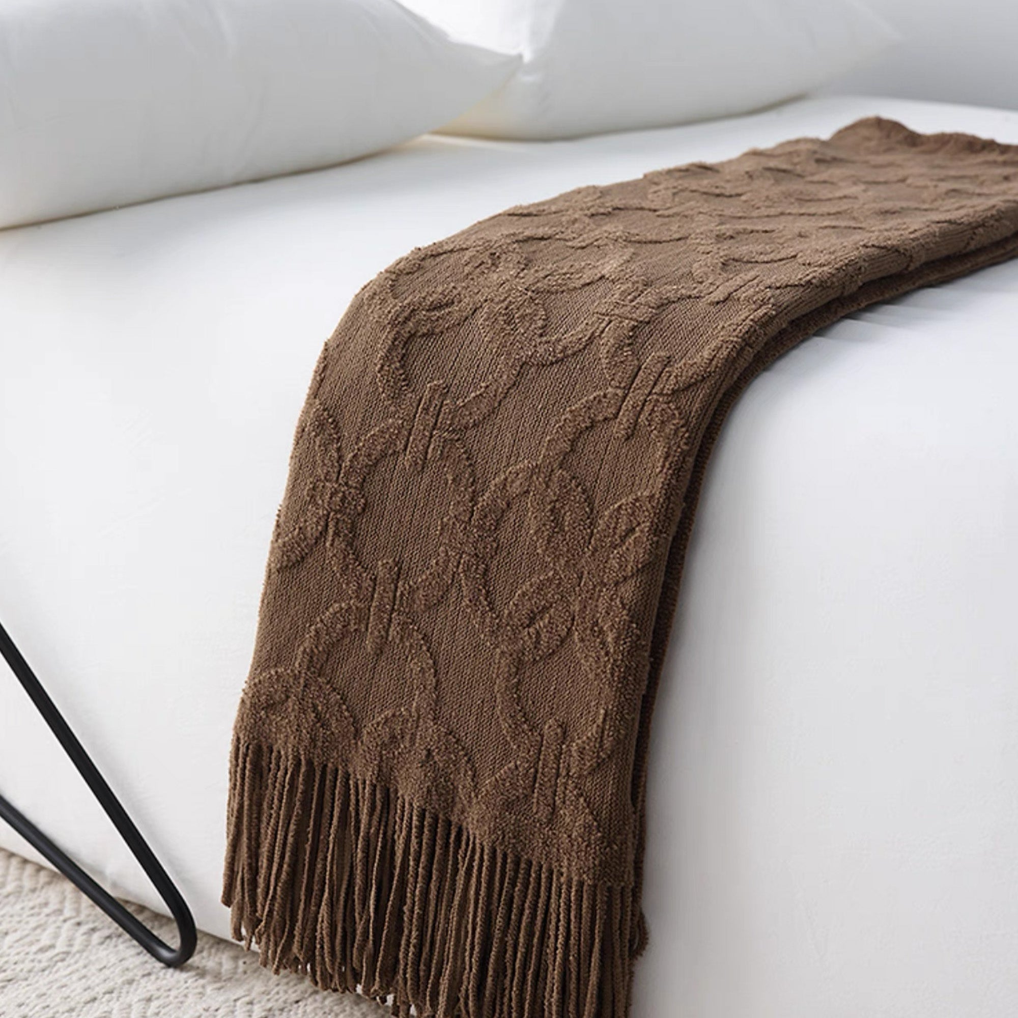Hüllen Sie sich in raffinierten Luxus mit unserer eleganten Fransen-Wohndecke. Diese wunderschön gearbeitete Decke besticht durch ein dezentes, raffiniertes Muster aus ineinandergreifenden Kreisen und verleiht jedem Raum Tiefe und Eleganz. Hergestellt aus hochwertigen, weichen Materialien, spendet sie Wärme und Komfort und ist gleichzeitig ein geschmackvolles Dekorationselement. Die zarten Fransen setzen einen zusätzlichen stilvollen Akzent und machen sie perfekt zum Drapieren über Sofa, Bett oder Lieblingssessel.