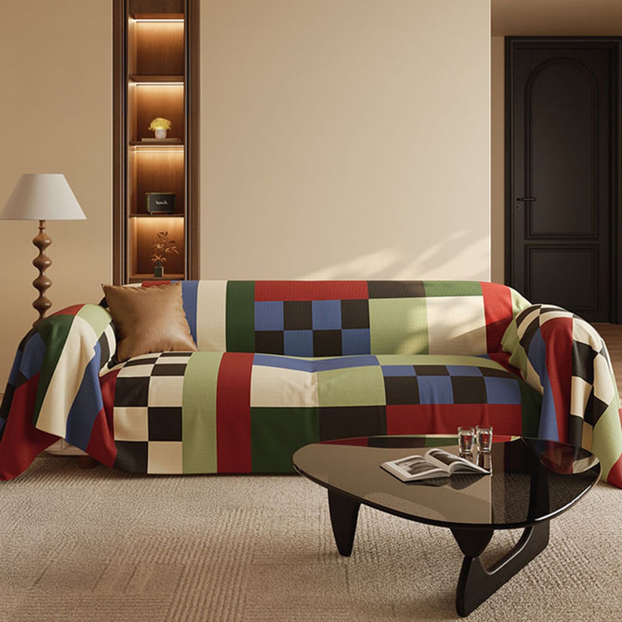Retro-Sofabezug mit auffälligem Blockmuster, atmungsaktiv, weich, pflegeleicht, strapazierfähig, maschinenwaschbar – der perfekte Schutz für Ihr Zuhause.