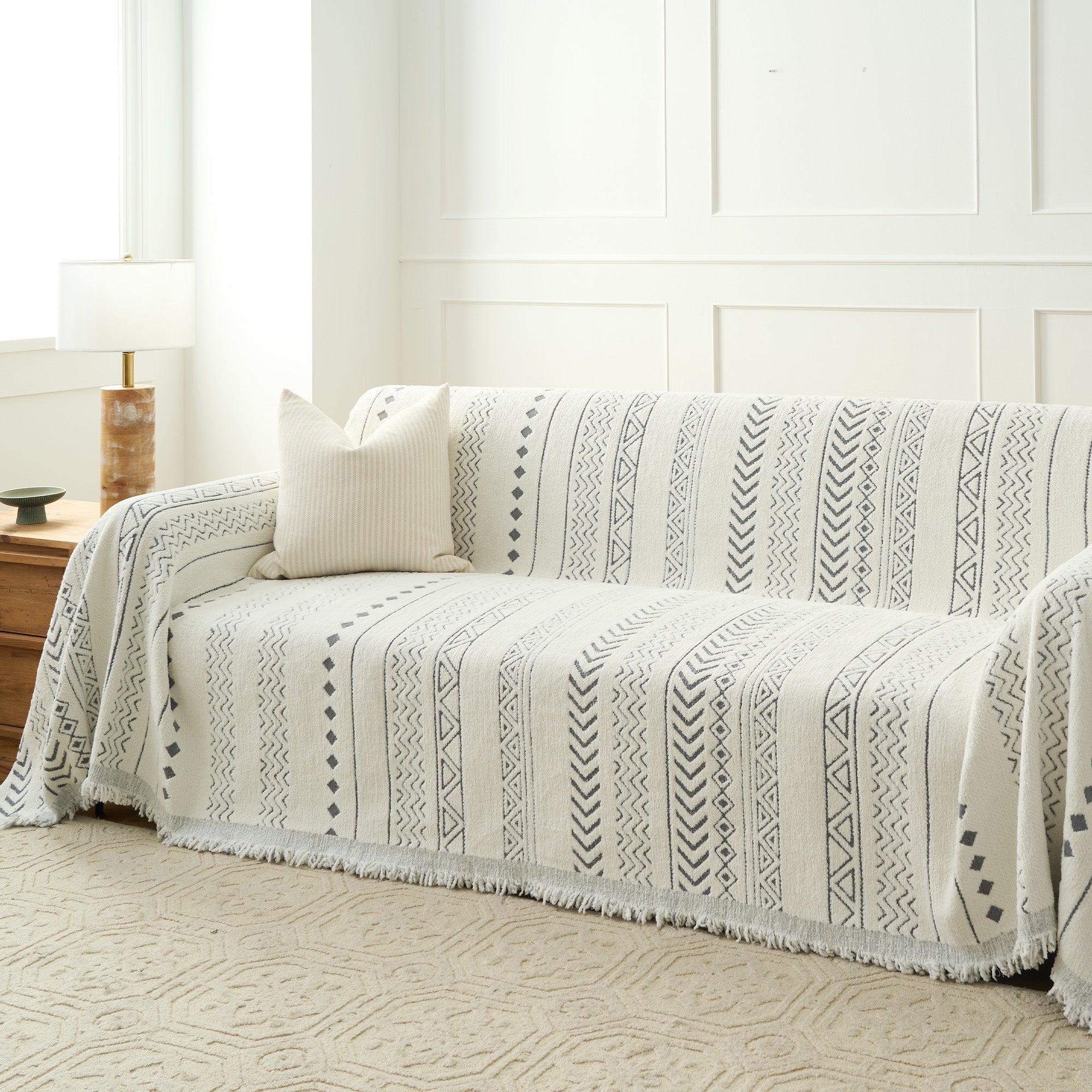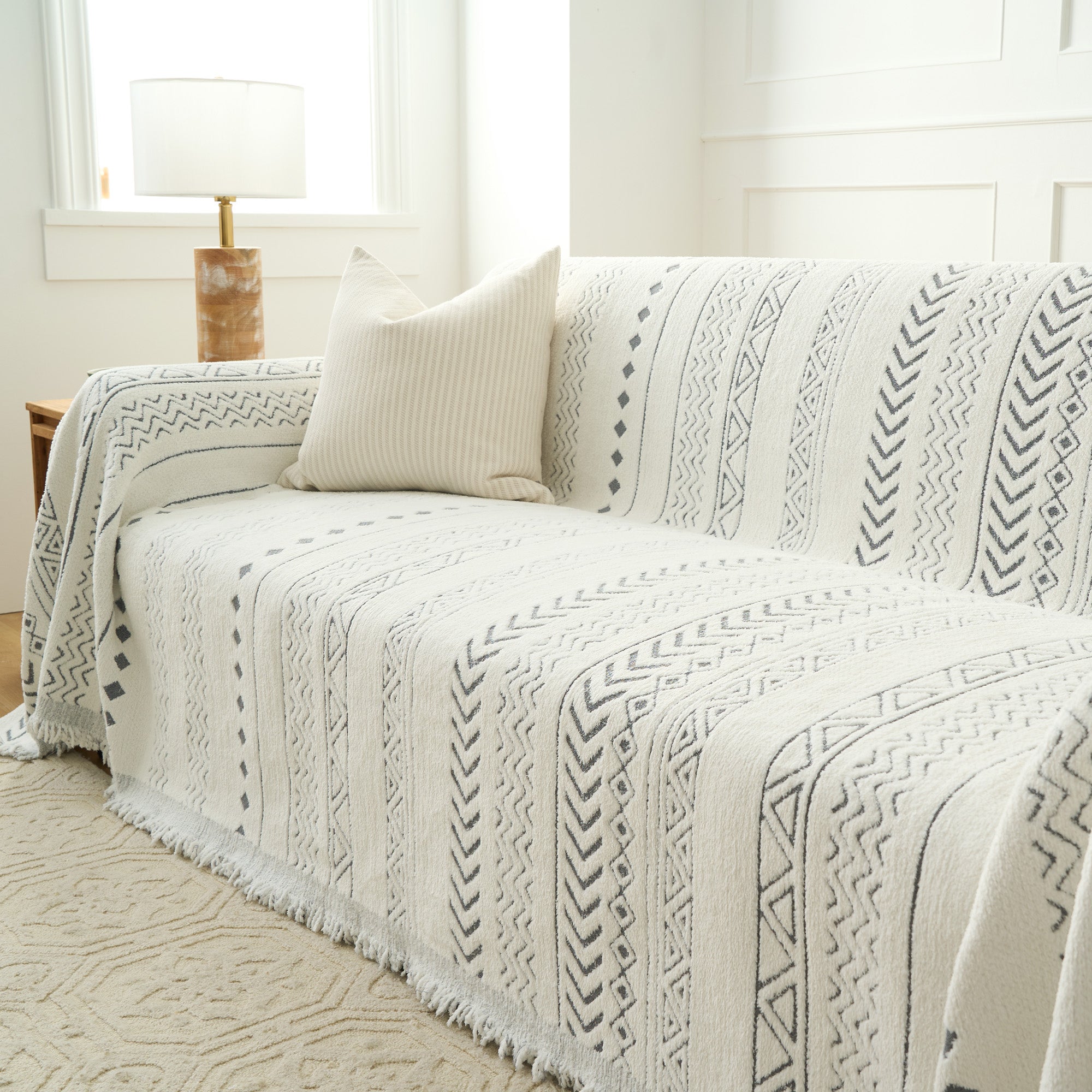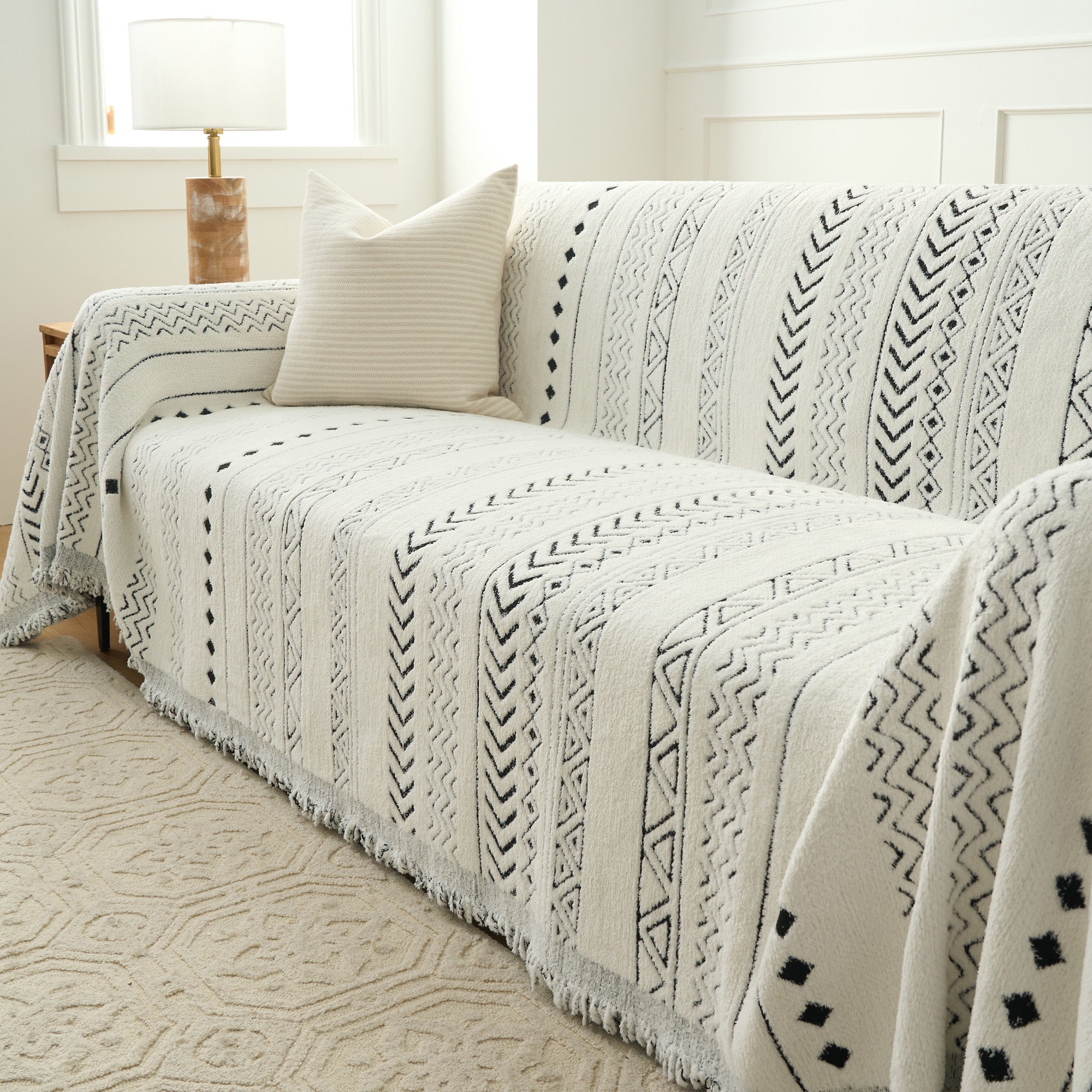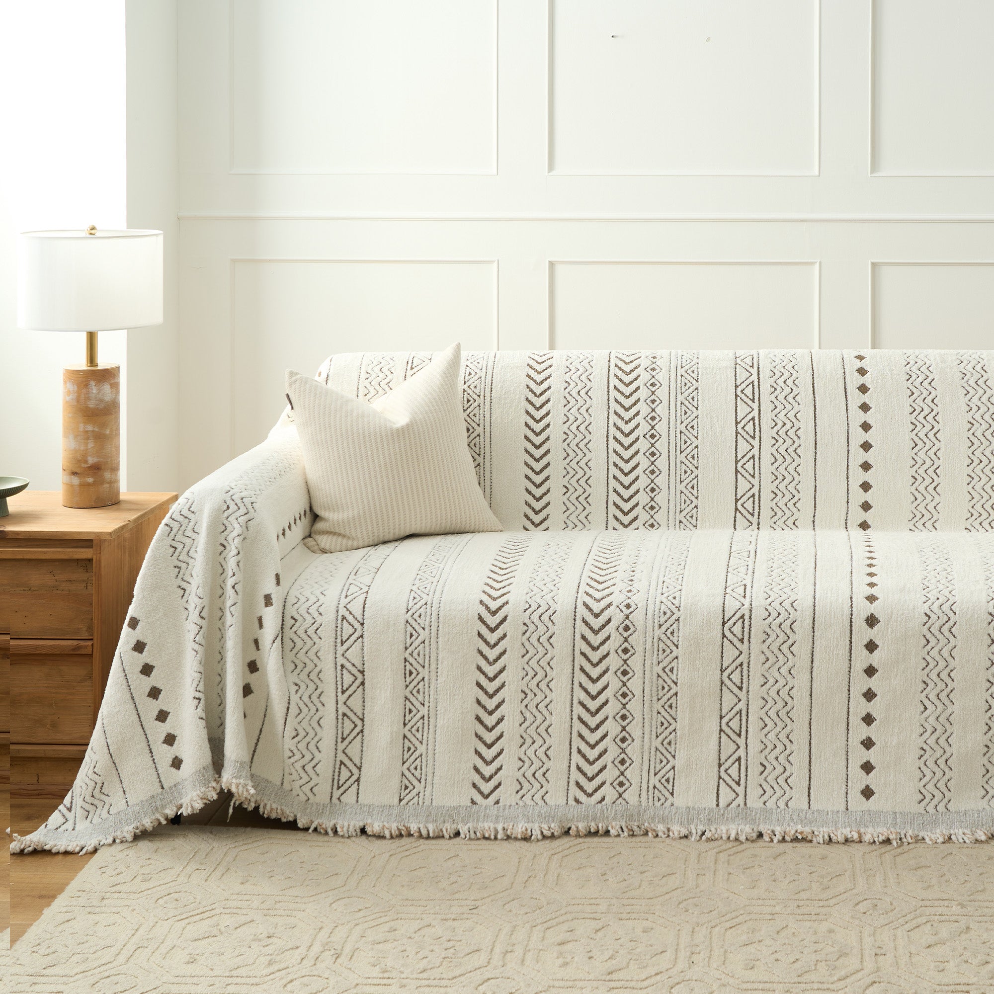 Verwandeln Sie Ihr Wohnzimmer mit diesem von Stammesmustern inspirierten, geometrischen Sofabezug. Er vereint ausdrucksstarke Muster mit dezenter Eleganz und schützt Ihre Möbel, während er Ihrem Zuhause ein kulturelles Flair verleiht.