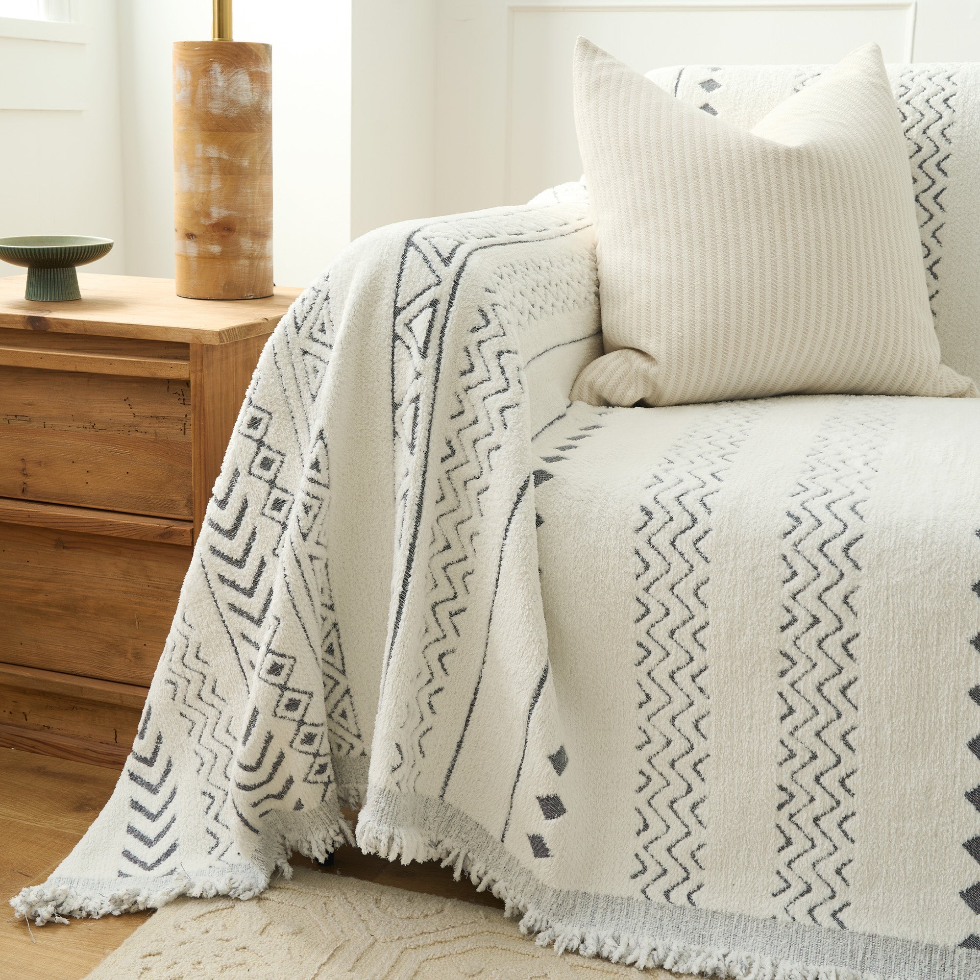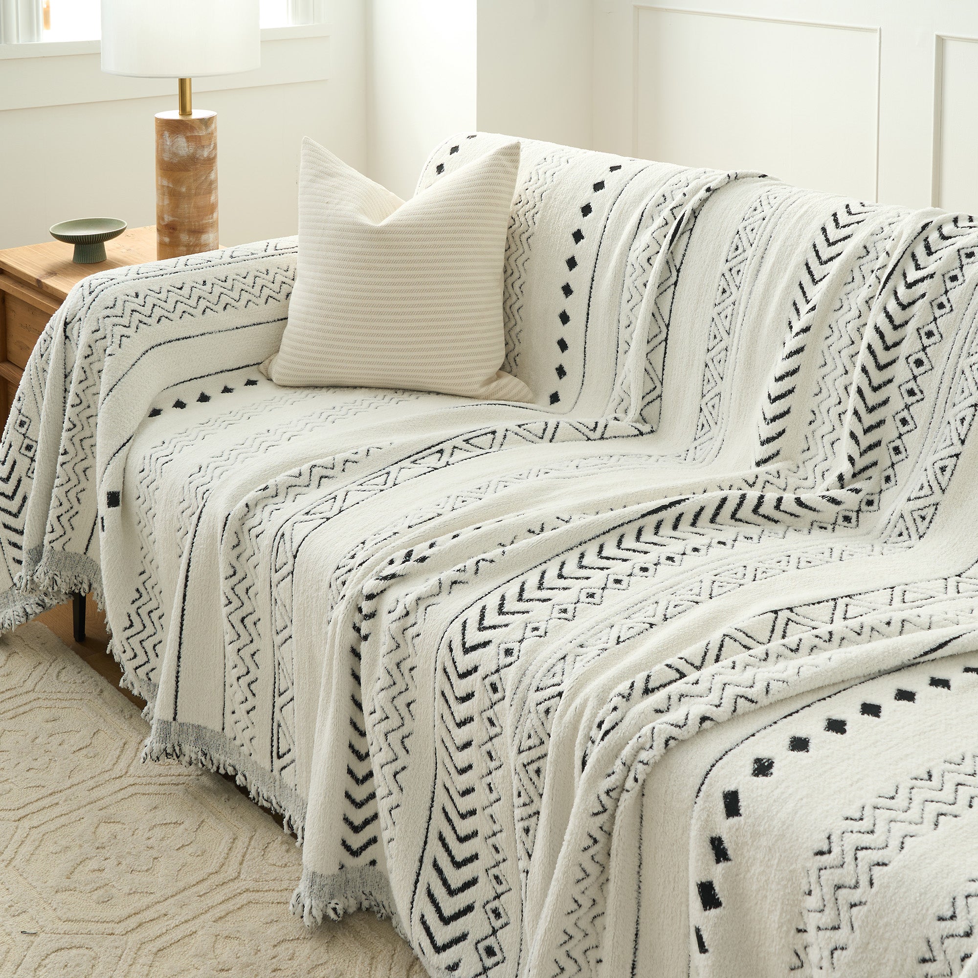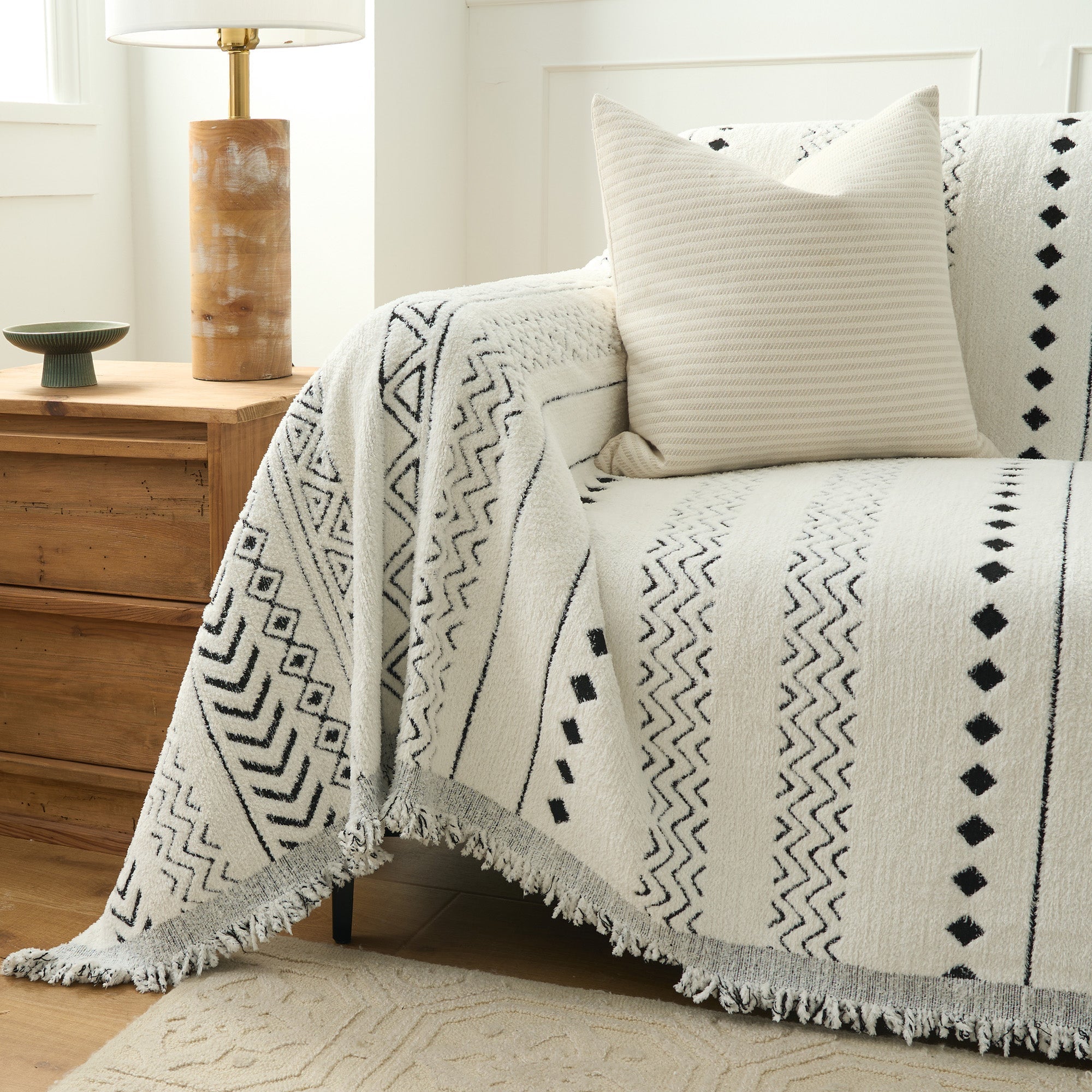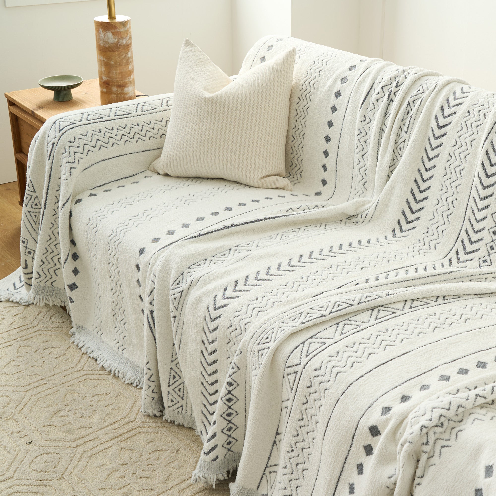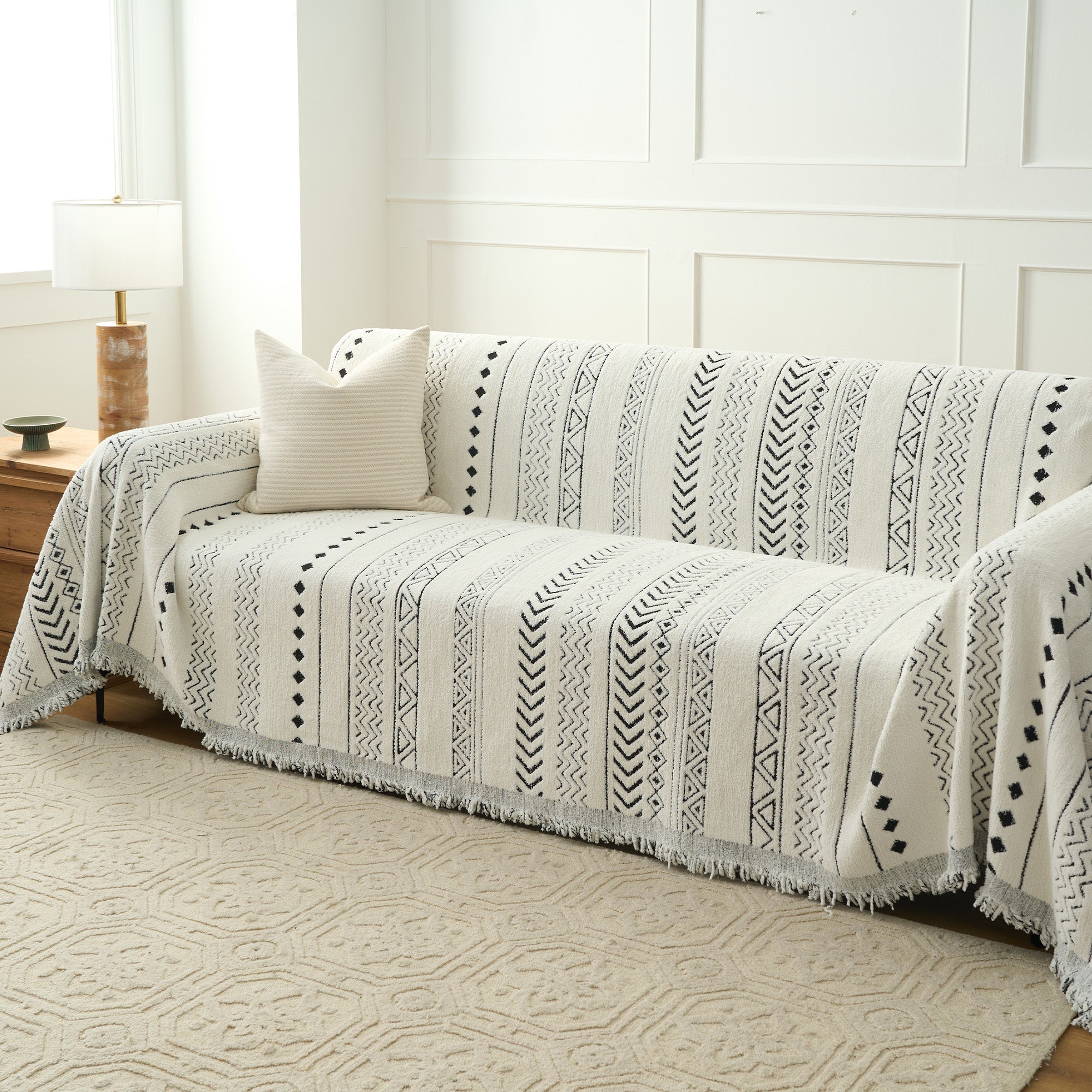 Verwandeln Sie Ihr Wohnzimmer mit diesem von Stammesmustern inspirierten, geometrischen Sofabezug. Er vereint ausdrucksstarke Muster mit dezenter Eleganz und schützt Ihre Möbel, während er Ihrem Zuhause ein kulturelles Flair verleiht.