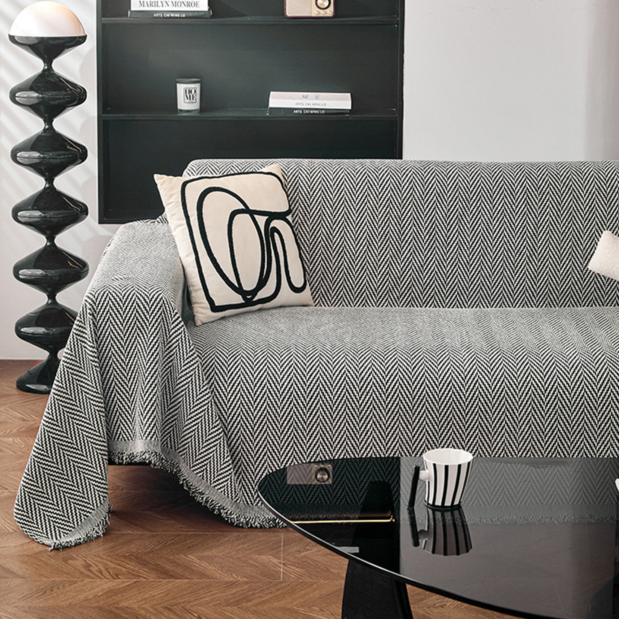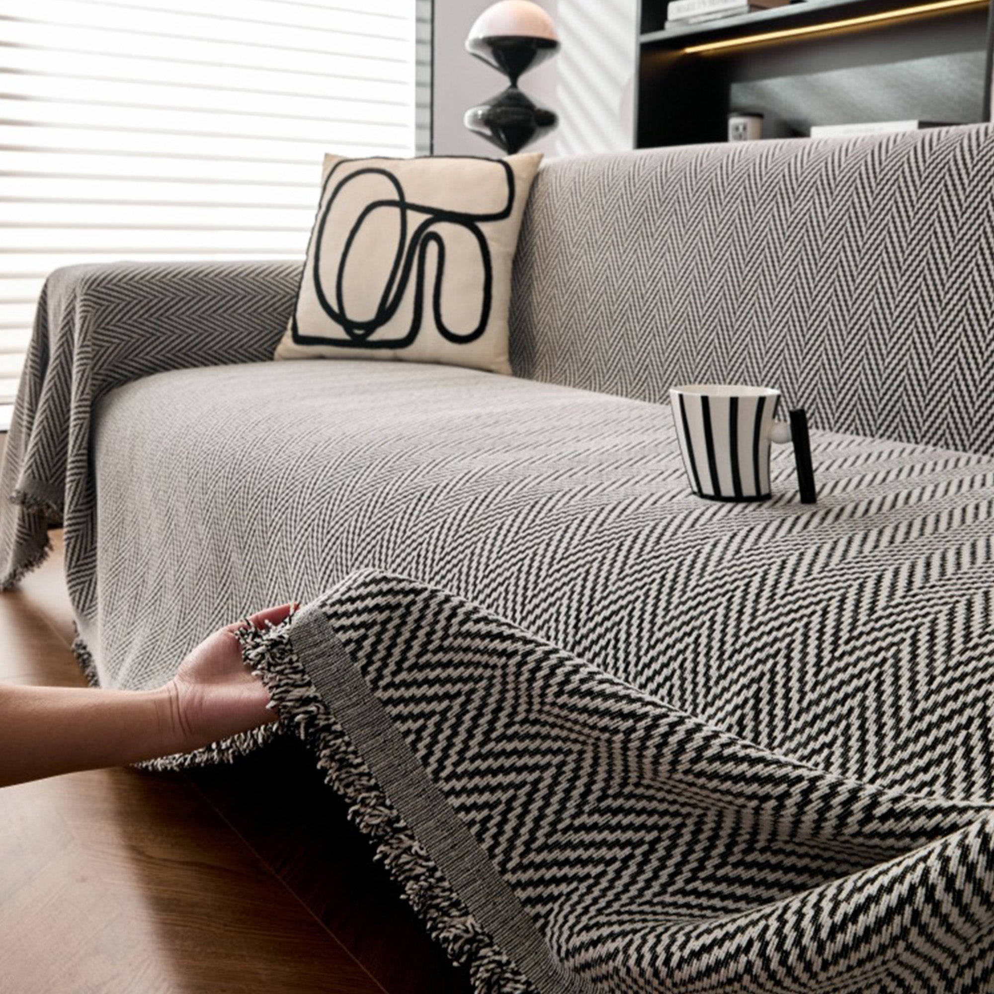 Waschbarer Sofabezug aus Chenille mit Fischgrätmuster
