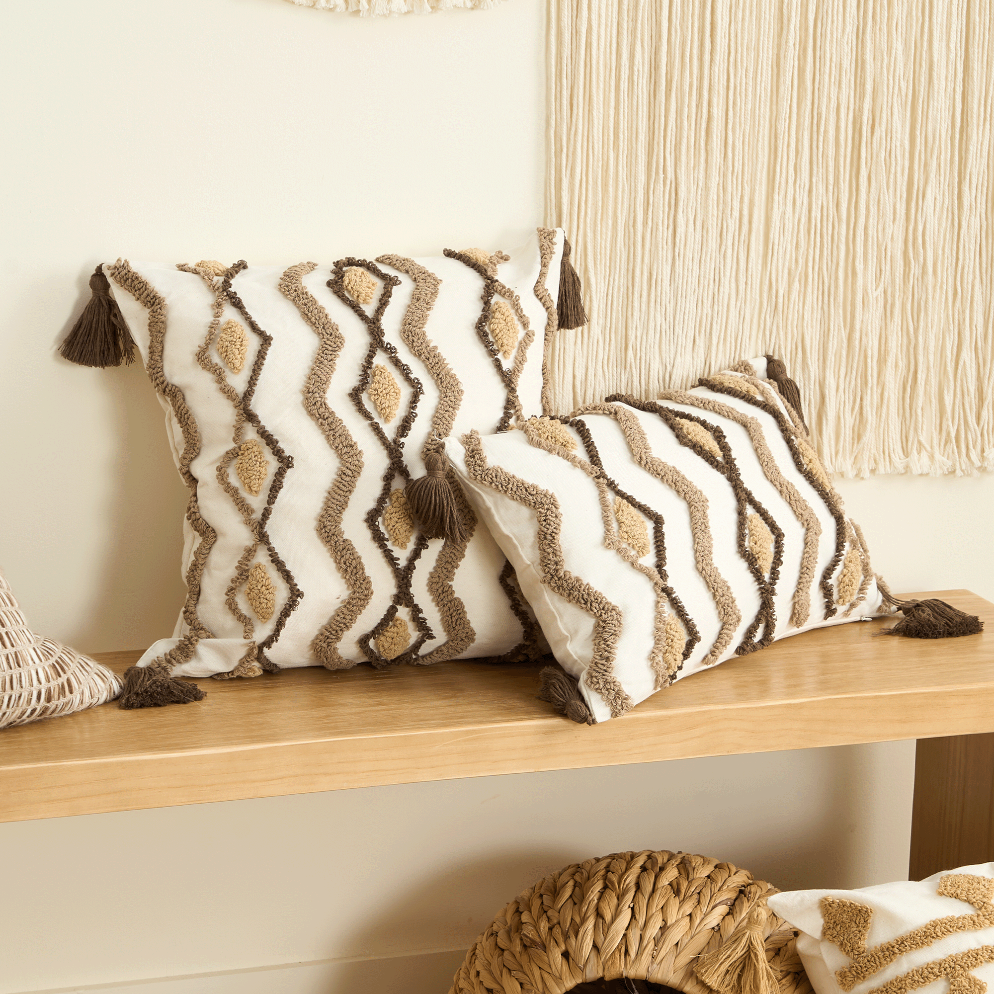 Verwandeln Sie Ihre gemütliche Ecke mit unserem Boho-Quasten-Sofakissenbezug! Dieser flauschige Bezug bietet mehr als nur Stil; er macht Ihr Sofa garantiert zu Ihrem – oder dem Ihres Haustiers – neuen Lieblingsplatz zum Kuscheln. Verleihen Sie Ihrem Wohnraum einen Hauch von Bohème-Charme und genießen Sie unvergleichlichen Komfort. Ob Sie Ihrem Zuhause einen Hauch von Freigeist verleihen oder eine gemütliche Oase schaffen möchten – dieser Kissenbezug ist die perfekte Ergänzung. Freuen Sie sich auf endlose Kuschelstunden!