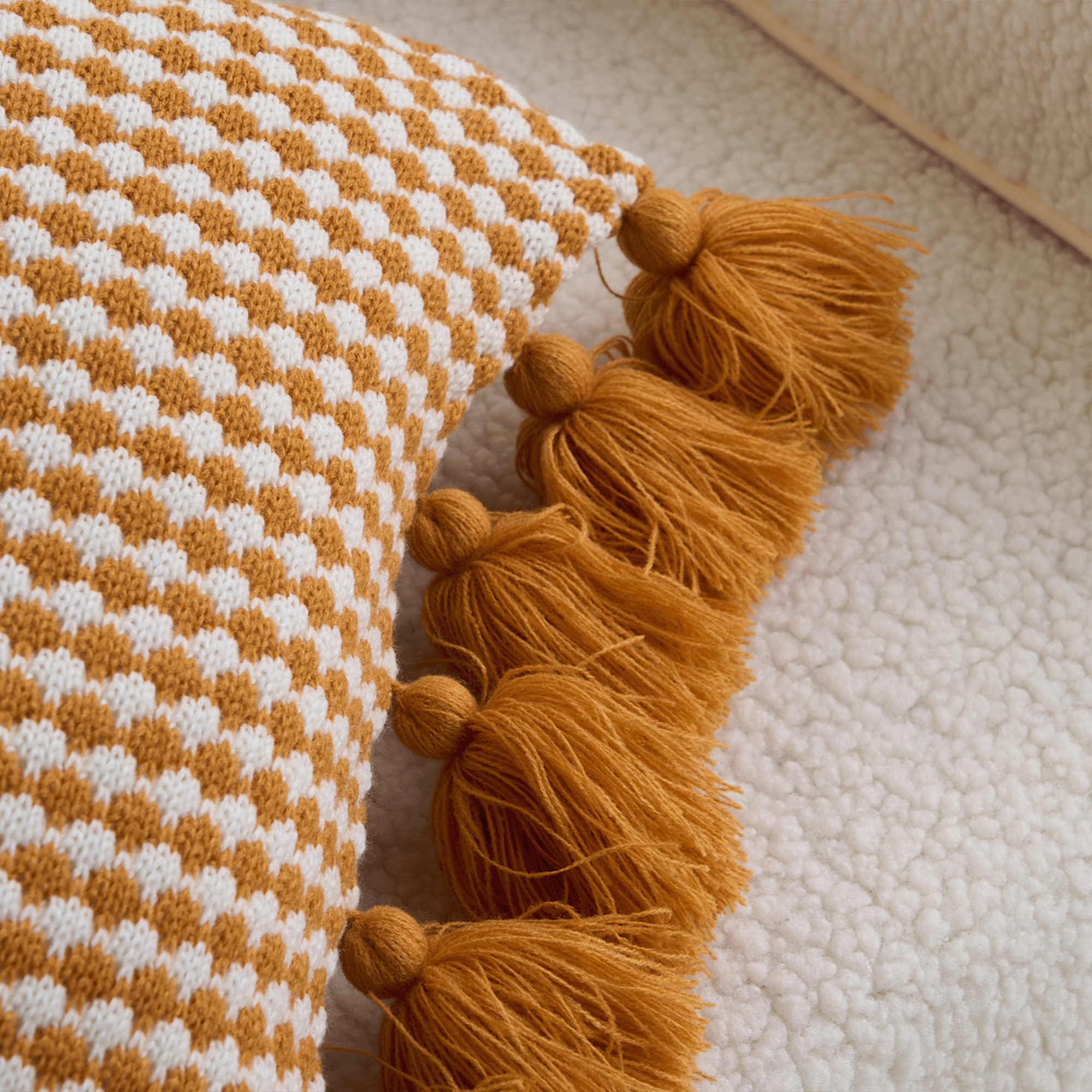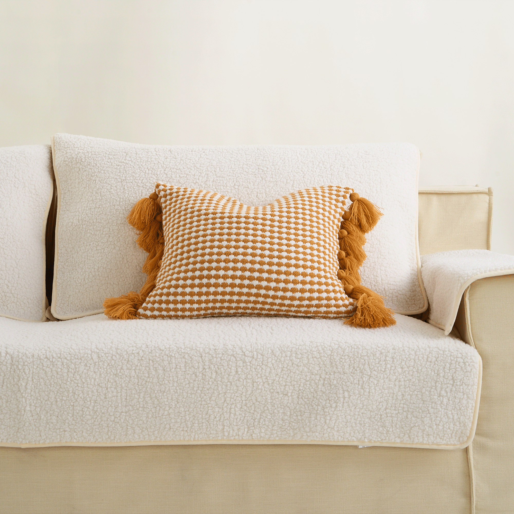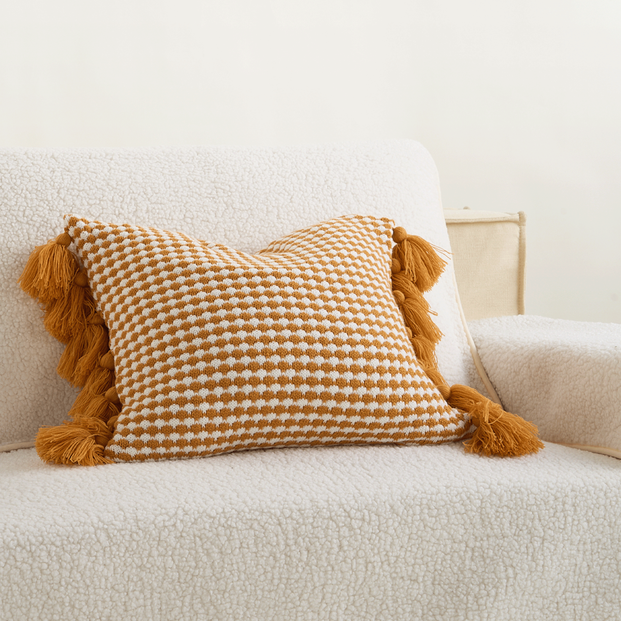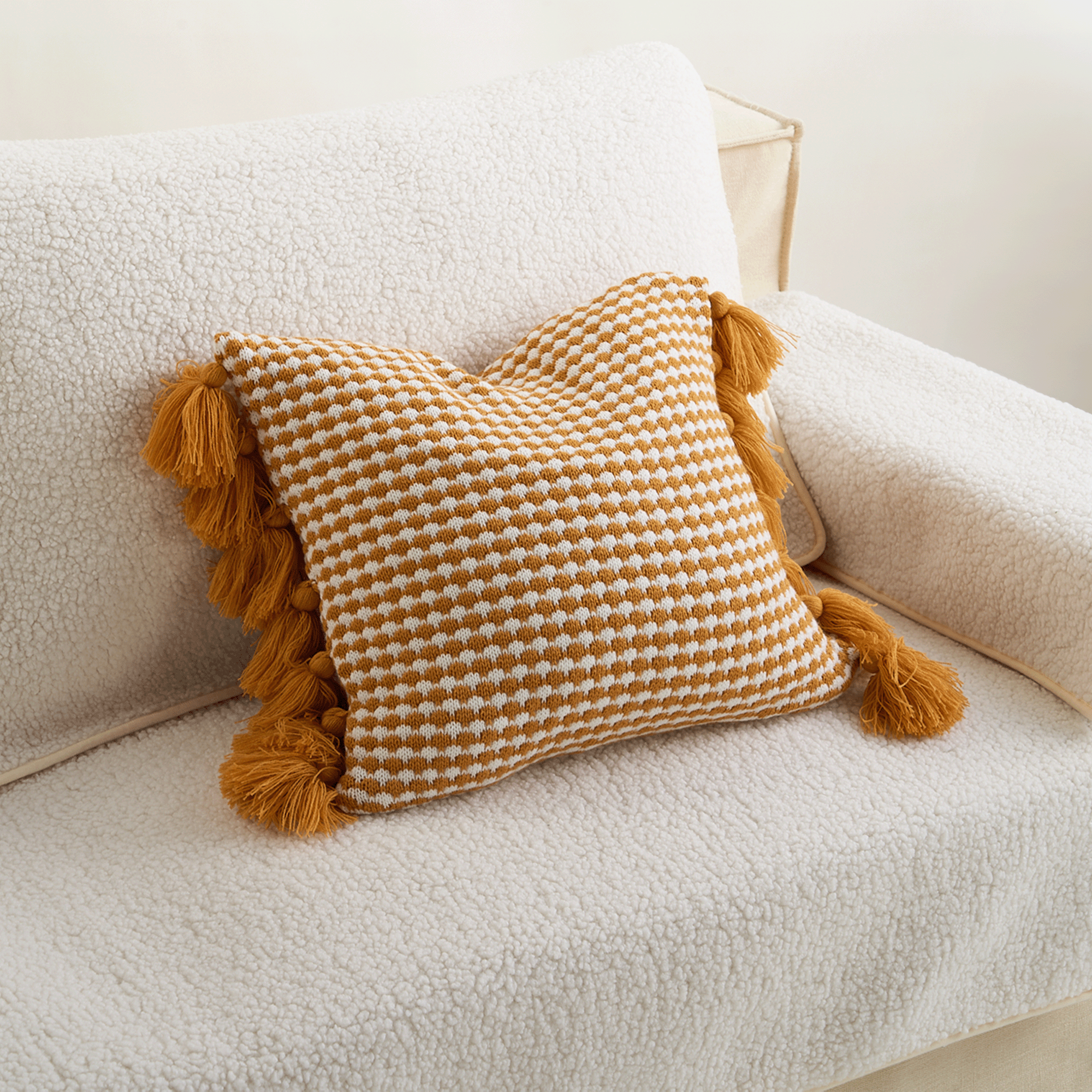 Wir präsentieren das Sofakissen „Tassel Charm“ – Ihr Schlüssel zu mehr Schlafkomfort und stilvollem Design! Hergestellt aus hochwertigem Polyestergewebe und gefüllt mit erstklassiger PP-Baumwolle, bietet dieses Kissen weichen, anschmiegsamen Komfort, der Ihnen garantiert ein Lächeln ins Gesicht zaubert. Dank der vielfältigen Designs finden Sie garantiert das passende Kissen für Ihren persönlichen Geschmack und verleihen jedem Raum einen Hauch von Eleganz. Das trendige Quasten-Design sorgt zudem für einen verspielten Charme-Akzent.