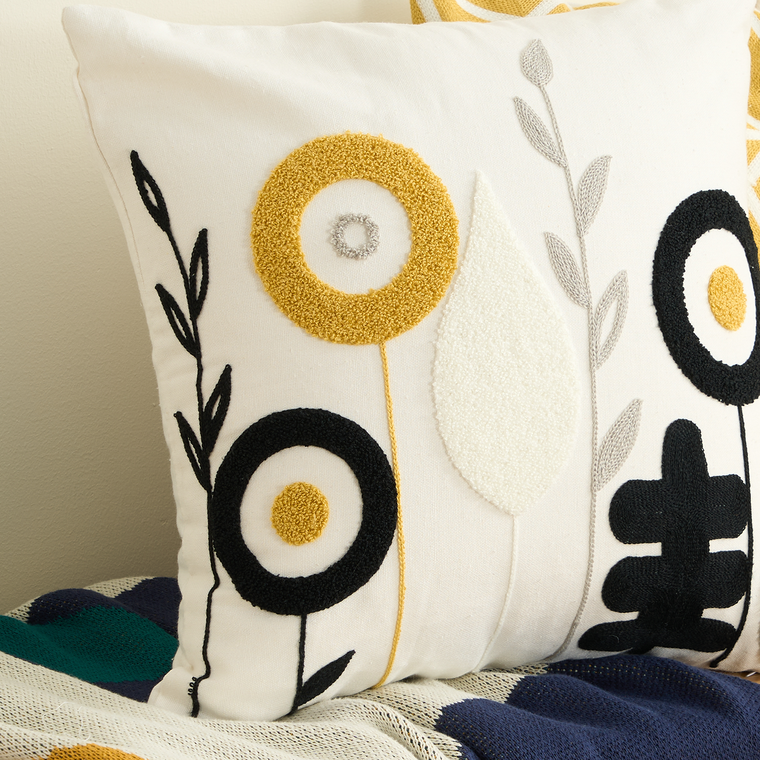Verleihen Sie Ihrem Wohnzimmer mit unserem Kissenbezug „Tufted Blossoms“ ein ganz neues Wohlfühlambiente! Dieser gemusterte Kissenbezug ist nicht nur ein Blickfang, sondern auch der perfekte Kuschelpartner für gemütliche Filmabende und entspannte Sonntage. Gefertigt aus luxuriös weichem und strapazierfähigem Material, bringt er garantiert einen Hauch von lebendigem Stil in jeden Raum. Machen Sie es sich stilvoll gemütlich!