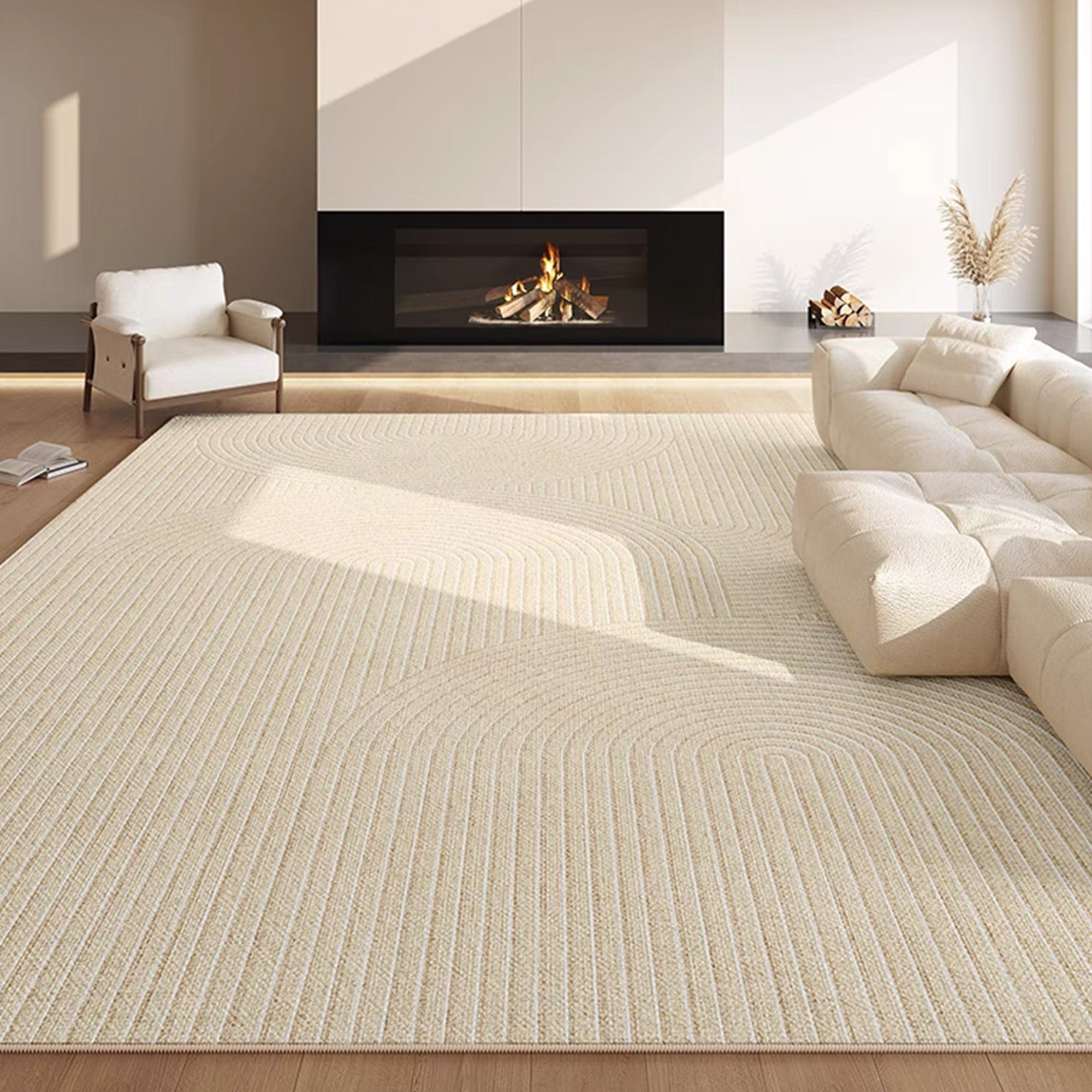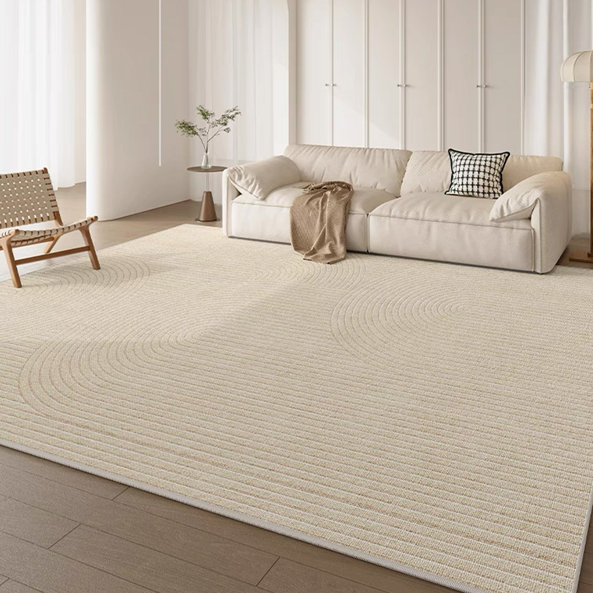 Easy-care, quiet, wavy, stain-resistant, and pet-friendly minimalist living room rug
