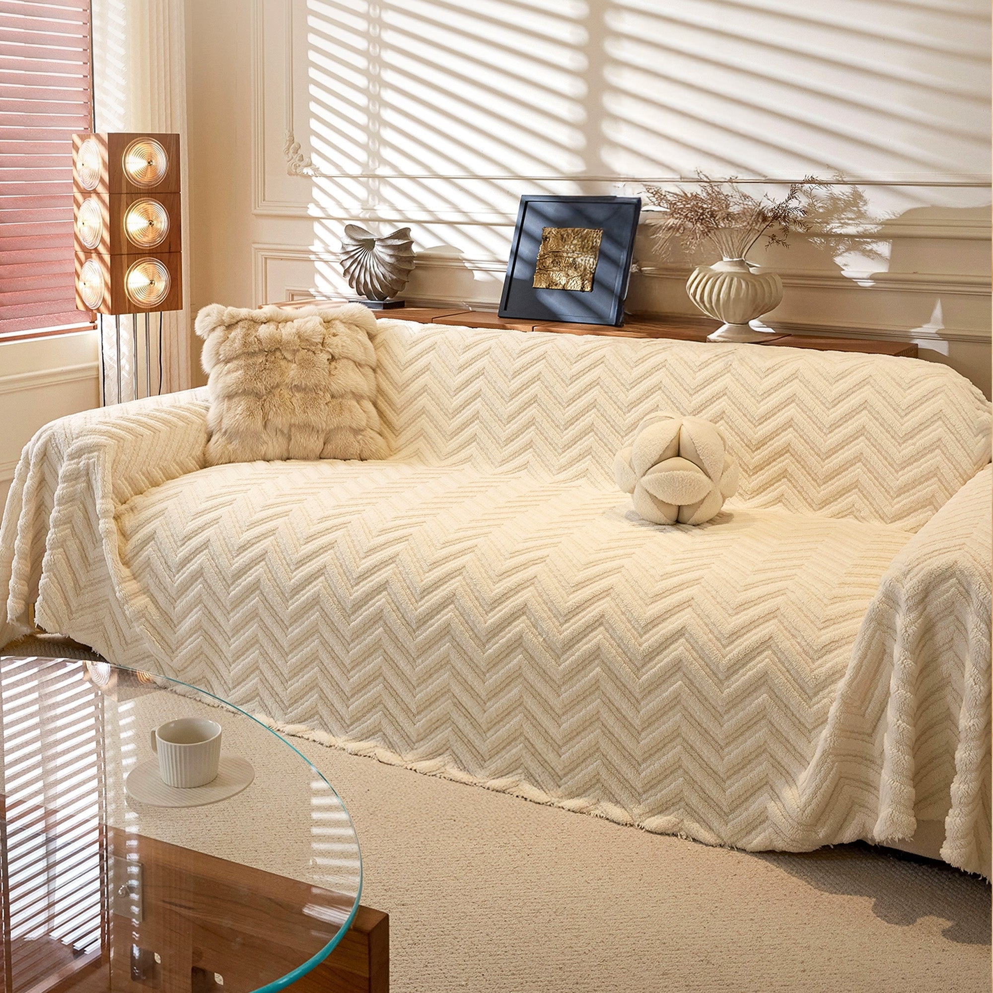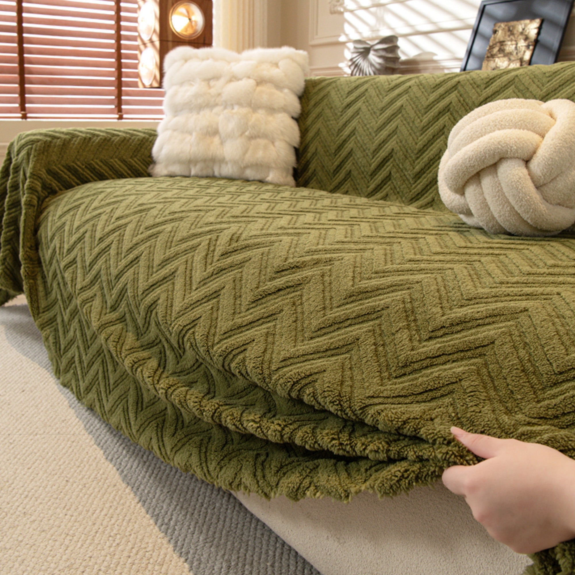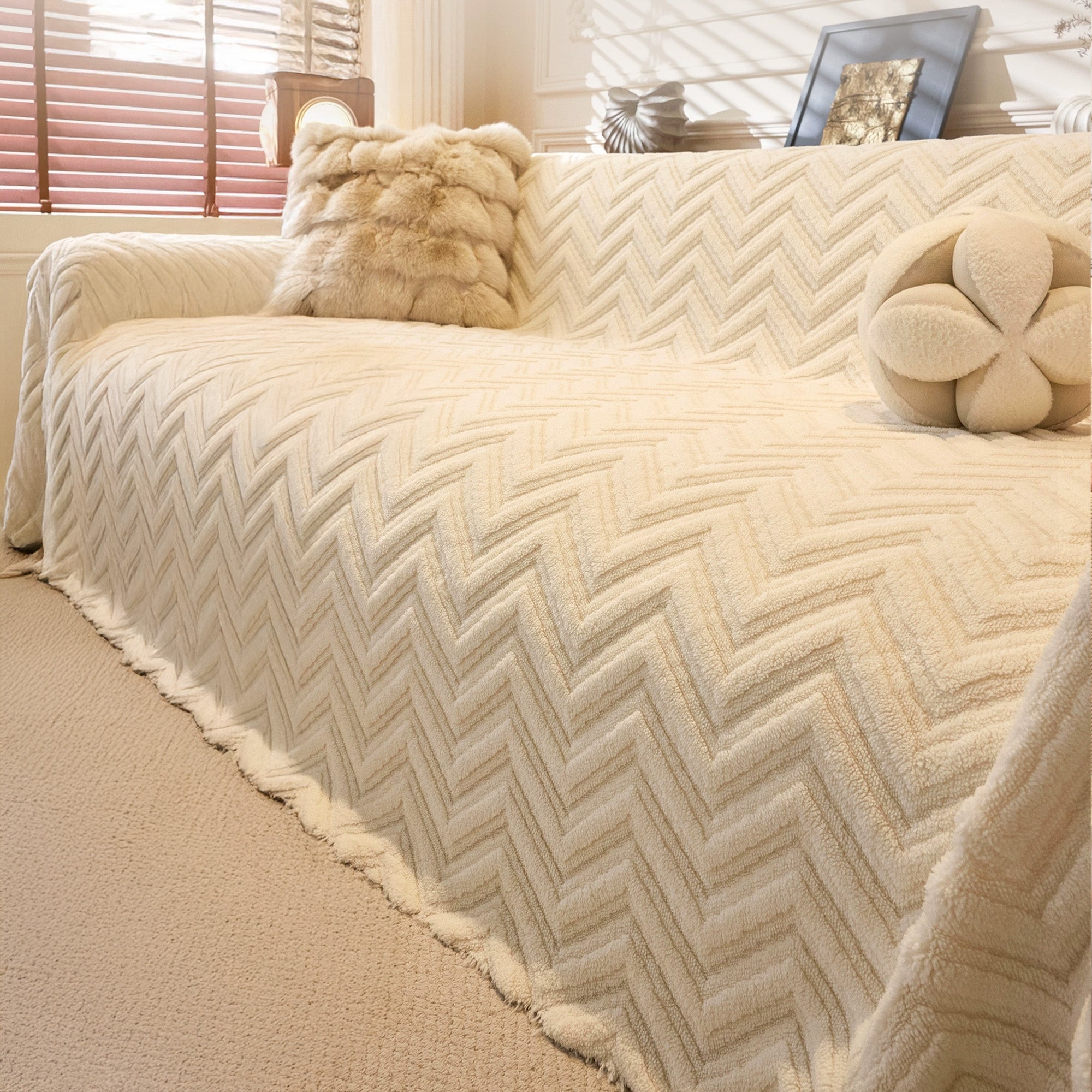 Avvolgi il tuo divano in un lussuoso e accogliente rivestimento antiscivolo con la nostra fodera per divano a spina di pesce. Il morbido tessuto a pelo lungo e la trama a spina di pesce scolpita aggiungono calore e profondità, proteggendo la seduta dall'usura quotidiana, dal pelo degli animali domestici e dai graffi. Resistente, adatta agli animali domestici e facile da abbinare, rinfresca qualsiasi ambiente in pochi secondi.