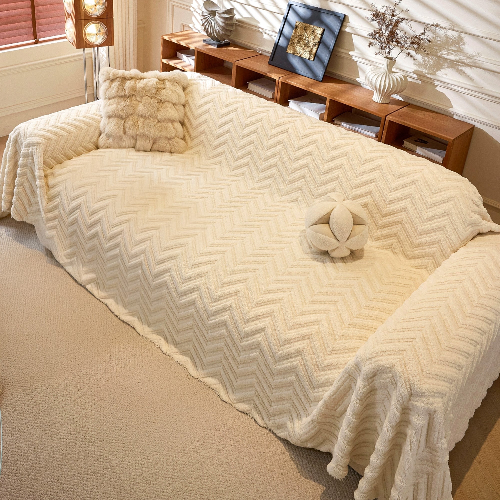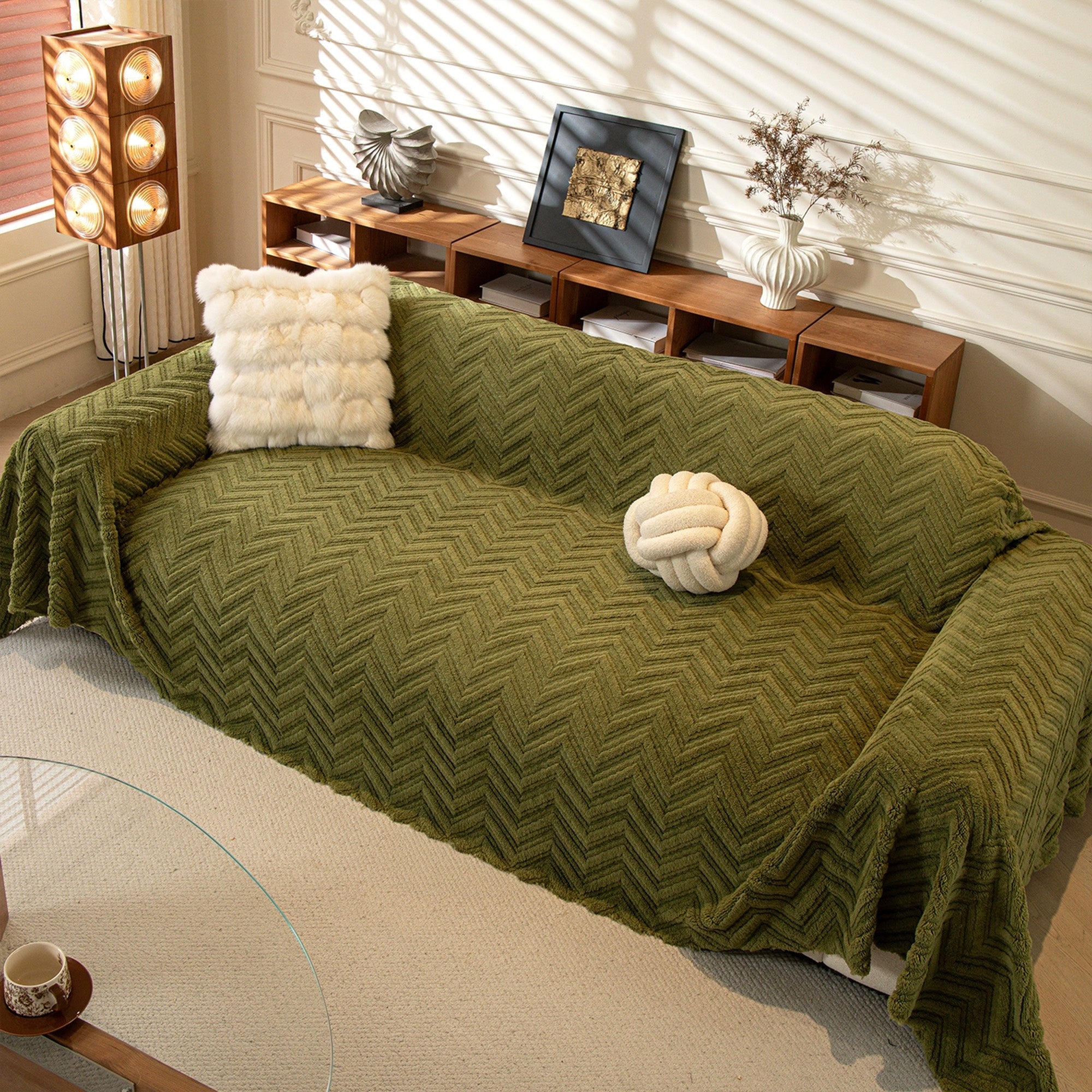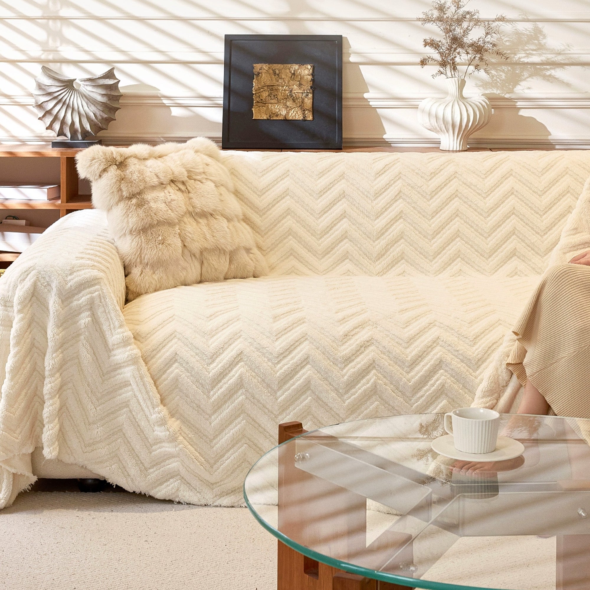 Avvolgi il tuo divano in un lussuoso e accogliente rivestimento antiscivolo con la nostra fodera per divano a spina di pesce. Il morbido tessuto a pelo lungo e la trama a spina di pesce scolpita aggiungono calore e profondità, proteggendo la seduta dall'usura quotidiana, dal pelo degli animali domestici e dai graffi. Resistente, adatta agli animali domestici e facile da abbinare, rinfresca qualsiasi ambiente in pochi secondi.