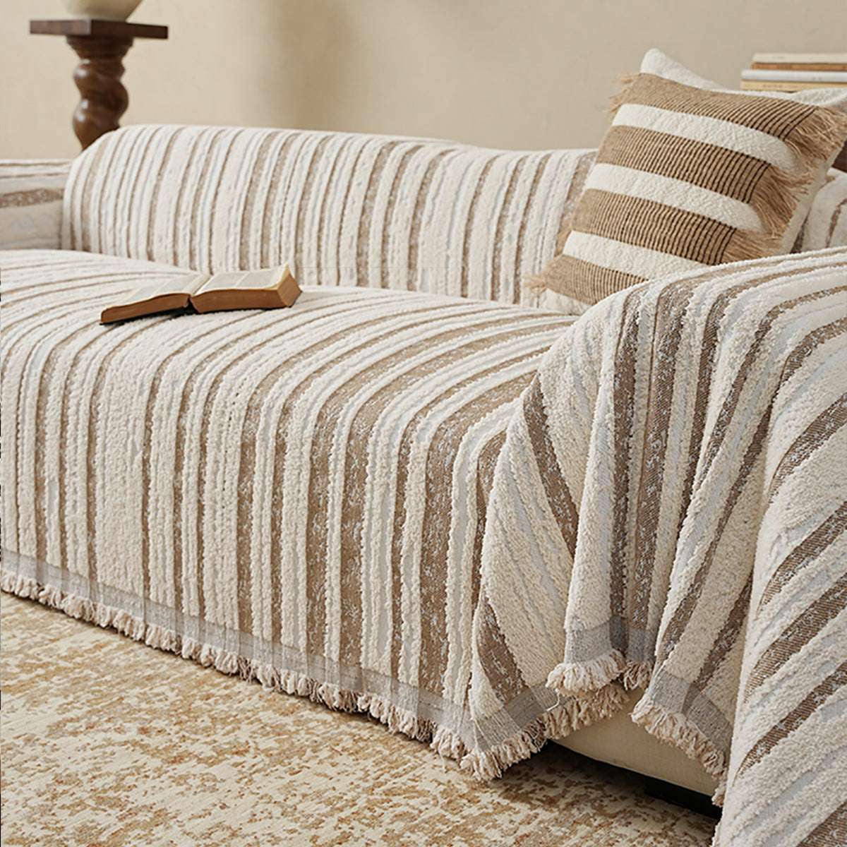 Dona una texture raffinata e uno stile semplice al tuo spazio abitativo con la nostra fodera per divano in ciniglia a righe testurizzate e antigraffio. Realizzata in morbida ciniglia ad alta densità, questa fodera presenta strisce tridimensionali con sottili frange, che aggiungono profondità e proteggono il divano dall'usura quotidiana, dai peli degli animali domestici e dai graffi. Morbida ma resistente e adatta agli animali domestici, impreziosisce il tuo arredamento e mantiene le sedute come nuove.
